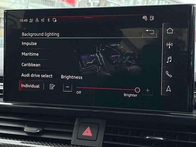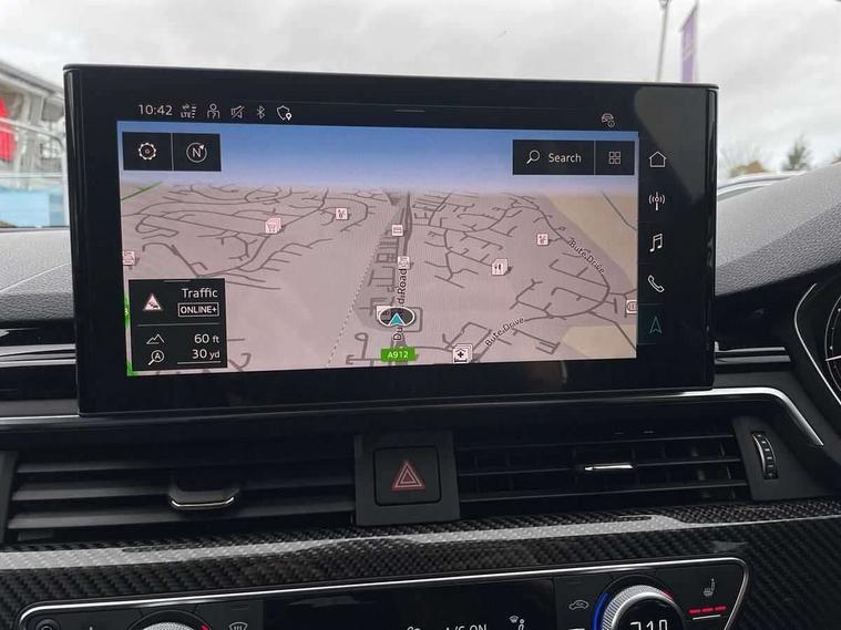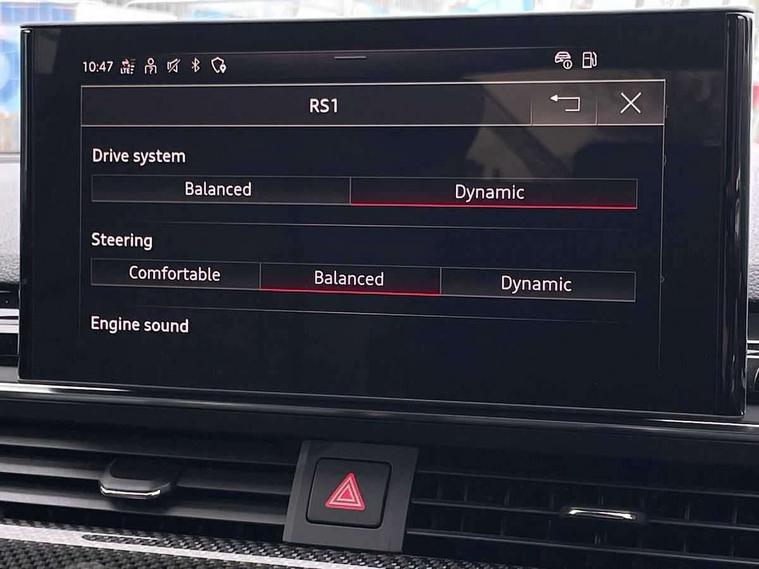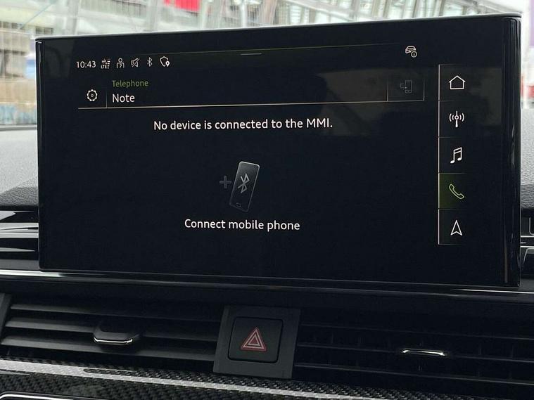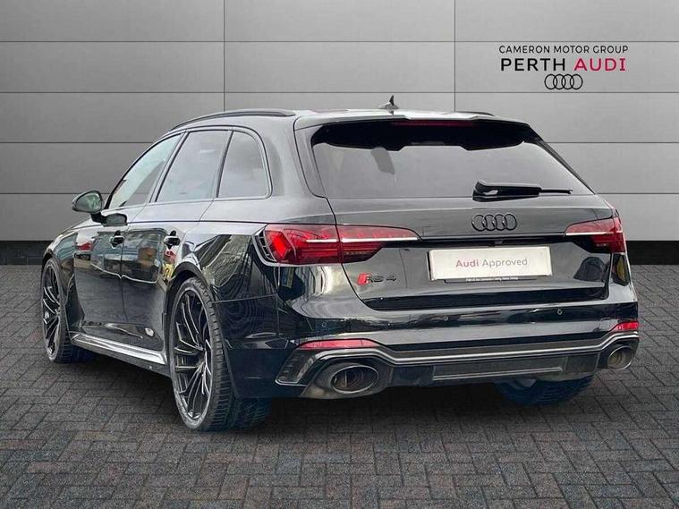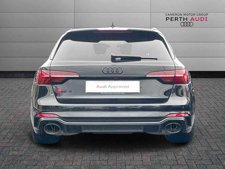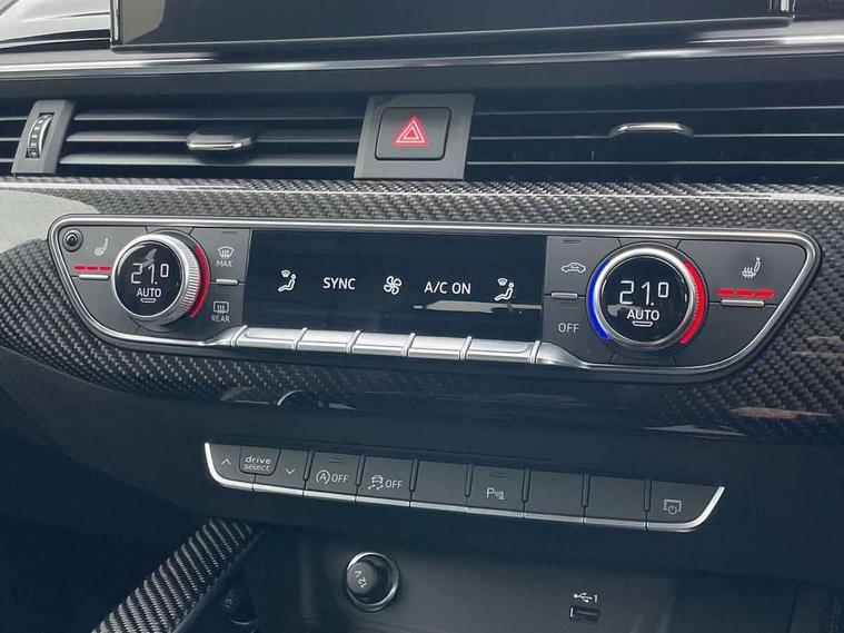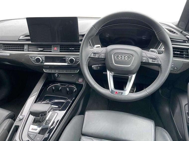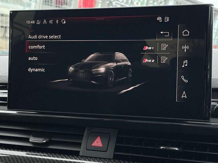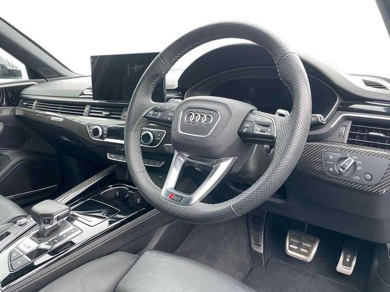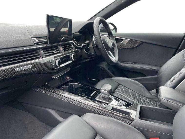7" Colour driver information system, Audi connect safety and service (e-call), Audi drive select, Audi side assist, Audi smartphone interface, Audi virtual cockpit with RS specific display, Automatic start-stop system with coasting functionality and efficiency programme, Bluetooth interface, Camera based traffic sign recognition, Electromechanical power steering, Email, calendar and text messages displayed via MMI, Lane departure warning, MMI Navigation plus with MMI touch includes 10.1" high resolution colour MMI display, 3D map, Power opening/closing tailgate, Service interval indicator, Voice control system, 58 Litre fuel tank, Quattro sports differential, 2 USB charging ports, Audi sound system, DAB digital radio module, 3rd brake light, Acoustic windscreen, Audi Beam uses LEDs to project the RS logo onto ground as you exit your RS4, Audi matrix LED headlights with LED rear lights + dynamic front and rear indicators, Audi rings and lettering glossy black, Auto dimming rear view mirror, Automatic headlights + automatic windscreen wipers, Black roof rails, Blue tinted glass, Body colour door handles, Electric front windows, Electric rear windows, Electrically folding auto dimming/adjustable/heated door mirrors with memory function, LED side indicators and kerb view function for passenger side, Flared front and rear wheel arches, Front bumper with enlarged air inlets, Headlight range control, High beam assistant, High gloss black door mirror housing, High gloss black triangular aperture at rear door, Honeycomb design grille with quattro logo, Lateral air inlets next to front headlights, LED daytime running lights, LED indicators in door mirrors, Privacy glass with rear acoustic glazing, Rain and light sensors, Rear side wing doors, Rear wiper, Roof spoiler, RS 4 badges on grille and rear, RS4 dual branch chrome tailpipes with left and right oval pipes, 3 seat bench in 2nd row, 3 spoke multifunction plus leather steering wheel with heating and RS badging, 40/20/40 split folding rear seats with rear centre armrest, Black cloth headlining, Deluxe 3 zone electronic climate control, Door armrests and knee pad, Electric load area cover, Electrically adjustable front seats, Fine nappa leather with contrast honey comb stitching + super sports seats with pneumatic massage function, Front centre armrest, Front headrests, Front/rear floor mats, Heated front seats, Height and reach adjustable steering wheel with full size airbag, Illuminated door sill trims with RS4 logo, ISOFIX child seat mounting and top tether, Luggage compartment carpet, Perforated leather gear lever knob with contrast stitching, Rear headrests, Retractable load area cover, Single front passenger seat, Stainless steel pedals, Sunvisors with vanity mirrors, Carbon black styling pack - RS4, LED Interior light pack - RS4, Non Smokers pack, 3 point seatbelts on all rear seats, Adaptive driver and front passenger airbags, Attention and drowsiness assist, Electromechanical parking brake, Electronic stabilisation control including ABS, ASR and EDL, Enhanced braking system, Front head airbags, Front seatbelt pretensioners + load limiters, Front side airbags, Hill hold assist, Manual child lock in rear doors, Multi-Collision braking, Pop-up bonnet for pedestrian protection, Pre sense city, Rear side airbags, Seatbelt monitoring, Traction control, Tyre pressure warning, Variable restraint system, Warning triangle and first aid kit, Anti theft alarm, Anti-theft wheel bolts, Immobiliser, Keyless Go, Remote central locking, Remote control key with RS emblem, Carbon twill inlays, 20" 5 segment spoke evo design glossy black sport alloy wheels, Tool kit, Tyre repair kit,