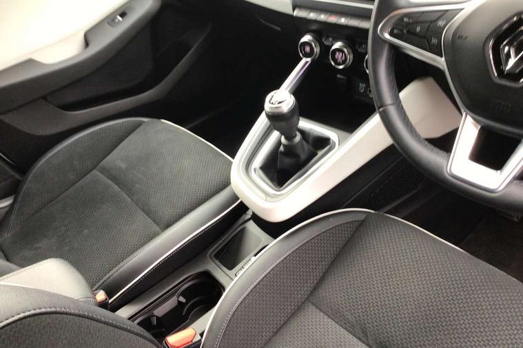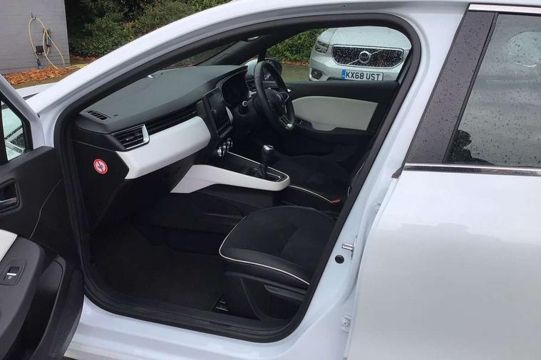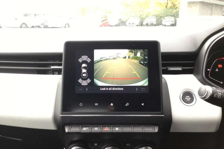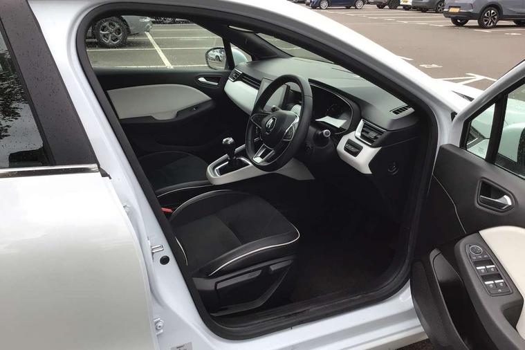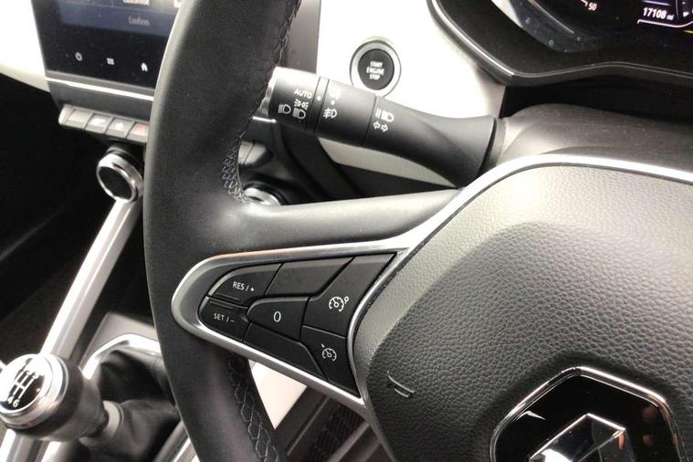 7" TFT colour instrumental display, Cruise control + speed limiter, E-call, Easy link navigation with 7" touchscreen+4x20W amplifier+FM DAB double tuner, sound auditorium, 2xUSB/1xjack/bluetooth, smartphone integration plus, Eco mode driving function, Gear change indicator, Lane departure warning system, Lane keep assist, Over speed prevention, Rear parking sensors, Traffic sign recognition, Trip computer, Variable assistance electric PAS, Auto dimming rear view mirror, Auto light control and rain sensing wiper, Automatic headlights, Body colour door handles, Body colour door mirrors, Body coloured bumpers, Body coloured rear spoiler, Chrome exhaust tailpipe, Chrome front grille, Chrome insert on lower side doors with Clio embossing, Drivers one touch window with anti-pinch feature, Electric adjustable/heated/folding door mirrors, Electric front windows, Electric rear windows, Exterior rear hidden door handles, Full LED front and rear headlamps integrating daytime running lights at the front and rear, LED front fog lights, LED Roof light, Rear fog lights, Rear side wing doors, Rear wiper, Tinted rear windows, Variable speed on front windscreen wipers, 12V Accessory socket, 3 rear height adjustable headrests, 3 seat bench in 2nd row, 3D Fabric velvet upholstery, 6.2L front glovebox, 60/40 split rear seats, Air recirculation control, Auto climate control, Black headlining, Dark interior roof lining, Driver's seat height adjustment, Front cupholders, Front door storage bin, Height adjustable front headrests, Height/reach adjust steering wheel, Isofix system on outer rear seats, Leather steering wheel, Multi function steering wheel, Pollen filter, Single front passenger seat, System for Restraint and Protection SRP-front seats, Vision grey interior detail includes light grey on doors, lower part of dash and gear stick, Parking Pack - Clio, Storage pack - Clio, 3 point seatbelts on all rear seats, ABS+EBD+Brake assist, Automatic emergency braking system, Curtain airbags, Distance warning alert, Driver and passenger front and side airbag deactivation, Driver/Front Passenger airbags, ESC - Electronic Stability Control + traction control, Front side airbags(head+thorax), Height adjustable driver's seatbelt, Hill start assist, Seatbelt warning, Tyre pressure warning, Central door locking, Deadlocking system, Hands free key card with push button, start and stop function, Locking fuel filler cap, RAID (Renault Anti-Intruder Device) with automatic door locking, Rear side wing door and window child locking function (front driver door control panel), Remote central locking with thatcham approved immobiliser, Grey dashboard trim, 17" Viva stella diamond cut grey alloy wheels,