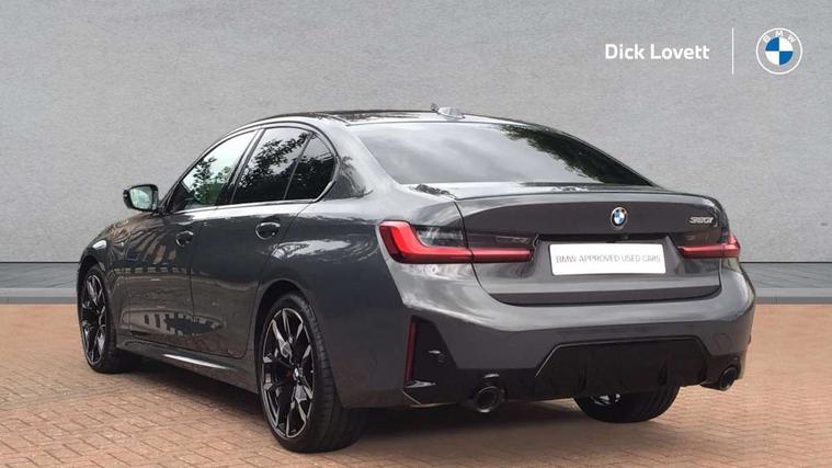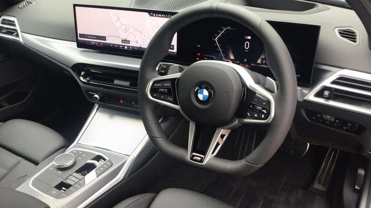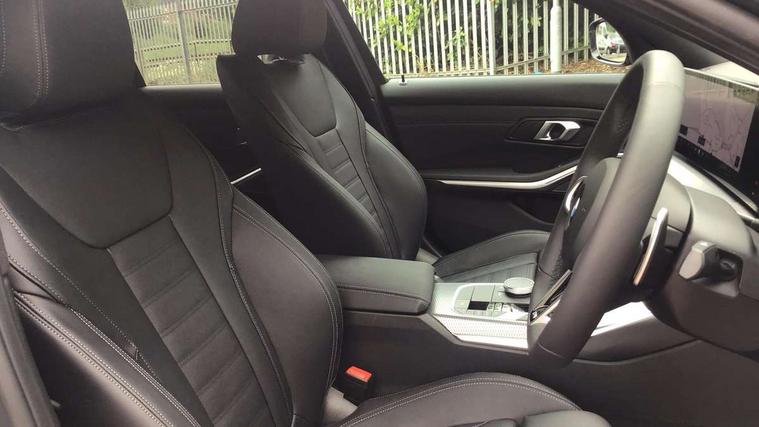 Active guard plus, Attentiveness assist, Automatic Start/stop button, Bluetooth Wi-Fi interface, BMW iDrive, BMW Teleservices, ConnectedDrive Services - last state call, Live cockpit plus with Navigation + 12.3" instrument display + 14.9" display, Intelligent voice assist, 2 USB, 4G LTE connect, Oil sensor for level and grade, Personal e-SIM, Shifting point display, Variable sport steering, Double joint spring strut front axle, Fuel tank breather system, Steptronic Sport automatic transmission with steering wheel mounted gearshift paddles launch control and xtreme drive lever control, DAB tuner, 3rd brake light, Auto dimming rear view mirror, Automatic headlight beam throw control with load dependent regulating reaction, dynamic compensation of braking dive and acceleration squat, Bi-LED Low and high beam headlights, BMW emblem, engine compartment lid and tailgate, Body colour roof fin, Door sill strips, Electric windows - front and rear, with open/close fingertip control, anti-trap facility and comfort closing, Fading support, Folding wing mirror with auto dimming, Follow me home headlight function, Front and rear bumper system with replaceable deformation elements, Front apron plastic in body colour, Fuel filler flap - right rear in body colour, Heat protection glazing on front windows and windscreen, Heated washer jets, High gloss chrome kidney frame with high gloss black kidney struts, LED daytime running lights, LED rear lights, LED turn indicator, Licence plate panel integrated into front bumper and tailgate, M high gloss shadow line exterior trim, Matt black B-pillar finsher, Matt black window recess cover, Model designation on right side of tailgate, One piece front bumper cover including towing eye cover in body colour, Rain sensor with automatic headlight activation, Rear boot, Rear side wing doors, Reversing lights, Side frame decorative moulding black matt, Trailer stabilisation logic, Visible exhaust tailpipe finisher, Welcome lights in interior and door handle area, 12V power socket in front storage compartment, 2 front cupholder in centre console with clamping elements and matt black inlay, 3 seat bench in 2nd row, 3 spoke M Sport multifunction flat bottom leather steering wheel, 3 zone automatic air conditioning, 40:20:40 split folding rear seat with loading system, Anthracite headlining, Armrest integrated in front and rear door trim + front centre console armrest, BMW ID, Cruise control operation in steering wheel, Driving experience mode switch, Folding rear centre armrest with 2 cupholders, Front and rear headrests, Front and rear velour floor mats, Front reading light, Heated front seats, Height adjustable mechanically and infinitely variable steering column, Illuminated armrest storage compartment, Illuminated glove compartment, Illuminated luggage compartment, Lashing eyelets in luggage compartment, Single front passenger seat, Sunvisors with illuminated vanity mirrors and ticket pocket, Toolkit located in luggage compartment, Connected pack professional - 3 Series Saloon/Touring, Interior and exterior mirror pack - 3 Series Touring/Saloon, M sport exterior styling pack - 3 Series Saloon/Touring, Parking assistant pack - 3 Series, 3x3 point rear seatbelts, BMW emergency call, Child locks on rear doors, Crash sensor activating of airbags, Unlocking doors, hazard warning lights, interior light, safety battery terminal, Drive-off assistant, Driver and front passenger with seat occupancy detection for driver's and passenger side, Driver and passenger side airbags, body protection at side and airbags deploy from seat backrests, Dry braking, Dynamic brake control, Dynamic stability control + (DSC+) - Anti-lock Braking System (ABS) with brake assist and cornering brake control + Automatic Stability Control (ASC), Dynamic Traction Control - DTC, Electric parking brake including automatic hold function and automatic release of the parking brake when driving off, Electronic differential lock control (EDLC), Front airbag deactivation, Front airbags for driver and front passenger, Head airbags in 1st and 2nd row, head protection at side, curtain airbags open from headliner above 1st and 2nd row, Plastic fuel tank, Side impact protection, Tyre pressure sensors, Ventilated front and rear disc brakes, Warning triangle and first aid kit, Alarm system, Centre lock switch, Closing system with central locking, Electronic vehicle immobiliser, Locking wheel bolts, Tyre repair kit,
