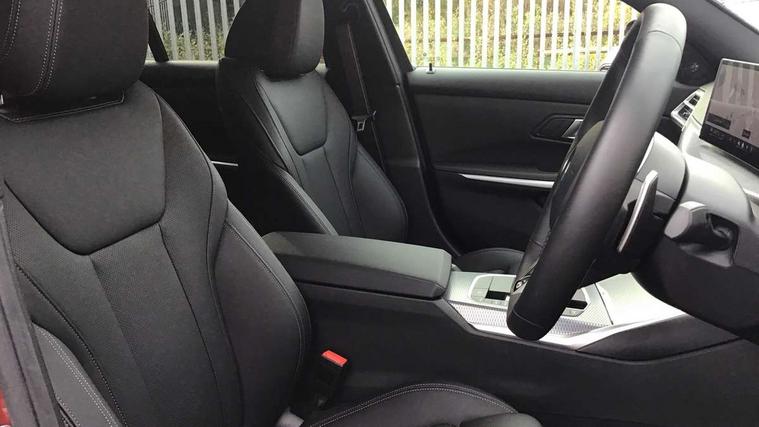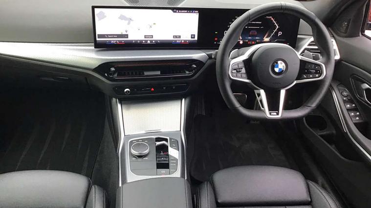 Active guard plus, Attentiveness assist, Automatic Start/stop button, Bluetooth Wi-Fi interface, BMW iDrive, BMW Teleservices, ConnectedDrive Services - last state call, Live cockpit plus with Navigation + 12.3" instrument display + 14.9" display, Intelligent voice assist, 2 USB, 4G LTE connect, Oil sensor for level and grade, Personal e-SIM, Shifting point display, Variable sport steering, Double joint spring strut front axle, Fuel tank breather system, Steptronic Sport automatic transmission with steering wheel mounted gearshift paddles launch control and xtreme drive lever control, DAB tuner, 3rd brake light, Auto dimming rear view mirror, Automatic headlight beam throw control with load dependent regulating reaction, dynamic compensation of braking dive and acceleration squat, Bi-LED Low and high beam headlights, BMW emblem, engine compartment lid and tailgate, Body colour roof fin, Door sill strips, Electric windows - front and rear, with open/close fingertip control, anti-trap facility and comfort closing, Fading support, Folding wing mirror with auto dimming, Follow me home headlight function, Front and rear bumper system with replaceable deformation elements, Front apron plastic in body colour, Fuel filler flap - right rear in body colour, Heat protection glazing on front windows and windscreen, Heated washer jets, High gloss chrome kidney frame with high gloss black kidney struts, LED daytime running lights, LED rear lights, LED turn indicator, Licence plate panel integrated into front bumper and tailgate, M high gloss shadow line exterior trim, Matt black B-pillar finsher, Matt black window recess cover, Model designation on right side of tailgate, One piece front bumper cover including towing eye cover in body colour, Rain sensor with automatic headlight activation, Rear boot, Rear side wing doors, Reversing lights, Side frame decorative moulding black matt, Trailer stabilisation logic, Visible exhaust tailpipe finisher, Welcome lights in interior and door handle area, 12V power socket in front storage compartment, 2 front cupholder in centre console with clamping elements and matt black inlay, 3 seat bench in 2nd row, 3 spoke M Sport multifunction flat bottom leather steering wheel, 3 zone automatic air conditioning, 40:20:40 split folding rear seat with loading system, Anthracite headlining, Armrest integrated in front and rear door trim + front centre console armrest, BMW ID, Cruise control operation in steering wheel, Driving experience mode switch, Folding rear centre armrest with 2 cupholders, Front and rear headrests, Front and rear velour floor mats, Front reading light, Heated front seats, Height adjustable mechanically and infinitely variable steering column, Illuminated armrest storage compartment, Illuminated glove compartment, Illuminated luggage compartment, Lashing eyelets in luggage compartment, Single front passenger seat, Sunvisors with illuminated vanity mirrors and ticket pocket, Toolkit located in luggage compartment, Connected pack professional - 3 Series Saloon/Touring, Interior and exterior mirror pack - 3 Series Touring/Saloon, M sport exterior styling pack - 3 Series Saloon/Touring, Parking assistant pack - 3 Series, 3x3 point rear seatbelts, BMW emergency call, Child locks on rear doors, Crash sensor activating of airbags, Unlocking doors, hazard warning lights, interior light, safety battery terminal, Drive-off assistant, Driver and front passenger with seat occupancy detection for driver's and passenger side, Driver and passenger side airbags, body protection at side and airbags deploy from seat backrests, Dry braking, Dynamic brake control, Dynamic stability control + (DSC+) - Anti-lock Braking System (ABS) with brake assist and cornering brake control + Automatic Stability Control (ASC), Dynamic Traction Control - DTC, Electric parking brake including automatic hold function and automatic release of the parking brake when driving off, Electronic differential lock control (EDLC), Front airbag deactivation, Front airbags for driver and front passenger, Head airbags in 1st and 2nd row, head protection at side, curtain airbags open from headliner above 1st and 2nd row, Plastic fuel tank, Side impact protection, Tyre pressure sensors, Ventilated front and rear disc brakes, Warning triangle and first aid kit, Alarm system, Centre lock switch, Closing system with central locking, Electronic vehicle immobiliser, Locking wheel bolts, Tyre repair kit,