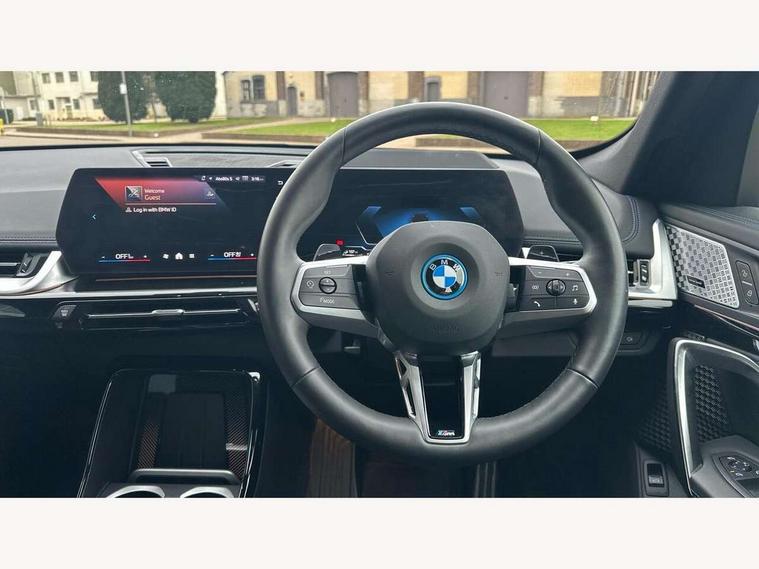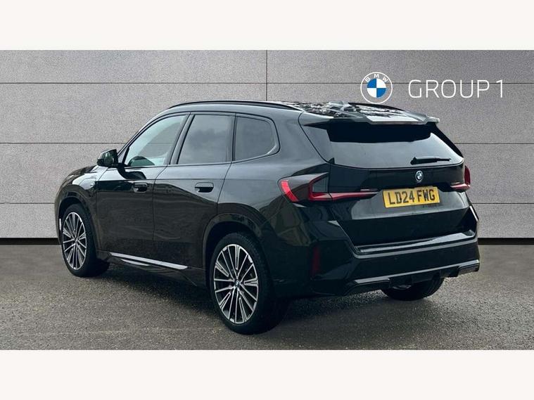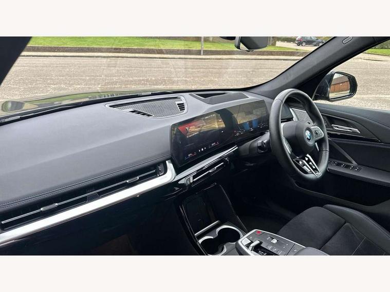Attentiveness assist, Automatic start/stop function, BMW Live Cockpit Plus with 10.25" instrument cluster and 10.7" display, BMW Operating system 9 with BMW Maps, real-time traffic information, in-car experiences, remote services and smartphone integration, BMW Teleservices, Brake pad wear indicator, Condition based service, Connected eDrive Services, Drive off assistant, Electrically opening/closing tailgate with opening/closing with remote control and contactless opening and closing, iDrive controller, Language version English, My Modes, Parking Assistant with Reversing Assistant, active PDC, Lateral Parking Aid, Rear View Camera and Park Distance Control, Personal Profile - automatic lock when driving away selectable, Servotronic PAS, Tyre puncture warning system, Widescreen display, 45 Litre fuel tank, eDrive exterior sound, EU6 emissions management, Fast charging cable professional mode 3 for public charging, M Adaptive suspension, Performance Control, Petrol Particulate Filter, Steptronic transmission with double clutch and gear shift paddles, xDrive intelligent four wheel drive system, DAB Digital radio, Badge on engine compartment lid and tailgate, Dynamic brake lights, Electric adjustable heated door mirrors, Electric windows - front and rear, with open/close fingertip control, anti-trap facility and comfort closing, Folding door handles integrated flush with surface, Follow me home headlights, Front and rear bumper panel with M specific design, in body colour with inserts in black high gloss, Front door exit lights, Front entry sills aluminium inserts with M inscription, Heated rear window, High gloss shadow line incl A/B/C-pillar panel/window frame/recess finish strip/window rail front door/mirror frame/cover panel in high gloss black, Invisible exhaust tailpipe, Key with M identification, LED 3rd brake light integrated in rear spoiler, LED daytime running lights, LED number plate light, M identification on the sides, M roof rails high gloss shadow line, M specific radiator grille in satinated aluminium, Matt black roof strips, Rain sensor including auto headlights activation, Rear side wing doors, Rear wiper, Side sill covers with M specific design in body colour, Trailer stabilisation logic, Windscreen washer nozzle for rear view camera, Windscreen wipers front with heated washer nozzles, 12V - Power sockets with front centre console and luggage compartment, 2 bag hooks in luggage compartment, 2 cup holders in front, 2 x USB Type C ports for charging and data transmission (front centre console) and 2 x USB Type C ports for charging (rear centre console), 3 rear headrests, 3 seat bench in 2nd row, 3 upper retaining strap clips integrated into rear panels of seat backrests, 40:20:40 split folding rear seats, Ambient interior lighting, Anthracite headlining, Anthracite Velour front and rear floormats, Bottle trays in all doors, Child seat ISOFIX attachment for two outer rear seats and front passenger seat with anchorage points, Clothes hook rear, Driver and front passenger heated seats, Dual zone automatic air conditioning, Front and rear door pockets, Front centre console storage compartment, Front/rear adjustable head restraints, Glove compartment, Light on right in luggage compartment, M sport leather steering wheel, Manual steering column height and depth adjustment, Map pockets, Middle centre console storage compartment, One piece parcel shelf opens together with tailgate and removable, Rear armrest in door trim panel, Single front passenger seat, Sport leather multifunction steering wheel with thumbrests and operation of instrument display, audio, telephone and driver assistance, Storage compartment net in left side trim panel, Storage compartment with folding cover under centre console armrest cushion, Storage tray in right side trim panel, Tilt adjustment incl. cargo function of 2nd row of seats, ABS/EBD, Automatic hold function, Automatic Stability Control (ASC), BMW emergency call, Braking readiness, Cornering brake control (CBC), Crash Sensor - activates hazard/interior lighting + unlocks doors, Driver/Front Passenger airbags, Driver/front passenger side airbags, Dry braking, Dynamic brake control, Dynamic stability control + (DSC+), Electromechanical parking brake, Energy recovery system, First aid kit, Front and rear brake discs, Front and rear head airbags, Front passenger airbag deactivation, Integrated brake system, PC iBrake PostCrash approach control warning with light braking function, Rear door child safety locks, Three point seat belts in all seats, Tyre pressure monitor, Warning triangle, Alarm system with tilt sensor, monitoring doors, bonnet interior and tailgate, Closing system with central locking, Locking wheel bolts, Luxury instrument panel, Tyre repair kit (including Tyre sealant and 12V Compressor),