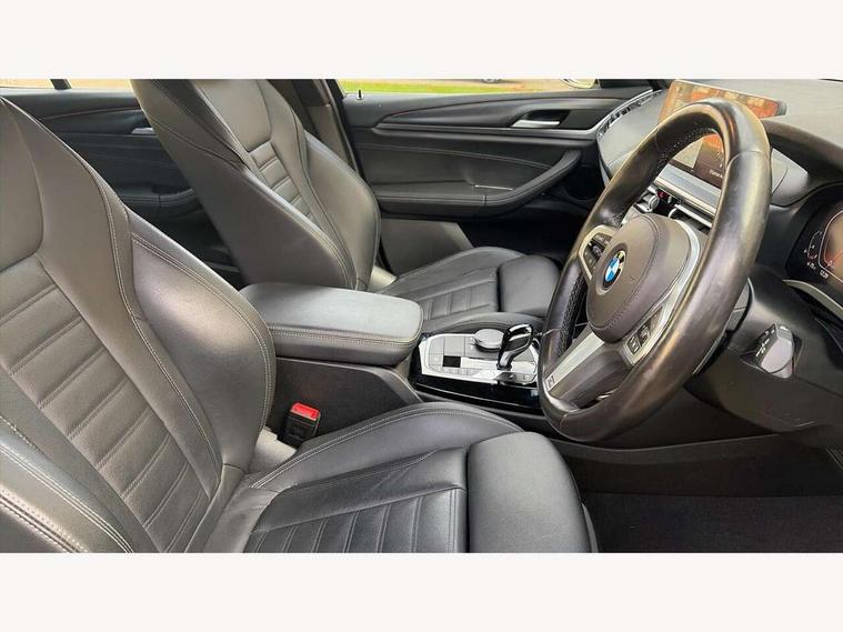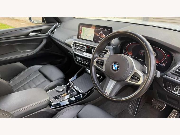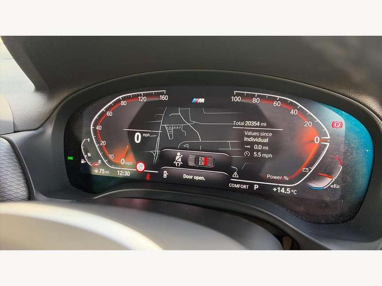 Active Guard, Attentiveness assist, BMW Live Cockpit Professional nav system including 12.3" instrument display + 12.3 high resolution control display, BMW Online services, BMW Teleservices, Brake pad wear indicator in front and rear, Check Control warning system for monitoring of lights and door/luggage compartment open warning, Condition based service - BMW service history, electronic service booklet, integrated owner's handbook, Connected drive services, Cruise control with brake function + speed limiter, Electric boot lid, Front/rear Parking distance control, iDrive Controller with 8 favourite buttons, Instrument cluster with speedometer with mph readout, tachometer, fuel gauge and oil temperature gauge, Lights on warning by audio warning signal when ignition is switched off, Oil sensor for level and grade, warning by check control system, On board computer - average speed+fuel consumption, service interval, clock/date, odometer/trip meter, outside temperature display and ice warning, Optimum shift indicator, Personal Profile - automatic lock when driving away selectable, Run flat indicator, Stop/start system, Variable sports power steering with drive performance control Sport+ mode, Automatic transmission with gearshift paddles, Incorrect fuelling protection, M sport suspension, Multi-link rear suspension, Performance Control, BMW professional radio/CD/MP3, DAB tuner, Acoustic glazing, Automatic windscreen wipers and automatic headlight, Black finish on B pillars, Body colour door handles, Body colour electric adjust heated aspherical door mirrors, Body colour roof mouldings, Body coloured bumpers, Direction indicator, side repeaters, integrated in exterior mirrors, Dynamic brake lights, Exhaust tailpipes - dual, round, split left and right with chrome finisher, Fingertip control / anti-trap function on electric window, Folding wing mirrors with auto dimming, Follow me home headlights, Front and rear bumper system with replaceable deformation elements, Front and rear electric windows, Gloss chrome tailpipes finishers, Green tinted heat insulating glass, Heated windscreen washer jets, High beam assistant, High gloss black shadow line roof rails, High gloss shadowline exterior trim in decorative moulding side frame/recess cover/guide rail/B, C pillars/mirror frame and triangle with mirror base, High level 3rd brake light incorporating LED Technology, Interior rear view electrochromatic mirror with automatic anti dazzle function, LED tail lights, Lightweight engineering, M aerodynamic bodystyling, M Sport entry door sill strips, Model designation, Rear side wing doors, Rear wing door, Rear wiper, Shark fin antenna, Side exterior M designation badges, Visible VIN plate, Welcome lighting, Windscreen wipers with adjustable interval, 12V power socket in front centre console, 3 rear headrests, 3 seat bench in 2nd row, 3 zone automatic air conditioning, 4 lashing points to secure luggage, 40:20:40 split folding rear seat with loading system, Ambient lighting, Anthracite headlining, Automatic interior light when door is opened/ignition switched off or via remote key, Driver seat backrest width adjustment, Floor mats in velour, Foldable storage floor with compartment, Four grab handles integrated in roof lining, Front and rear bottle holders integrated into door trim storage compartments, Front and rear side armrests integrated into door trim, Front centre armrest with storage compartment, Front footwell lights, Front head restraints, Front passenger seat, Front sports seats, Front/rear courtesy lights with soft on/off dimming, Front/rear reading lights, Heated front seats, Isofix rear child seat preparation, Leather gear knob, Luggage area underfloor compartment, Luggage compartment lighting, M sport leather steering wheel, Multifunction steering wheel, Parcel shelf removeable and storable under boot floor, Reach and rake adjustable steering column, Rear centre armrest with 2 cupholders, Removable / retractable luggage cover, Slope adjustable rear seats, Storage compartment in rear centre console and front/rear door trims, Sun visors with vanity mirrors and ticket pocket, Toolkit located in luggage compartment, Two front cupholders with removable oddments tray/lid, Vernasca leather upholstery, Connected pro pack - X3, Driving assistant pack - X3, ADB - Automatic Differential Brake, Anti-lock braking system (ABS) with brake assist, Automatic Stability Control (ASC), Battery safety cut-off, BMW emergency call, Brake drying, Brake energy regeneration, Braking pre-tensioning, Child locks on rear doors, Cornering brake control (CBC), Crash Sensor - activation of central locking release, hazard warning light and interior lighting, Deactivation of fuel pump in the event of a crash, Driver and front passenger front and side airbags with passenger deactivation and ITS front and rear head airbags, DSC+, Dynamic brake control, Dynamic Traction Control - DTC, Electromechanical parking brake, Hill descent control, Hill start assist, Seatbelt security check for front seats, Side impact protection, Three point seatbelts to all seats with front and outer rear pyrotechnic belt tensioners and seat belt force limiters, Two tone horn, Tyre pressure sensor, Ventilated front and rear disc brakes, Warning triangle and first aid kit, Central locking switch for all doors, fuel filler cap and luggage compartment, Electronic engine immobiliser, Locking wheel nuts, Remote control including two integrated key - one button for open/close all lockable content, windows and separate button for open luggage compartment, Remote control Thatcham category 1 alarm, Start/stop button with Comfort Go keyless engine start and auto Start/stop deactivation button, Low rolling resistance tyres,