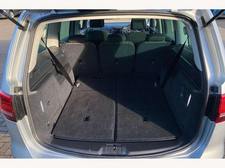 Adaptive cruise control, Bluetooth telephone and audio connection for compatible devices, Door/boot open warning light, Driver alert system, Dynamic traffic sign recognition, Front and rear parking sensors, Front assist with city emergency braking and speed limiter, Lane assist and camera controlled warning system, Low washer fluid warning light, Service interval indicator, Speed sensitive power steering, Start/Stop function, Warning buzzer and light for front seatbelts unfastened, We Connect Go Dongle, Battery regeneration during braking, Stop/start function, 2 USB charging points in 2nd row, Auxiliary socket for external MP3 player, Multi device interface (MDI) with USB connection, Music playback - MP3, WMA and AAC files, Premium USB cable for Apple or Android smartphone compatibility, SD card slot, SMS Functionality, Title and cover art display, Auto dimming rear view mirror, Automatic coming/leaving home lighting function, Body colour bumpers, Body colour door handles, Body colour door mirrors with integrated indicators incorporating LED Technology, Chrome louvres in grille, Chrome trimmed front air intake surrounds, Chrome trimmed side windows, Dusk sensor + auto driving lights, Electrically adjustable and heated door mirrors, Front and rear electric windows, Front windscreen wiper with intermittent wipe and 4 position delay, Gloss black radiator grille, Heated rear window, High level 3rd brake light, Intermittent rear wash/wipe, Load sill protection, Rain sensor, Rear tinted glass 65% approx light absorbing from B pillar backwards, 12V socket in centre console and luggage area, 2 single seats foldable in 3rd row, 2nd row outer seats floor storage compartment in footwell, 2x Rear coat hooks, 3 single seats foldable in 2nd row, 3 spoke multifunction leather steering wheel with gear knob, radio controls, multifunction computer and paddle shift, 4 way adjustable front head restraints, 5 Rear head restraint, Branded points of interest, Carpet mats - front, 2nd and 3rd row, Centre dash storage with lid, Easy folding seating system 2nd and 3rd row seats, Electric adjustable driver's seat with backrest and lumbar support, Folding front centre armrest + storage, Front comfort seats, Front cupholders x2 with covers, Front passenger seat height + lumbar support, Front seat back map pockets, Front seatback folding tables, Front/rear door stowage bins, Height/reach adjust steering wheel, Illuminated vanity mirrors, Interior light with delay, LED reading lights, Load lashing points in luggage compartment chrome plated and folding x 2, rigid x 2, Lockable, illuminated, cooled glovebox, Luggage area lamp, Luggage hooks, Rear seat easy entry, Retractable/removable luggage compartment cover, Storage compartment in 2nd row centre console, Storage compartment in luggage compartment, Storage compartment in rear doors, Storage compartment in roof console, Storage drawers under front seats, Sun visors, Through load system, 3 point rear seatbelts, ABS, Automatic post collision braking system, Curtain airbags for 1st/2nd/3rd rows, Door open warning reflectors, Driver/Front Passenger airbags, Drivers knee airbag, Electronic child locks for rear doors and rear electric windows, Electronic parking brake with auto hold, ESP with EDL + ASR, Front seat side impact airbags, Front ventilated disc brakes and rear disc brakes, HBA (Hydraulic Brake Assist), Height adjustable front 3 point seatbelts + pretensioners, Passenger airbag deactivation system, Tyre pressure loss indicator, Alarm with interior protection, Electronic engine immobiliser, Remote central locking with 2 remote folding keys, Speed sensitive auto door locking (can be switched off), Triangle titan decorative inserts in dash centre console and front doors, Self sealing tyres, Tyre mobility kit including compressor and sealing foam,