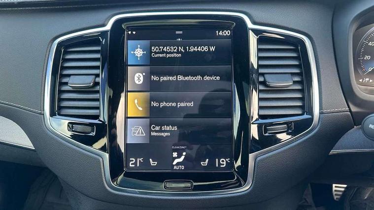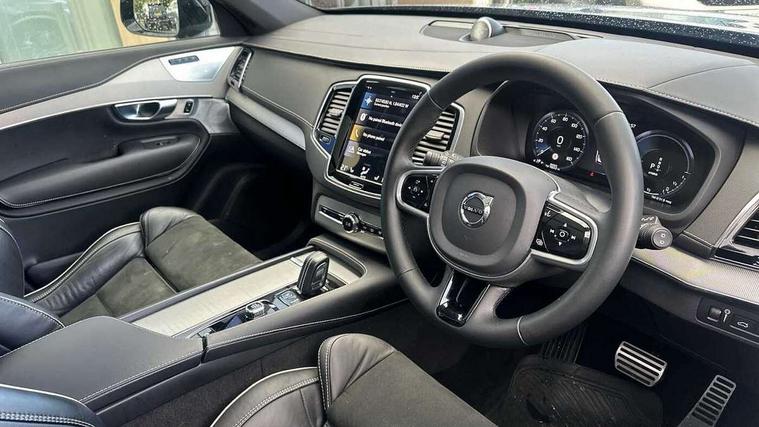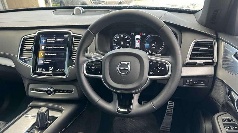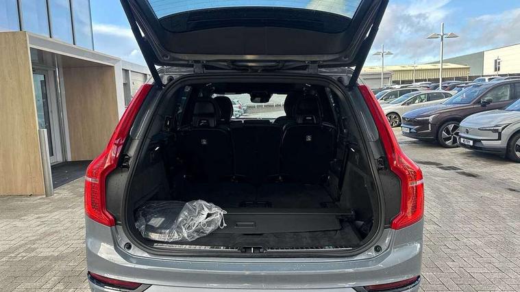 12.3" Active TFT crystal driver's instrument display, 9" centre console portrait touch screen, Adjustable steering wheel force, Bluetooth hands free telephone connection, Drive mode settings, Driver alert control with lane keeping aid, Driver assistance (pilot assist and adaptive cruise control), Driver awareness - Blind spot information system with steer assist, cross traffic alert with autobrake and rear collision warning and mitigation, Emergency call service, Front and rear park assist, Handsfree power tailgate opening and closing, Oncoming Lane Mitigation, Sensus navigation with European mapping and traffic information, Service interval indicator, Speed limiter, Speed sensitive steering, Trip computer, Voice activated control for key functions, Volvo on call, 7m Charge Cable with 3 Pin Plug, 7m Type 2/mode 3 charge cable, 8 speed automatic transmission with start/stop + manual change functions, All wheel drive system, Electric rear axle drive, Lithium-ion battery, Recharging port located in nearside front wing, Touring chassis, DAB Radio (Digital Audio Broadcasting), Steering wheel remote infotainment controls, Adaptive brake lights with high level LED brake lights, Auto dimming interior + exterior mirrors, Automatic headlight levelling system, Automatic LED Headlights + Active high beam incorporating daytime running lights, Body colour bumpers, Dark tinted windows for rear side windows and cargo area, Dual integrated exhaust pipes with high gloss black surround, Electric folding and heated door mirrors, Front and rear power windows, Heated washer nozzles, High gloss black Deco lower front bumper, High gloss black door mirrors, High gloss black lower rear valance, High gloss black mesh front grille with surround, High gloss black window surround, Home safe and approach lighting, Integrated roof rails in high gloss black, Puddle lights, Rain sensor with automatic windscreen wiper activation, Rear side wing doors, Rear wash/wipe with intermittent wipe setting, Roof antenna, Roof spoiler, Visible VIN plate, 12V socket front tunnel console, rear passenger compartment and cargo area, 2 seat bench in 3rd row, 3 seat bench in 2nd row, 4 Zone electronic climate control + cooled glovebox, A-pillar parking ticket holder, Ambient door and instrument panel lighting, B Pillar ventilation, Bright metal luggage threshold, Cargo divider with grocery bag holder, Centre console cupholders and storage, Charcoal headlining, Driver's side lower dashboard storage compartment, Front and rear door pocket and front cupholder illumination, Front footwell and side step illumination, Front headrests, Front seat cushion extensions, Heated front seats, Height/reach adjustable steering column, Illuminated luggage compartment, Illuminated tailgate, Illuminated vanity mirrors + ticket holder, Illumination lockable glovebox compartment, Integrated sun curtains in rear doors, Load protection net, Lower dashboard, tunnel console, Lower door panel in blond, Multicolour theatre lighting, Outboard armrest with cupholder and storage for third row passengers, Power driver seat with multi directional lumbar support and memory for seat and exterior mirrors, Power folding 2nd row headrests, Power passenger seat with multi directional lumbar support and memory, Rear footwell and side step illumination, Rear headrests, Recharge aluminium tread plates, Semi automatic load cover, Single front passenger seat, Sports floor mats, Sports leather gear knob, Sports pedals, Underfloor cargo storage, 7 three point seatbelts, City safety includes pedestrian, cyclist and large animal detection and front collision warning with full auto brake, Drivers knee airbag, Dual stage driver/passenger airbags, First aid kit, Front seats SIPS airbags, Hill descent control, Hill start assist, IC (Inflatable Curtains) - Full Length, Passenger airbag cut-off switch, Power parking brake with auto hold function, Road sign information display, Run off Road Mitigation, Run off Road Protection, Seatbelt reminder and pretensioners for all seats, SIPS (Side Impact Protection System), Slippery road and hazard light alert, Stability and Traction Control with Spin control, Engine Drag Control and Corner Traction Control, Tyre pressure monitoring system, Vehicle deceleration control with Anti-lock Brake System, Electronic Brake Distribution and Emergency Brake Assist, Warning triangle, WHIPS whiplash protection system - front, Anti-theft alarm including immobiliser/volume sensor + level sensor, Care key with user defined top speed, Key integrated remote control central locking + fuel flap with deadlocking system and auto open/close power windows, Keyless drive (includes keyless entry and keyless start) with remote tag, Locking wheel nuts, Private locking for glovebox and tailgate, Metal mesh inlays, Tailored Instrument Panel and Door Tops with Contrast Stitching, Tyre sealant kit + 12v compressor,
