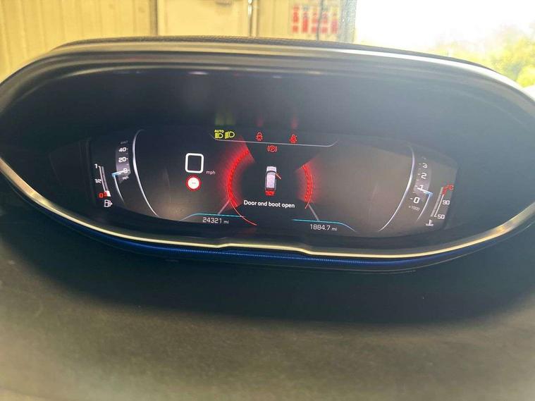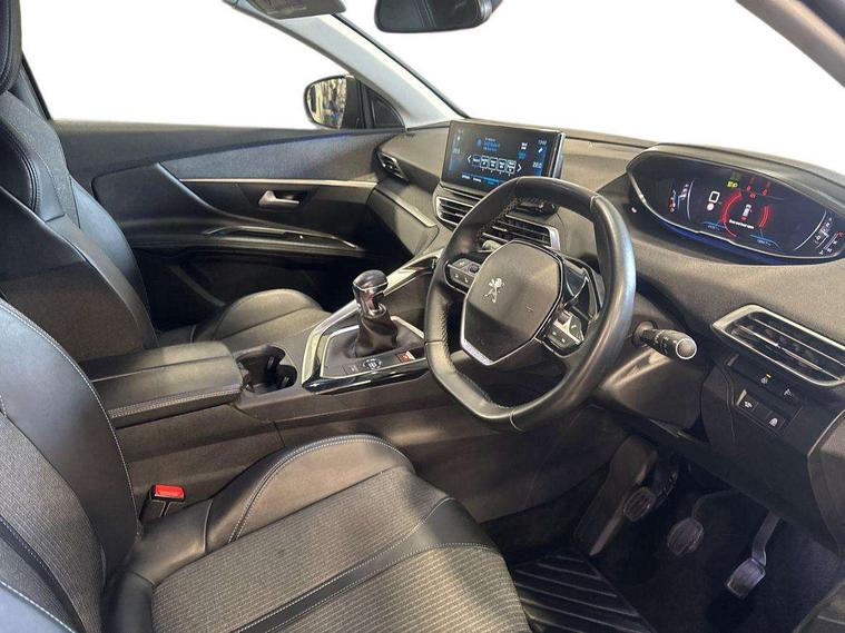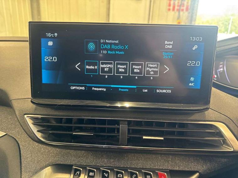 3D connected navigation with 10" HD touchscreen, Bluetooth telephone facility, Drive modes select (Eco, normal and sport), Driving Time Warning (DAA1), Emergency services call system, Extended traffic sign recognition, Exterior temperature indicator with ice warning, Front parking sensors, Mirror screen with mirror link, apple carplay and android auto, Multi function trip computer, PEUGEOT i-Cockpit with 10" high definition capacitive touchscreen, Peugeot i-cockpit with compact multi-function sports steering wheel, PEUGEOT i-Cockpit with configurable 12.3" Head-up digital instrument panel, Rear parking aid, Speed limit recognition and recommendation, Voice recognition, Dynamic stability control and electronic anti-skid system, Stop/start function, 6 speakers radio with mp3 compatible, DAB Digital radio, USB socket, Aluminium longitudinal roof bars, Automatic hazard light activation upon heavy brake application, Automatic triggered rear windscreen wiper in reverse gear, Black rubber side window trim, Black with chrome detailed front wing trim, Body colour door handles, Body colour rear roof spoiler with stainless steel edging trim, Body protectors (bottom of front and rear bumpers + wheel arches + protection at bottom of doors) in black, Chrome frameless 'Classic' grille, Chrome rear bumper facia, Dark tinted rear side windows + tailgate window, Diamond Black door mirror shells, Door mirror mounted LED courtesy floor lighting, Eco LED headlights, Electric folding door mirrors with exterior courtesy LED lighting, Electric operated/heated door mirrors, Front and rear door and sill protectors with polished stainless steel insert, Front bumper lower trim in Silver, Front windscreen wiper with magic wash cleaning system, Gloss black B and C pillar and aerodynamic deflector trim, Gloss black front bumper air scoops, Gloss black rear cluster connecting strip, Gloss black windscreen trim, Headlights left on audible warning, Heated rear windscreen with integrated antenna, LED daytime running lights, LED front indicator, LED rear number plate lighting, LED side indicator lights integrated into door mirrors, LED third brake light, One touch electric front/rear windows with pinch protection, Rear LED Peugeot signature 'Claw Effect' lights, Rear side wing doors, Stainless steel roof arches, 1/3 to 2/3 split folding rear seats, 12V Sockets in dashboard, rear cabin and load area, 2 cupholders in front centre console, 2 cupholders in rear armrest, 2 x Rear reading spotlights, 2x Rear coat hooks, 3x Isofix child seat fittings in the front passenger and outer rear seats, 4 Grab handles retractable and damped, Blue ambient lighting for connecting zone, Blue ambient lighting to front door panels, Blue ambient lighting to headup instrument panel, Brumeo fabric trimmed door armrests, Centre front armrest with butterfly wing opening and illuminated storage compartment, Driver seat lumbar adjustment, Driver seat manual adjustment (longitudinal and back rest angle), Dual zone automatic climate control, Electric power steering with reach and rake adjustable steering column, Flocked glovebox interior, Foldable front passenger seat with picnic table, Footwell illumination, Front interior light with 2 reading spotlights and rear interior light with timer, Front passenger seat manual adjustment (longitudinal and back rest angle), Front seat back map pockets, Gear shift indicator, Height adjustable front seats, Illuminated glovebox, Individual left and right controls in boot for seat folding, Leather steering wheel with detail stitch, LED interior lighting in storage spaces and load area, LED roof interior lighting, Rear bench seat with central armrest and ski hatch, Rear centre console ventilation system, Roof lining - Salin light grey, Satin chrome dashboard trim, Satin chrome digital instrument panel and touchscreen trim, Satin chrome front door panel recess trim, Satin chrome interior door handles, Satin chrome scorpion's tail and toggle switch trim, Seatbelt not fastened audible and visual alert for front seats, Seatbelt unfastened on the move audible and visual alert for front and rear seats, Sunvisors with illuminated vanity mirrors, Two position boot floor, Safety plus pack with high beam assist - 3008, Visibility pack - 3008, 3x Rear three-point retractable seatbelts with force limiters in the outer rear seats, ABS (Anti-lock Braking System) with EBD (Electronic Brakeforce Distribution) and EBA (Emergency Braking Assistance), Adaptive driver and front passenger airbags with passenger airbag deactivation function, Driver and front passenger side airbags, Electric child locking functionality on rear windows and doors, Electric parking brake, Front and rear curtain airbags, Front optimised safety headrests and 3 x rear retractable headrests with height adjustable, Front three point retractable seatbelts with pre tensioners and force limiters, Front ventilated disc brakes and rear disc brakes, Hill start assist, Two tone horn, Automatic door locking when moving off, Electronic immobiliser, key operated exterior door lock from the left hand door, Perimetric and volumetric alarm with lift and tilt sensor, Peugeot Open and Go System, Remote control central locking with two plip keys, Brumeo fabric Dashboard, front and rear door panel finish, Puncture repair kit including compressor, sealant cartridge and towing eye,