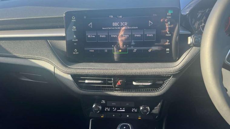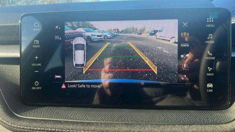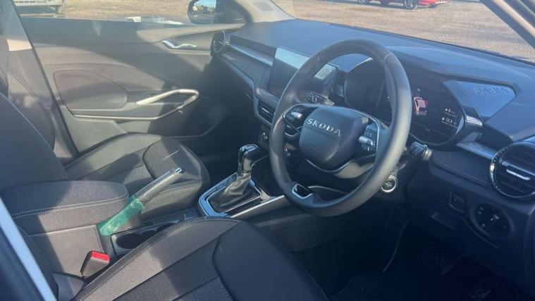 Advanced driver attention and drowsiness monitor, Bluetooth connection, Driver alert system, Electromechanical power steering, Exterior temperature gauge, Service interval indicator, Traffic sign recognition, Virtual cockpit with 10.25" colour display, Wireless SmartLink for Apple CarPlay and Android Auto, 6 Speakers (4 in front and 2 in rear), 9.2" colour display skoda navigation system with voice control and web radio, Auxiliary socket for external MP3 player, DAB digital radio reception, Auto dimming rear view mirror, Body colour door mirrors, Body coloured bumpers, Chrome window surround, Door mirror integrated indicators, Front and rear electric windows, Front window wiper intermittent control, Headlight range control - Automatic, Ice scraper in fuel cap, LED 3rd brake light, LED daytime running lights with coming and leaving home feature, LED rear lights, Privacy glass, Rear LED fog light, Rear side wing doors, Rear window wiper with washing nozzles, Roof mounted spoiler, SKODA tailgate lettering in chrome, Unique dark chrome design logo on alloy wheels, 2 LED reading lights in front and rear, 3 rear headrests, Backrest split and folding, Central console with fixed cup holder and storage box, Chrome handbrake release button, Comfort seats, Door sills with fabia badging, Dual zone air conditioning with climatronic electronic control, Fabric upholstery, Front centre armrest, Gearshift knob/handle in leather, Grain satin black interior door handles, Hand brake lever handle in leather, Height adjustable front headrests, Height adjustable front seats, Height adjustable steering wheel, ISOFIX and TopTether anchorage points to the outer rear seats, ISOFIX and TopTether on the front passenger seat, Luggage compartment lighting, Manually adjustable lumbar support in front seats, Pollen filter, Rear seat bench unsplit, Single front passenger seat, Skoda lettering on steering wheel, Storm grey headlining, Sun visors with mirror and airbag label on passenger side, Textile floor mats, Ticket holder, Umbrella in drivers door, Ambient lighting pack - Fabia Hatchback, 3-point height adjustable front seats belts with pretensioner and force limiter, Automatic warning lights in case of crash, Driver and passengers airbag with switch off function, e-Call+, ESC including ABS, MSR, ASR, EDS, HBA and XDS, Front and rear seat belt warning, FRONT ASSIST (AEB City and AEB Inter Urban), Front side airbags, Head airbags, Hill hold control, One tone horn, Pedestrian protection, Three rear 3-points safety seat belts with pretensioner and force limiter including stop function for outer rear seat belts, Tyre pressure monitoring system, Anti-theft alarm system including immobiliser, interior monitoring, backup horn, and towing protection, Central locking with radio remote control, interior controls, SAFE function and 2 foldable keys, Chrome edged air vents, Grain satin black central console cover, Metallic grey upper decorative trim, Satin black door and side trim panel in front, Textile microsuede grey lower decorative trim with art grey stitching, Anti-theft wheel bolts protection, Super-low rolling resistance tyres,