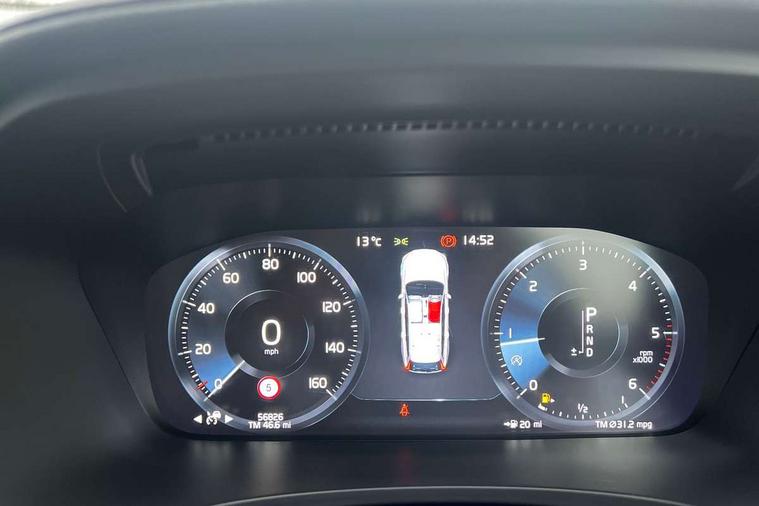 12.3" Active TFT crystal driver's instrument display, Adaptive cruise control with pilot assist, Adjustable steering wheel force, Bluetooth system, Drive mode selector, Electric tailgate release, Forward collision warning, Lane keep assist with driver alert control, Oncoming Lane Mitigation, Road Edge Detection, Service interval indicator, Speed limiter, Speed sensitive steering, Touch screen display, Voice control system, Volvo on call, Touring chassis, DAB Digital radio, Steering wheel mounted audio controls, Active bending headlights, Adaptive brake lights, Auto dimming interior mirror, Automatic headlamp levelling, Body colour electric folding/heated door mirrors, Charcoal lower side door mouldings, Charcoal lower sill mouldings, Chrome window surround, Dual exhaust pipes, Front and rear electric windows, Headlamp cleaning system, Heated washer nozzles, Heated windscreen, High gloss black grille with chrome inserts, High gloss side window surrounds, Home safe and approach lighting, Illuminated side steps, LED front fog lights with static cornering light function, LED Headlights + Active high beam incorporating daytime running lights, Rain sensor windscreen wipers, Roof spoiler, Silver roof rails, Silver skid plates, 12V socket in front + rear tunnel console, 3 spoke leather steering wheel, 60/40 split folding rear seat, A-pillar parking ticket holder, Ambient lighting, B Pillar ventilation, Centre console cupholder, Centre console storage, Door step illumination, Driver/front passenger seat electric height/lumbar adjust, Electric driver's seat with memory, Electric folding rear headrests, Extended front seat cushions, Floor mats, Front and rear aluminium tread plates, Front and rear door pockets, Front footwell illumination, Front headrests, Front tunnel storage net, Front/rear reading lights, Grocery bag holder-luggage area, Heated front seats, Heated steering wheel, Height/reach adjustable steering column, Illuminated front and rear tread plates, Illuminated front cupholder, Illuminated gear knob, Illuminated glovebox with lock, Illuminated luggage compartment, Illuminated tailgate, Illuminated vanity mirror, Isofix system on outer rear seats, Load cover, Multicolour theatre lights, Pollen filter, Rear armrest with storage + cupholders, Rear footwell illumination, Ski hatch, Storage compartment on driver's side, Underfloor stowage compartment, 3x3 point rear seatbelts, ABS/EBD, Active bonnet, City safety braking system, Drivers knee airbag, Dual stage driver/passenger airbags, EBA, Electronic parking brake with auto hold, Fasten seatbelt reminder, Front and rear curtain airbags, Hill descent control, Hill start assist, Passenger airbag cut-off device, Road sign information display, Run off Road Protection, Seatbelt pre-tensioners, Side airbags, STC - Stability and traction control, Tyre pressure monitoring system, Warning triangle and first aid kit, WHIPS whiplash protection system - front, Anti-theft alarm including immobiliser/volume sensor + level sensor, Deadlocking system, Key integrated remote control central locking, Keyless Start, Locking wheel nuts, Private locking, Tempa spare wheel,