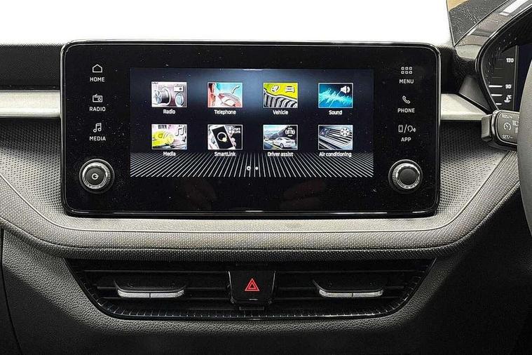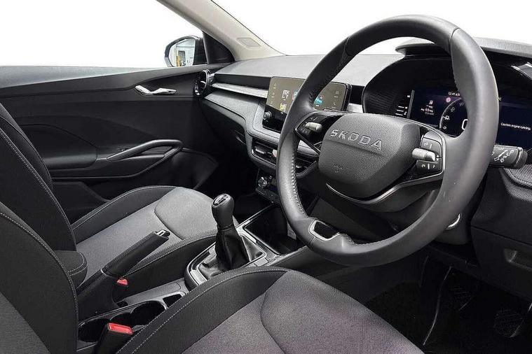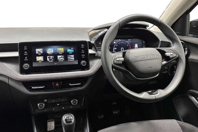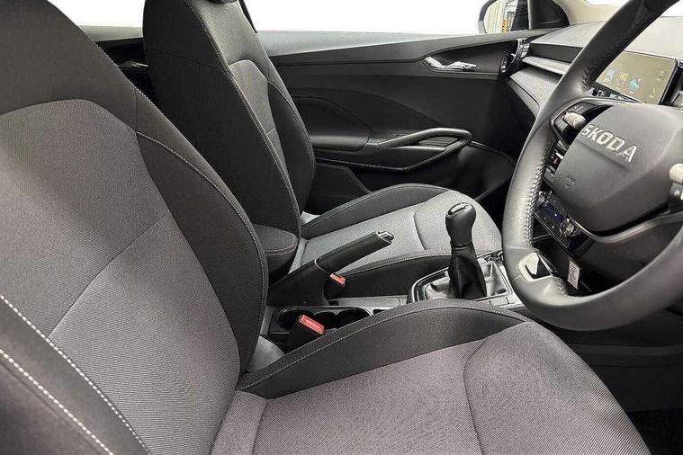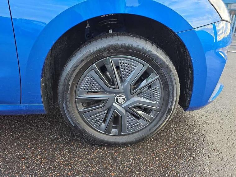 Advanced driver attention and drowsiness monitor, Bluetooth connection, Electromechanical power steering, Exterior temperature gauge, Service interval indicator, Traffic sign recognition, Virtual cockpit with 10.25" colour display, Wireless SmartLink for Apple CarPlay and Android Auto, 6 Speakers (4 in front and 2 in rear), Auxiliary socket for external MP3 player, DAB digital radio reception, Auto dimming rear view mirror, Body coloured bumpers, Door mirror integrated indicators, Front and rear electric windows, Front window wiper intermittent control, Headlight range control - Automatic, Ice scraper in fuel cap, LED 3rd brake light, LED daytime running lights with coming and leaving home feature, LED rear lights, Privacy glass, Rear LED fog light, Rear side wing doors, Rear window wiper with washing nozzles, Roof mounted spoiler, SKODA tailgate lettering in chrome, Unique dark chrome design logo on alloy wheels, 2 reading lights in front and 2 reading lights in rear, 3 rear headrests, Backrest split and folding, Central console with removable cup holder and storage box, Chrome handbrake release button, Dual zone air conditioning with climatronic electronic control, Fabric upholstery, Front centre armrest, Gearshift knob/handle in leather, Grain satin black interior door handles, Hand brake lever handle in leather, Height adjustable front headrests, Height adjustable front seats, Height adjustable steering wheel, ISOFIX and TopTether anchorage points to the outer rear seats, ISOFIX and TopTether on the front passenger seat, Luggage compartment lighting, Manually adjustable lumbar support in front seats, Pollen filter, Rear seat bench unsplit, Single front passenger seat, Skoda lettering on steering wheel, Storm grey headlining, Sun visors with mirror and airbag label on passenger side, Textile floor mats, Ticket holder, Umbrella in drivers door, 3-point height adjustable front seats belts with pretensioner and force limiter, Automatic warning lights in case of crash, Driver and passengers airbag with switch off function, e-Call+, ESC including ABS, MSR, ASR, EDS, HBA and XDS, Front and rear seat belt warning, FRONT ASSIST (AEB City and AEB Inter Urban), Front side airbags, Head airbags, One tone horn, Pedestrian protection, Three rear 3-points safety seat belts with pretensioner and force limiter including stop function for outer rear seat belts, Tyre pressure monitoring system, Anti-theft alarm system including immobiliser, interior monitoring, backup horn, and towing protection, Central locking with radio remote control, interior controls, SAFE function and 2 foldable keys, Black painted air vents, Grain satin black central console cover, Metallic grey upper decorative trim, Satin black door and side trim panel in front, Textile Kota grey lower decorative inserts, Anti-theft wheel bolts protection, Super-low rolling resistance tyres,