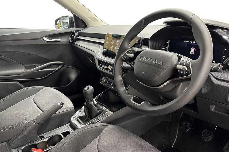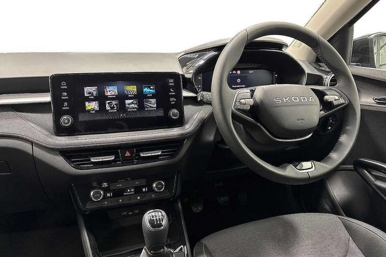 Advanced driver attention and drowsiness monitor, Bluetooth connection, Electromechanical power steering, Exterior temperature gauge, Service interval indicator, Traffic sign recognition, Virtual cockpit with 10.25" colour display, Wireless SmartLink for Apple CarPlay and Android Auto, 6 Speakers (4 in front and 2 in rear), Auxiliary socket for external MP3 player, DAB digital radio reception, Auto dimming rear view mirror, Body coloured bumpers, Door mirror integrated indicators, Front and rear electric windows, Front window wiper intermittent control, Headlight range control - Automatic, Ice scraper in fuel cap, LED 3rd brake light, LED daytime running lights with coming and leaving home feature, LED rear lights, Privacy glass, Rear LED fog light, Rear side wing doors, Rear window wiper with washing nozzles, Roof mounted spoiler, SKODA tailgate lettering in chrome, Unique dark chrome design logo on alloy wheels, 2 reading lights in front and 2 reading lights in rear, 3 rear headrests, Backrest split and folding, Central console with removable cup holder and storage box, Chrome handbrake release button, Dual zone air conditioning with climatronic electronic control, Fabric upholstery, Front centre armrest, Gearshift knob/handle in leather, Grain satin black interior door handles, Hand brake lever handle in leather, Height adjustable front headrests, Height adjustable front seats, Height adjustable steering wheel, ISOFIX and TopTether anchorage points to the outer rear seats, ISOFIX and TopTether on the front passenger seat, Luggage compartment lighting, Manually adjustable lumbar support in front seats, Pollen filter, Rear seat bench unsplit, Single front passenger seat, Skoda lettering on steering wheel, Storm grey headlining, Sun visors with mirror and airbag label on passenger side, Textile floor mats, Ticket holder, Umbrella in drivers door, 3-point height adjustable front seats belts with pretensioner and force limiter, Automatic warning lights in case of crash, Driver and passengers airbag with switch off function, e-Call+, ESC including ABS, MSR, ASR, EDS, HBA and XDS, Front and rear seat belt warning, FRONT ASSIST (AEB City and AEB Inter Urban), Front side airbags, Head airbags, One tone horn, Pedestrian protection, Three rear 3-points safety seat belts with pretensioner and force limiter including stop function for outer rear seat belts, Tyre pressure monitoring system, Anti-theft alarm system including immobiliser, interior monitoring, backup horn, and towing protection, Central locking with radio remote control, interior controls, SAFE function and 2 foldable keys, Black painted air vents, Grain satin black central console cover, Metallic grey upper decorative trim, Satin black door and side trim panel in front, Textile Kota grey lower decorative inserts, Anti-theft wheel bolts protection, Super-low rolling resistance tyres,