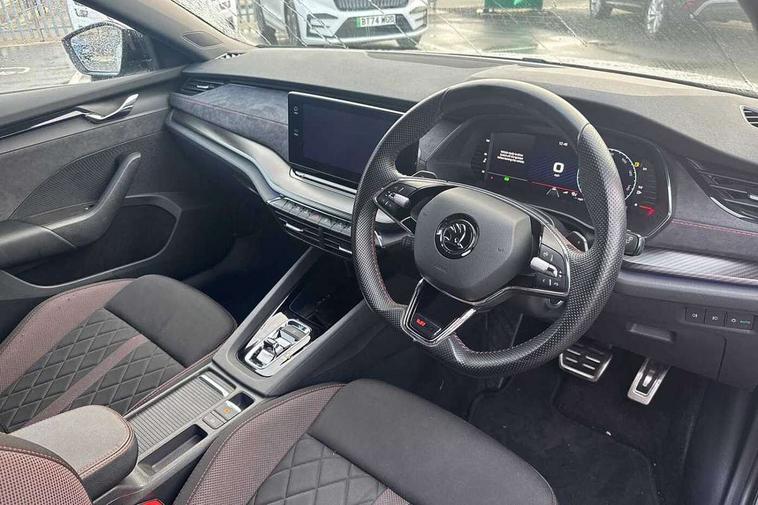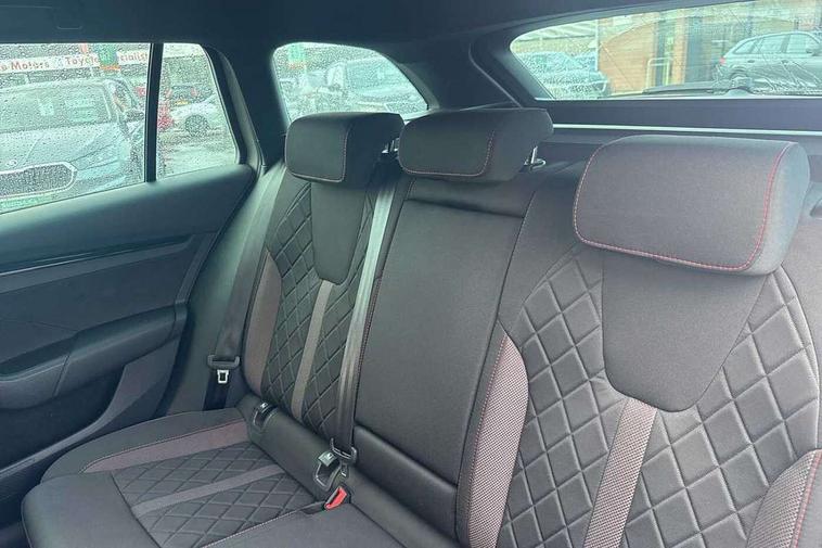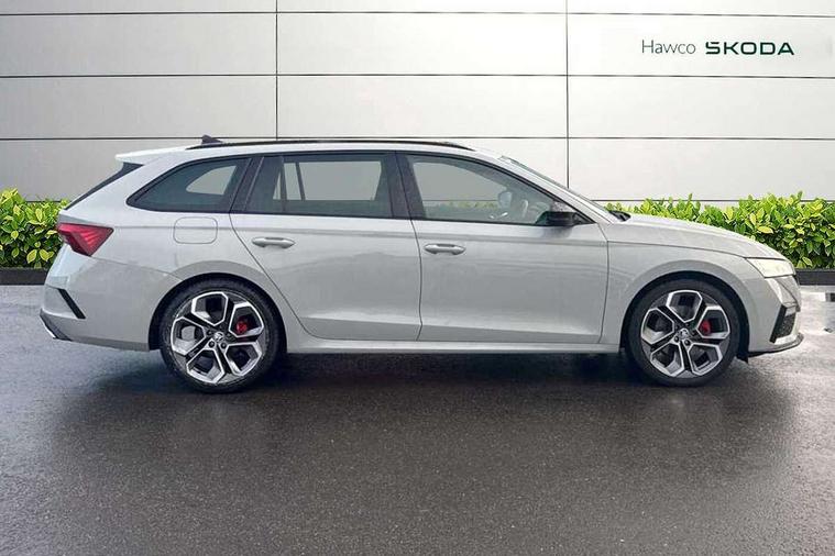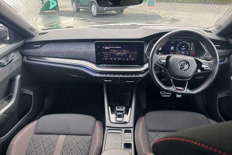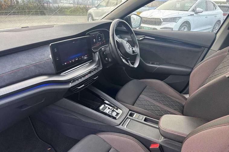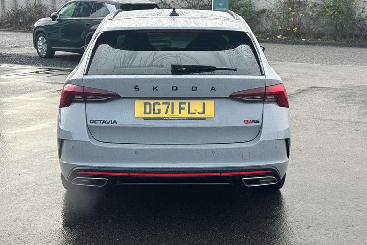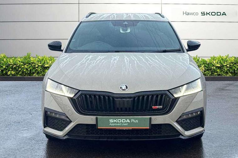 1x USB Type C port in rear view mirror (charging only), 2x USB Type C ports in rear of front centre armrest (charging only), Bluetooth system, Colour multifunction trip computer, Columbus satellite navigation with 10" touchscreen display, Front assist system, Progressive dynamic steering, Smartlink (includes android auto and mirrorlink), Speed limiter, Turn Assist, Virtual Cockpit - 10.25" digital display, Virtual pedal with electrically operated boot door, Rear LED light high functionality, dynamic indicator, power child locks, luggage compartment cover, Voice control system, Wireless SmartLink for Apple Car Play, Front and rear stabilizers, 2x USB Type C ports (for charging and data transfer), DAB Digital radio, Aero front windscreen wipers with intermittent function, Auto dimming rear view mirror, Black roof rails, Body colour door handles, Chrome exhaust tailpipes, Door sills with vRS logo, Electric adjustable/heated/folding door mirrors with driver side auto dimming, Electric front and rear windows, Exterior gloss black sports styling including front grille, side strip, window surrounds, door mirror and badging, Full LED Matrix headlights with AFS and cornering front fog lights, Headlight washers, Heated rear windscreen, High level third brake light, Ice scraper in fuel cap, LED daytime running lights, Rain and light sensors, Rear fog light on one side, Rear privacy glass, Rear spoiler, Rear window wiper, 3 rear headrests, 4 foldable roof handles, Aluminium pedals, Black headlining, Black microsuede padded dash panel with red contrast stitching, Chrome inner door handles, Front centre armrest, Front head restraints, Heated front seats, Height adjustable driver and front passenger seat with lumbar support, Illuminated air conditioned glovebox, Leather trimmed gearshift lever, Luggage compartment lighting with two side lamps, Mechanical rear seat release, Parcel shelf - rolling, Sunglasses storage, Textile floor mat set, Three spoke leather sports multifunction steering wheel with paddles, Ticket holder, Umbrella in door panel, Unsplit rear bench seat and split folding backrest, vRS sports cloth upholstery, LED interior light pack - Octavia, 3 point front/outer rear seatbelts+pre-tensioners, Alarm with interior monitoring, tilt sensor and back up horn, Automatic door unlocking in case of crash, Automatic fuel cut off in case of crash, Automatic warning lights in case of emergency braking, Curtain airbags and front side airbags, Driver and front passenger airbags, Drivers knee airbag, Electronic parking brake, Emergency call and proactive services, ESC including ABS, EBV, MSR, ASR, EDS, HBA, DSR, Front and rear disc brakes, Hill hold control, Hill start assist, ISOFIX on front passenger seat and outer rear seats, Passenger airbag deactivate switch, Red brake calipers, Two tone horn, Tyre pressure monitor, Visual and acoustic seat belt reminder, Warning reflectors in front door, Door locks with immobiliser, Keyless entry and start/stop including rear doors, Remote central locking, Carbon optic decorative inserts, Gloss black air vent surrounds, 19" Altair anthracite alloy wheels,