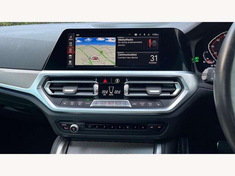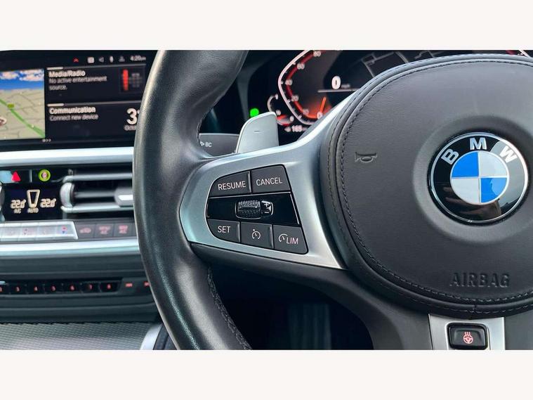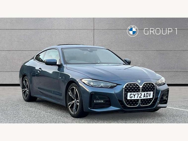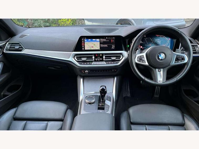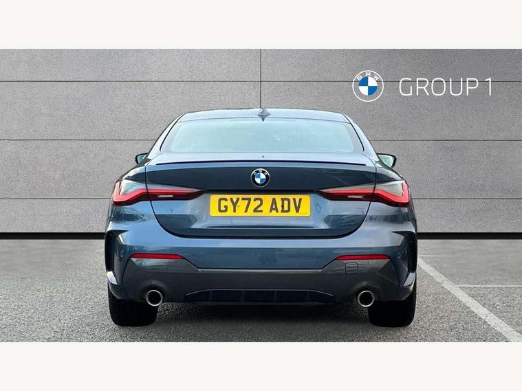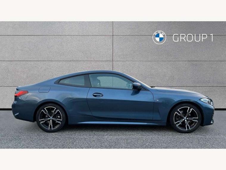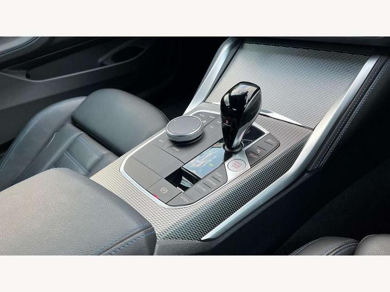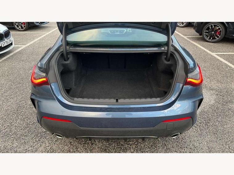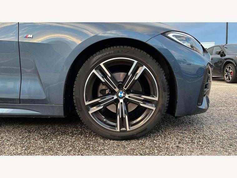 Active guard plus, Attentiveness assist, Auto start-stop, BMW ConnectedDrive online services, BMW iDrive controller on centre console, BMW Live Cockpit Professional Nav with 12.3" instrument display + 10.25" display, Intelligent Voice Assist, BMW OS 7, HDD, 2USB, 4G LTE connect, BMW service history, BMW Teleservices, Brake pad wear indicator in front and rear, Check Control warning system for monitoring of lights and door/luggage compartment open warning, Condition based service, Cruise control with speed limit function, Electric power steering with Servotronic steering optimised at all speed ranges, Gearshift time display in manual mode, Instrument cluster with speedometer with mph readout, tachometer, fuel gauge and oil temperature gauge, Integrated owners handbook, Oil sensor for level and grade, warning by check control system, On board computer - average speed, fuel consumption, outside temp display with acoustic warning, clock/date, service interval, odometer/trip meter, Optimum shift indicator, Run flat indicator, Shifting point display, Touch control functionality for BMW Live Cockpit Professional Nav, Variable sport steering, 8 speed automatic steptronic transmission with gearshift paddles, Balanced 50/50 weight distribution, Double joint spring strut front axle, Double VANOS, Drive performance control - ECO PRO, comfort and sport modes, High precision injection, Low centre of gravity, M sport suspension, Petrol Particulate Filter, Stroke dependent dampers, VALVETRONIC engine management, 2x USB Type C ports in front centre console for charging and data transfer, 2x USB Type C ports in rear centre console for charging, DAB tuner, Electronic service booklet, Acoustic glazing, Automatic headlight beam throw control with load dependent regulating reaction, dynamic compensation of braking dive and acceleration squat, Automatic windscreen wipers and automatic headlight, Automatically dimming electrochromatic rear view mirror, BMW emblem on engine compartment lid and tailgate, BMW kidney grille with mesh grille front side of the nuggets in matt aluminium and frame in chrome high gloss, Body colour fuel filler flap, Body colour roof fin, Brushed aluminium inserts in the front door sill finishers with BMW designation, Door sill strips, Dynamic brake lights, Electric windows - front and rear, with open/close fingertip control, anti trap facility and comfort closing function all round, Exterior mirrors - electrically folding with anti-dazzle, Fading support, Follow me home headlights, Front and rear bumper system, Front apron plastic in body colour, Green tinted heat protection glazing, High gloss shadow line exterior trim, Illuminated bow type door handles in body colour drivers side with door lock, Interior rear view electrochromatic mirror with automatic anti dazzle function, LED daytime running lights, LED front fog lights, LED front indicators, Licence plate panel integrated into front bumper and tailgate, Lightweight engineering, M designation on front side panels, left and right, M rear boot spoiler, Model designation on right side of tailgate, One piece front bumper cover including towing eye cover in body colour, Preparation for high beam assistant, Rear boot, Reversing light, Side frame decorative moulding black matt, Two part LED tailights in L-shape with components in smoked glass, brake light, LED turn indicator and rear fog light, Visible exhaust tailpipe finisher, Visible VIN plate, Welcome lights in interior and door handle area, Widened track and increased camber values for max transverse dynamics, agility and steering precision, Window recess cover black high gloss, Windscreen wipers with integrated heated washing jets, 12V power socket in front centre console, 2 front cupholder in centre console with clamping elements and matt black inlay, 2 Rear seat headrests, 2 seat bench in second row, 3 spoke M sport leather multifunction steering wheel, 3 zone automatic air conditioning, 4 pieces lashing eyelets in luggage compartment, 40:20:40 split folding rear seat and rear centre armrest with two cupholders, Anthracite headlining, Armrest integrated in front and rear door trim + front centre console armrest, BMW ID, Driver seat backrest width adjustment, Four grab handles integrated in roof lining, Front and rear door pockets, Front and rear reading lights, Front sport seats, Heated driver and front passenger seats, Height adjustable front headrests, Height adjustable mechanically and infinitely variable steering column, Illuminated armrest storage compartment, Illuminated glove compartment with separate small compartment, Make-up mirror lights, Single front passenger seat, Storage compartment in rear centre console, Sunvisors with illuminated vanity mirrors and ticket pocket, Toolkit located in luggage compartment, Velour front floor mats, Vernasca leather upholstery, Ambient lighting pack - 4 Series, Connected professional pack - 4 Series, M sport exterior styling pack - 4 Series, 2 x 3-point rear seatbelts, Battery safety cut-off, BMW emergency call, Brake energy regeneration, Braking pre-tensioning, Child seat ISOFIX attachment for the two outer rear seats, Coasting in idle in ECO PRO mode, Cornering brake control (CBC), Crash sensor activating of airbags, Unlocking doors, hazard warning lights, interior light, safety battery terminal, Driver and front passenger side airbags, integrated in the door side seat backrest bolsters for all seat variants, Driver/Front Passenger airbags, Dry braking, Dynamic brake control, Dynamic stability control + (DSC+) - Anti-lock Braking System (ABS) with brake assist and cornering brake control + Automatic Stability Control (ASC), Dynamic Traction Control - DTC, Electric parking brake including automatic hold function and automatic release of the parking brake when driving off, Electronic differential lock control (EDLC), Front and rear ventilated brake disc, Front passenger manual airbag deactivation, Head airbags for all 4 outer seats, Hil
