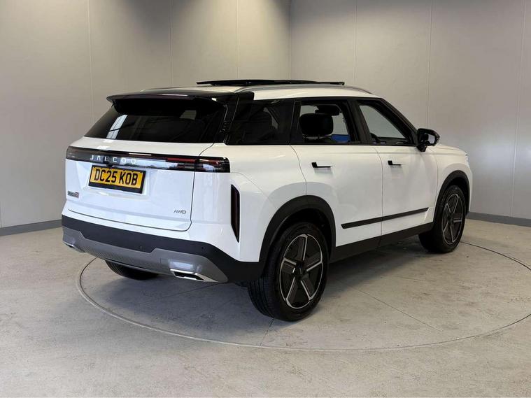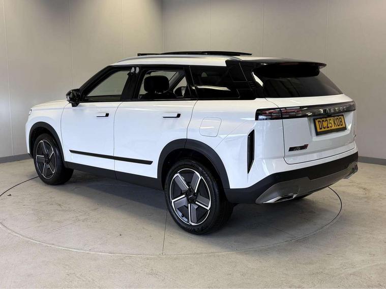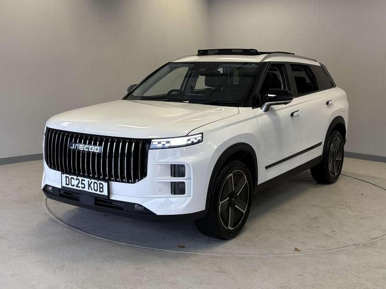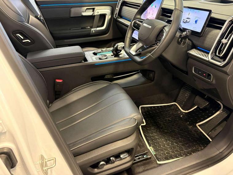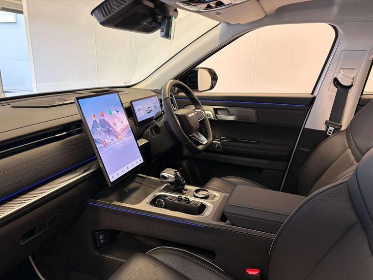 10.25" LCD instrument cluster, 14.8" portrait central LCD display, 540 degree panoramic camera with transparent chassis view, Adaptive cruise control, Blind spot detection, Bluetooth handsfree system, Corner speed control assist, DAI Forward Departure System, Driver monitoring system, Driving modes Normal/Eco/Sport/Sand, E-call safety system, Electric power steering, Emergency lane keep assist, Front and rear parking sensors, Front collision warning, Head up Display, ICA - integrated cruise assist, Integrated satellite navigation - Live traffic data with wifi hotspot, Intelligent active speed limit, Intelligent elude system, Intelligent speed assist, Lane control assist, Lane departure prevention, Lane departure warning, Multiple collision defence system, Power tailgate, Rear crossing traffic braking, Rear crossing traffic warning, Remote engine start, Remote HVAC start, Traffic jam avoidance assistant, Traffic sign recognition, Wireless Apple CarPlay/Android Auto, Wireless mobile phone charging - 50w capacity, cooled, Independent rear suspension, 2 x Front USB, 1 x Type A, 1 x Type C (fast charging), 2 x Rear USB, 1 x Type A, 1 x Type C (fast charging), DAB Digital radio, Sony 8 speaker sound system, Auto dimming rear view mirror, Auto full beam LED headlights, Auto wipers, Automatic headlights, Body colour door handles, Electrically adjustable, heated and folding door mirrors, Exterior rear view mirror and seat memory, Follow me home headlight function, Front fog lights, Full length panoramic sunroof with opening front section, Heated rear window, High level LED brake light, Integrated antenna, LED daytime running lights, LED rear lights, One touch window function for all doors, Privacy glass, Rear side wing doors, Roof rails, Silent glass - windscreen and front side windows, Single layer roof spoiler, Tinted rear windows, Windows opening via remote, 12V power outlet - Boot, 12v power outlet - front, 12V socket in luggage compartment, 3 seat bench in 2nd row, 4 way adjustable steering column, 4 way driver lumbar support, 4 way electric adjustable passenger seat, 6 way power adjustable driver seat, 60/40 split folding rear seat backrest, Cooled ventilated front seats, Driver and passenger sun visors with vanity mirror, Dual zone air conditioning with second row outlet, Front armrest with interal storage and upper storage tray, Front deluxe seats, Front headrests, Front reading light, Heated front seats, Heated outer rear seats, Heated steering wheel, Luggage compartment light, Multi function steering wheel, PM2.5 air purification system, Rear bench armrest with integrated cupholder, Rear headrests, Selectable multi colour ambient lighting, Single front passenger seat, Synthetic leather steering wheel, Synthetic leather upholstery, Welcome seats - retract to welcome driver when door opened, 2 x isofix, 3 point seatbelts on all seats, ABS/EBD, Autonomous emergency braking, BAS (Brake Assist System), Child locks, Door opening warning, Downhill assist, Dual front airbags, Electronic parking brake with auto hold, Electronic Stability Programme, Front and rear side airbags, Front centre airbag, Knee airbags, Passenger airbag manual switch off, Power limited seatbelts with pre-tensioners, height adjustable with CLT, Tyre pressure monitoring system, Uphill assist, Anti theft alarm, Automatic door locking, Engine immobiliser, Keyless start button, PEPS (passive entry and passive start) with walkaway locking, Dark colour interior, 19" Alloy wheels, Tyre repair foam,