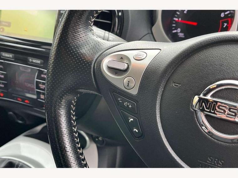 Bluetooth system, Colour rear view camera, Cruise control + speed limiter, Electric speed sensitive power steering, Nissan connect sat nav system, Push button starter, Service interval indicator, Trip computer, 6 speakers, Aux input, DAB Digital radio, Steering wheel mounted audio controls, Stereo radio/CD player and MP3 facility, USB port, 2 speed wipers+variable intermittent wipe, Automatic headlights, Body colour bumpers, Body colour door handles, Electric door mirrors, Electric folding door mirrors, Electric front/rear windows, Front fog lights, Heated door mirrors, LED daytime running lights, Privacy glass, Rain sensor, Rear wiper, 12V socket, 60/40 split folding rear seat, Artificial leather/suede upholstery, Climate control, Front armrest, Front cupholders x 2, Front door pockets with bottle holders, Front head restraints, Front seat belt pre-tensioners with load limiters, Gear shift indicator, Glovebox, Height adjustable driver's seat, Internal chrome door handles, Isofix child seat preparation, Leather steering wheel and gear knob, Luggage area under floor storage box, Map reading lamp, Passenger seat back pocket, Pollen filter, Rear headrests, Rear tonneau cover integrated into tailgate, Sports seats, Steering wheel rake adjustment, ABS + EBD + EBA, Child locks on rear doors, Driver and passenger airbags, Driver and passenger side airbags, ESP + traction control, Front and rear curtain airbags, Height adjustable front seatbelts, Passenger airbag deactivate switch, Three 3 point rear seatbelts, Tyre pressure monitoring system, VDC Dynamic Vehicle Control, Warning triangle and first aid kit, Alarm, Immobiliser, Intelligent Key, Remote central locking, 17" Sport alloy wheels, Tyre repair kit,