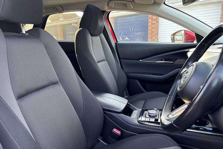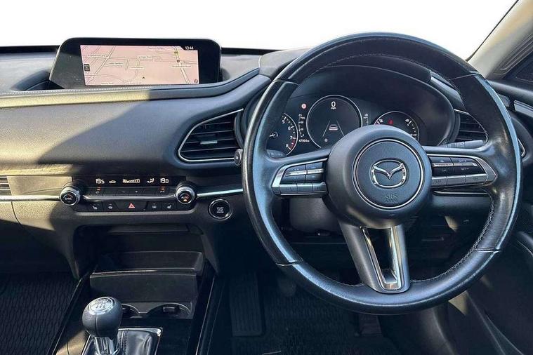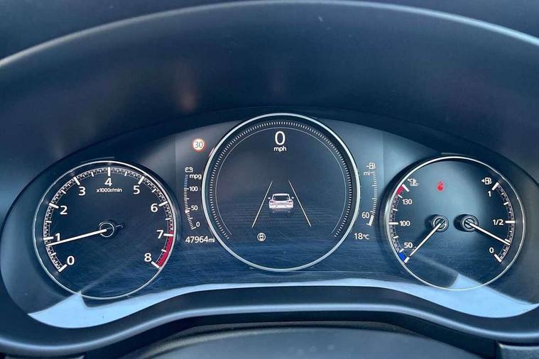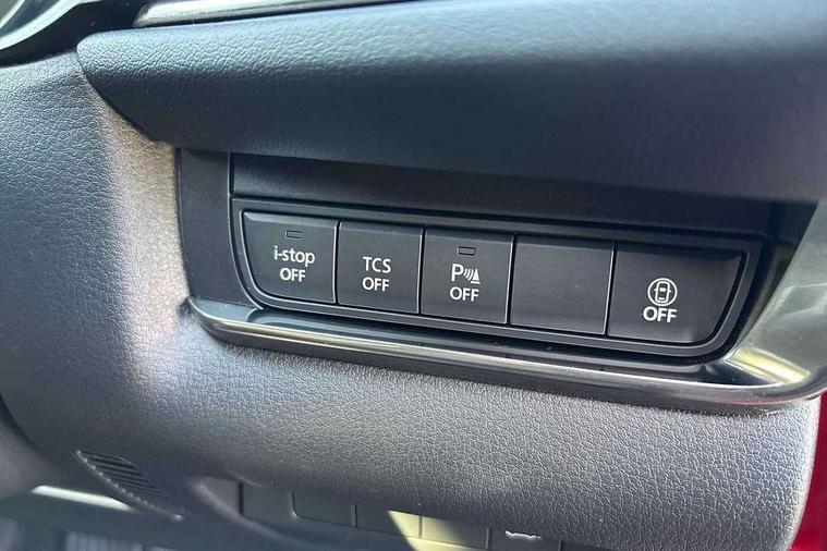7" TFT Colour driver instrument panel display, 8.8" Colour centre touch screen display with Mazda Connect infotainment, Adaptive cruise control (Mazda radar cruise control), Apple car play/Android Auto, Blind spot monitoring with rear cross traffic alert, Driver attention alert system, E-call with GPS, Emergency stop signalling system, Engine start/stop button, Front and rear parking sensors, Integrated bluetooth, Integrated Mazda navigation system, Intelligent speed assist, Lane keep assist system (LAS) with Lane departure warning system (LDWS), Mazda connected services, PAS, Power lift gate, Reversing camera, Service indicator, Traffic sign recognition, Trip computer, i-stop, 2 USB charging ports in front inner central armrest, AM / FM / DAB radio with 8 speakers, Multimedia Commander including separate volume dial, Steering wheel mounted audio/bluetooth controls, Adaptive LED Headlights, Auto dimming driver's door mirror, Auto headlight levelling, B-pillar and C-pillar garnishes in piano black finish, Body coloured, electrically adjustable, heated auto power folding door mirrors with integrated indicators, Chrome finish signature wing in front grille, Coming/leaving home lighting function, Dual chrome exhaust, Dusk sensing headlights, Electric front/rear windows with one touch auto up/down, Frameless auto dimming interior rear view mirror, Front kodo turn signal, Gloss black front grille, Gloss black rear roof spoiler, High beam assist, LED signature daytime running lights, Power tilt/slide sunroof, Privacy glass (rear side windows and rear screen), Rain sensing front wipers with adjustable speed and intermittent wipe, Rear fog lights, Rear side wing doors, Rear wiper, Signature LED rear combination lights, Third brake light, 12V power outlet in centre console, 3 seat bench in 2nd row, 60/40 split fold down rear seats, Chrome horn pad ring, Chrome interior trim accents with steering wheel centre bezel, surround of engine start / stop button and glove box handle, Cloth upholstery with interior accents, Dark cloth door panel inserts, Dashboard, door cards and front centre armrest in black cloth, Driver and front passenger visors with covered vanity mirror and driver ticket holder, Driver seat manual slide, recline, height and seat tilt adjust, Driver, front passenger and two rear door storage, Driver, Front passenger and two rear grab handles with coathooks, Dual zone climate control air conditioning with rear air vents, Folding rear centre armrest with two cup holders, Front and rear (x3) head restraints, Front and rear LED lighting, Front armrest, Front centre storage with two cupholders with lid, Front passenger seatback pockets, Front passengers seat manual slide, recline and height adjustment, Gear shift indicator, Glovebox illumination, Heated front seats with 3 stage setting, ISOFIX child seat anchorage points attached on outer rear seats, Leather wrapped gear shift knob, Leather wrapped steering wheel with telescopic and tilt adjustment, LED luggage compartment lighting, Light roof headlining and pillars, Roof mounted sunglasses holder, Single front passenger seat, 3 point ELR front seat belts x2 with pretensioners, 3 point ELR rear seat belts, Anti-lock braking system (ABS), Drivers knee airbag, DSC - Dynamic Stability Control, Electronic parking brake with auto disengage function and auto hold function, Front and rear curtain airbags, Front dual stage driver and single stage front passenger airbags, Front passenger airbag cut-off switch, Front side airbags, Front smart city brake support, G-Vectoring control plus, Hill launch assist, Manual child lock in rear doors, Mild Hybrid system with regenerative braking, Seatbelt reminder for driver/front passenger and rear seats, Traction control system (TCS), Tyre pressure monitoring system (TPMS), Remote central locking with deadlocking and automatic door lock when driving, Smart keyless entry, Thatcham accredited alarm and immobiliser, 18" Bright alloy wheels, Emergency tyre repair kit,