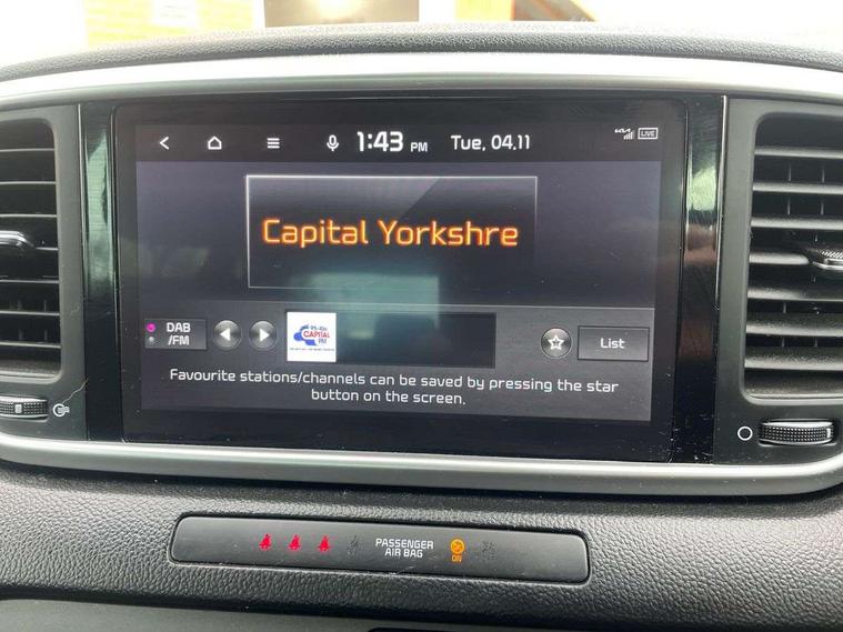 3.5" supervision cluster display, 8" touchscreen satellite navigation with European mapping and traffic messaging channel, Android auto with voice control, Apple car play with voice control, Cruise control + speed limiter, Driver attention warning, Emergency stop signalling system, Kia connected services featuring TomTom live, Lane keep assist, Rear parking sensor, Reversing camera, Speed limit information, Speed sensitive power steering, Telematics system with UVO connect services, Trip computer, Windscreen washer level indicator, Intelligent Stop and Go, 6 speaker audio system, Bluetooth audio streaming, DAB Radio with MP3, Rear USB port, Steering wheel mounted audio controls, USB/iPod/auxiliary input connections, All round electric windows with drivers auto up/down function, Auto dimming rear view mirror, Automatic lighting control, Automatic window defogger, Bi-Function halogen headlights, Black side sill and wheel arch body mouldings, Body colour door handles with chrome inserts, Body colour door mirrors, Chrome front bumper insert, Chrome grille surround, Chrome window surround, Electrically adjustable/heated/folding door mirrors with LED indicators, High beam assist, High gloss black diamond mesh radiator grille, LED daytime running lights, Privacy glass - Rear windows and tailgate, Projection front fog lights with matt black surround, Rain sensing front wipers, Rear spoiler, Rear wiper, Roof rails, Shark fin antenna, Tinted glass, Trailer stability assist, Welcome and follow-me home light functionality, Wide view drivers door mirror, 12V power in front and rear centre console, 3 x passenger assist grips, 60/40 split folding rear seat, Air filter, All-round height adjustable headrests, Centre cabin light, Centre console storage box, Driver and front passenger side sunvisors with illuminated vanity mirrors, Driver's seat manual height adjust, Drivers seat power lumbar support, Dual zone automatic air conditioning, Front and rear door storage, Front cabin LED map light with sunglasses case, Front door courtesy reflectors, Front seat and rear pockets, Front/rear centre armrests, Gear shift indicator, Glovebox illumination, Heated front and outer rear seats, Ignition key lock illumination, Interior door lock/unlock function, ISOFIX Child seat top tethers and anchor fixings, Leather steering wheel, Leather trimmed door armrests, Leather trimmed gearshift, Light grey headlining, Luggage area light, Luggage area load cover, Luggage net with hooks, Premium cloth upholstery, Rear centre armrest with cupholder, Rear coat hooks, Satin chrome interior door handles, Tilt/telescopic adjustable steering wheel, Ventilation ducts to rear compartment, Active front headrests, All round 3-point seatbelts, Anti-lock braking system with electronic brakeforce distribution, Dual front side airbags, Electronic stability control with downhill brake control, Front passenger airbag cut-off switch, Front seatbelt pretensioners + load limiters, Height adjustable front seatbelts, Hill start assist control (HAC), Impact sensing auto door unlocking, Rear door child safety locks, Traction control, Twin curtain airbags with roll over sensor, Twin front airbags, Tyre pressure monitoring system, Advanced anti-theft system including immobiliser and alarm, Door deadlocks, Locking wheel nuts, Remote central door locking with fold away key, Speed sensitive auto door locking, Visible vehicle identification number, Metallic finish centre fascia, 17" Alloy wheels, Tyre mobility kit,