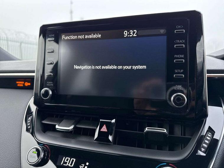 7" Multi information display screen, Bluetooth telephone connectivity, Connected car functionality upgrade, tracker, remote status and e-care, Dynamic radar cruise control (with RSA) including switch on steering wheel, E-call, Electrically assisted power steering, EV drive indicator, Lane Departure Alert (LDA) switch on steering wheel, Memory on adjustable speed limiter, Push button start, Reversing camera, Smartphone integration with Apple CarPlay and Android auto, Gasoline particulate filter, Vehicle Stability Control (VSC), 6 speakers, 8" Touchscreen with MM19 Multimedia system and voice recognition, AM/FM radio, DAB Digital radio, USB and Aux in connectors + 12V front outlet, USB charging port in centre storage box, Aluminium roof rails, Anti-jam protection on power windows, Auto up and down function on all power windows, Automatic headlights with high beam assist, Black metallic surround on lower front grille, Black toyota logo in front, Body colour rear spoiler, Body coloured bumpers, Body coloured door mirrors, Body coloured outside door handles, Follow me home headlights, LED daytime running lights, LED front fog lights, LED Headlights, LED High mounted stop light, Manual day/night rear view mirror, Noise reduction layer on front windows, Power adjustable heated door mirrors, Power front windows, Power rear windows, Rear window defogger, Rear window wiper, Shark fin antenna, Time adjustment on intermittent wiper, Turning signal integrated indicators in door mirrors, Unique lower skirt, Unique side rocker with black insert, UV-filter on driver and passenger windows, 12v power outlet - luggage side, 3 rear headrests, 3 spoke leather steering wheel + gear knob, 60/40 split folding rear seat, Adjustable speed limiter switch on steering wheel, Audio, multimedia and telephone switches on steering wheel, Boot light, Boot underfloor storage, Clean air filter, Driver and front passenger personal light, Driver and passenger assist grip, Driver and passenger sun visor with mirror and light, Dual sided deck board in boot, Dual zone automatic air conditioning with ECO mode switch, Fabric armrests, Front and rear cup and bottle holders, Front and rear door pockets, Front head restraints, Heated driver and front passenger seats, Illuminated entry system in room lamp, ISOFIX seat fixing (2 fixings on rear outer seats), Leather gear shift with satin chrome on gear shift console, Manual height adjustable for driver and front passenger seat, Passenger seat back pocket, Pollen filter, Power adjustable lumbar support on driver seat, Power window switches with satin chrome inserts, Quilted fabric upholstery with grey stitches seats, Rear armrest with 2 cupholders, Rear passenger air vents, Rear passenger coat hooks (2), Rear passenger personal lights, Retractable tonneau cover with luggage partition net, Satin chrome inside door handles, Shopping bag hooks in luggage compartment, Side storage in boot, Sliding armrest on centre console box, Slow opening glovebox with lights, Tilt/telescopic steering column, Tonneau cover with under floor storage, Voice recognition switch on steering wheel, Whiplash Injury Lessening (WIL) feature (active headrest) for seats, Toyota safety sense 2 pack - Corolla, 3x3 point rear seatbelts, Adjustable driver and front passenger seat belt extender to top anchor point, Anti lock braking system + Electronic brake force distribution, Brake assist function, Downhill Assist Control (DAC), Electronic parking brake, Emergency brake light signal (EBS), Front passenger airbag on/off switch, Front seatbelt reminder, HAC - Hill start assist control, Rear seat belt reminder, Seatbelt pretensioners and force limiters, Supplemental restraint system (SRS) 7 airbags - dual driver, dual side curtain, side impact and driver knee airbags, Traction control, Tyre pressure warning system, Acoustic vehicle alert system (AVAS), Alarm with motion sensor and immobilizer, Remote central locking + deadlocks, Satin chrome dash trim, Soft touch texture on upper dashboard, Stitching on lower dashboard, Space saver spare wheel, Unique wheel finish with red wheel cap,