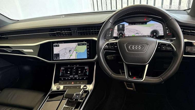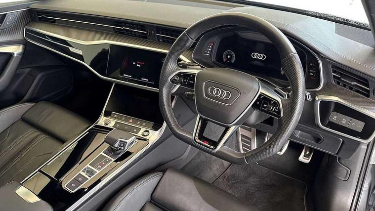 7" high resolution colour driver information display system, Audi connect safety and service (e-call), Audi connect with Amazon Alexa Integration, Audi drive select, Audi parking system plus - acoustic and visual park assist system for front and rear, Automatic start/stop system with coasting functionality, Bluetooth interface, Lane departure warning system, Power operated tailgate, Progressive steering, Rear view camera, Service interval indicator, Smartphone interface includes wireless Apple carplay/Android Auto, Voice control system, 12V Mild hybrid, Quattro on demand, Sports suspension, Audi front music interface, Audi sound system, Auxiliary input socket, DAB Digital radio, USB connection, All weather LED headlights, Black roof rails, Electric front/rear windows, Frameless auto dimming interior rear view mirror, Front intermittent wipers, Gloss black highlights on the exterior area of the Audi Single frame, Gloss black highlights on the front and rear bumpers, Gloss black highlights on the radiator grille, Gloss black highlights on the side windows trim strips, Headlight washers, Heat insulating darkened glass in side and rear windows, Heat insulating glass in windshield, LED rear lights, LED signature front daytime running light, LED third brake light, Matt black rear diffuser with diffuser strip and tailpipes in chrome, Matt black side air intake grille with inlay in matt aluminium, Privacy glass, Rain and light sensors, Rear roof spoiler, Rear side wing doors, Rear wiper, 2 zone deluxe electronic climate control, 4 way electric lumbar support for driver and front passenger, 40/20/40 split folding 3 rear seat bench in 3 parts with rear centre armrest, Black cloth headlining, Black front and rear carpet floor mat, Black steering wheel insert, Electrically adjustable front seats with driver memory, Front centre armrest, Front head restraints, Heated front seats, Height/reach adjust steering wheel, Illuminated door sill trims with S logo, Illuminated sun visors with vanity mirrors, ISOFIX child seat mounting and Top Tether with front passenger airbag deactivation, Leather gear knob, Luggage compartment system, Rear headrests, Single front passenger seat, Stainless steel pedals and foot rest, LED Interior Ambient Lighting Pack - A6, Non smoking pack - A6, Technology pack - A6, 3 point seatbelts on all seats, Airbags - Front side, front and rear including head, Audi pre-sense front, Black seatbelts, EBD - Electronic brakeforce distribution, Electromechanical parking brake, Electronic Stability Control (ESC) including ABS, ASR and EDL, Extended pedestrian protection measures, Manual child proof rear door locks, Seatbelt monitoring, Tyre pressure warning light, Warning triangle and first aid kit, Anti theft alarm with tow away protection, Anti-theft wheel bolts and wheel loosening detection, Immobiliser, Keyless Go, Remote central locking, Carbon twill inlays, 20" 5 V spoke star design Audi sport cast aluminium alloy wheels in matt titanium look,