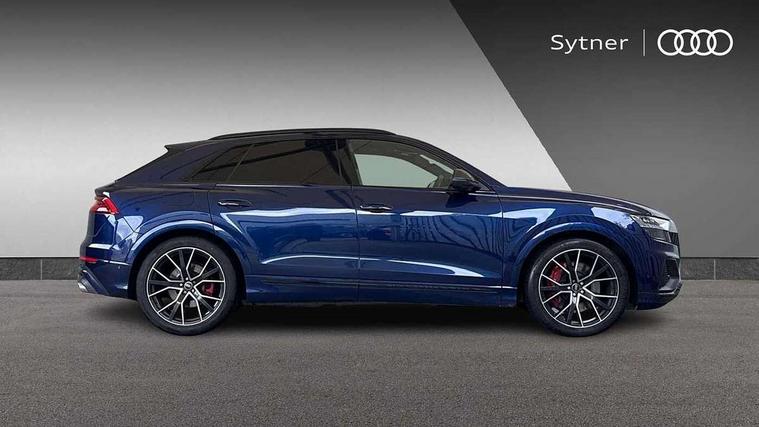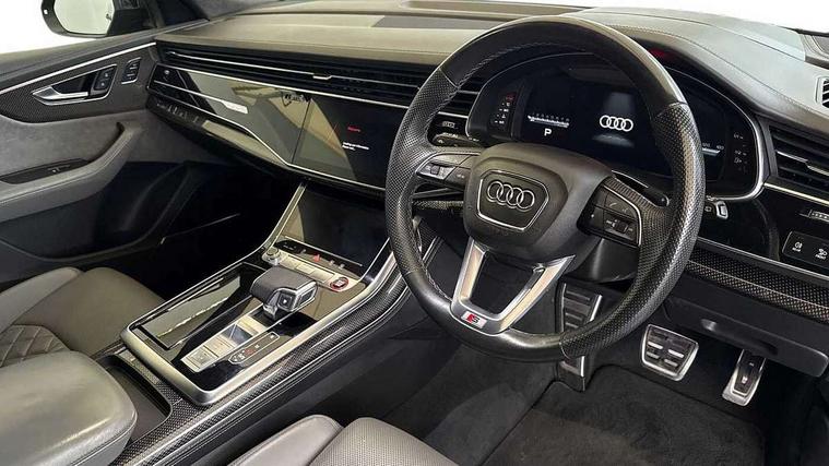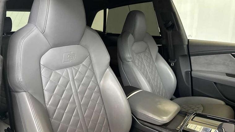 10.1" and 8.6" Dual colour touchscreens, 2 USB ports with charge and data functions in the rear, All wheel steering, Audi connect safety and service (e-call), Audi connect with Amazon Alexa Integration, Audi drive select, Audi virtual cockpit - 12.3" high resolution LCD display with fully customisable instrument cluster, Automatic start/stop system, Electro-mechanical PAS, Head up Display, Low washer fluid indicator, MMI - Multi Media Interface control system, MMI navigation plus with MMI touch, Natural voice recognition, On board computer, Operating buttons in black, glass look with haptic feedback, Power door closure, Power operated tailgate, Service interval indicator, Smartphone interface includes wireless Apple carplay/Android Auto, 48V Mild hybrid technology, 85 litre fuel tank, Electromechanical active roll stabilisation, Quattro sports differential, S specific Adaptive air suspension, Audi music interface with 2 USB ports with charge and data functions, Aux-in socket, DAB Digital radio, 3rd brake light, Acoustic windscreen, Adaptive windscreen wipers with integrated washer jets, Audi Beam uses LEDs to project Vorsprung logo, Audi HD Matrix LED headlights with dynamic front and rear indicators, Auto dimming frameless rear view mirror, Body coloured bumpers, Coming/leaving home lighting function, Electric front+rear windows, Electric panoramic glass sunroof, Electrically folding auto dimming/adjustable/heated door mirrors with memory function, LED side indicators and kerb view function for passenger side, Gloss black finish for exterior Audi rings and SQ8 logo, Headlight washers, Heat insulating glass in windshield, LED signature daytime running lights, Platinum grey front spoiler lip and diffuser insert, Privacy glass - dark tinted rear and rear side windows from B-pillar backwards, Rain and light sensors, Rear side wing doors, Rear wiper, S specific dual brach chrome tailpipes on both the left and right, S specific front and rear bumpers, S specific side skirts in matt selenite silver, Side air inlet grilles in matt titanium black, Trim and underbody protection in matt selenite silver, 3 bench rear seats in 2nd row, 3 spoke heated leather multi-function steering wheel including paddle shift, 4 zone deluxe automatic climate control, 4-way lumbar support for front seats, 40:20:40 split folding rear bench seat, Black dinamica headlining, Comfort front centre armrest, Double sun visor with illuminated vanity mirror on driver and passenger side extendable, Driver and front passenger seat memory function for electrically adjustable front seats, Electric sunblind for the rear side windows and manual sunblind for the rear window, Front head restraints, Front/rear floor mats, Heated front and outer rear seats, Illuminated door sill trims, ISOFIX child seat mounting for front passenger seat and 2 outer rear seats with top tether child seat mounting for all 3 rear seats, Luggage compartment sill protection in stainless steel, Massage and ventilation function for front seats, Rear centre armrest with 2 cupholders, Rear headrests, Single front passenger seat, Stainless steel pedals, Valcona leather upholstery + super sports seats with S embossed logo, City assist pack - Q8, Comfort and sound pack - SQ8, Extended leather pack - Q8, Titanium Black Styling Pack - Q8, Tour pack - Q8, 3 point seatbelts on all seats, Audi pre sense front, Child locks on rear doors, Driver and front passenger, front side and curtain airbags, Electromechanical parking brake, Electronic Stability Control (ESC) including ABS, ASR and EDL, Front passenger airbag deactivation, Hill descent control, Hill hold assist, Predictive pedestrian protection, Seatbelt monitoring, Traction control, Tyre pressure loss indicator, Warning triangle and first aid kit, Anti theft alarm with tow away protection, Anti-theft wheel bolts and wheel loosening detection, Immobiliser, Keyless go with remote central locking, Carbon vector inlays, 22" x 10J 5 V spoke star design alloy wheels in gloss anthracite black, Tool kit, Tyre repair kit,
