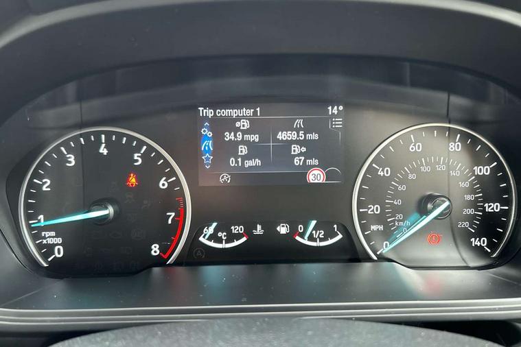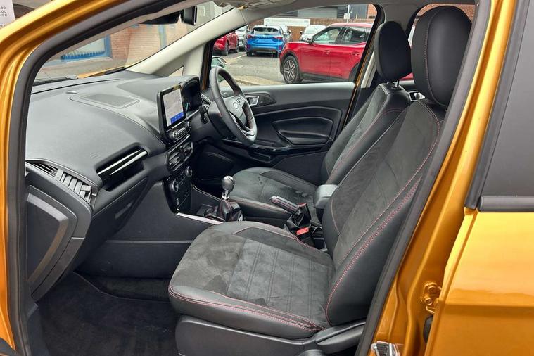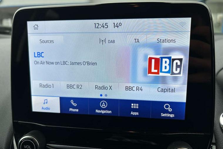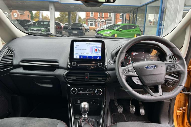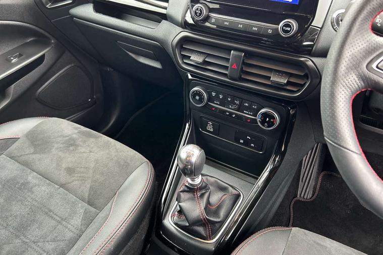 Cruise control, e-Call (emergency call), Easy fuel capless refuelling system, Ford SYNC 3 nav system with DAB radio, 8" screen, emergency assistance, Apple car play/Android auto, 2x USB, 6 speakers, Ford pass connect, Intelligent speed limiter, PAS, Rear parking sensors, Rear view camera, Traffic sign recognition, Trip computer, Sports suspension, Steering wheel mounted audio controls, Auto dimming rear view mirror, Automatic front wipers, Automatic headlights, Black roof rails, Body colour door handles, Body coloured bumpers, Chrome lower window surround, Electrically adjustable and heated door mirrors, Front fog lights, Front grille bars and surround in black, Headlight levelling control, Large rear spoiler, LED day running lights, LED third brake light, Power front and rear windows, Puddle lights, Quickclear' heated windscreen, Rear side wing doors, Rear wiper, ST Line body styling kit - Black headlamp bezel, front and rear sport bumpers, body colour lower door claddings, 12V socket in front and rear, 3 seat bench in 2nd row, 60/40 split rear seats, Ambient lighting, Centre console with sliding front armrest, Cooled glovebox, Courtesy lights with map reading light, Driver seat height/lumbar adjust, Driver's side glovebox, Driver/passenger sunvisors and lidded vanity mirrors, EATC - Electronic Auto Temperature control, Folding grab handles, Front head restraints, Front seat back map pockets, Illuminated glovebox, Illuminated luggage compartment, Isofix system on outer rear seats, Luggage compartment carpet, Neosuede/Partial sensico leather upholstery, Overhead console with sunglasses holder, Rake adjustable rear seats, Reach + rake adjustable steering column, Rear headrests, Sensico trimmed steering wheel, handbrake and gearshift gaiter with red stitching, Single front passenger seat, ST-Line Front floor mats with red stitching, Stainless steel sports pedals, Storage drawers under front seats, Tie down hooks, Variable boot floor, 3x3 point rear seatbelts, ABS, Autonomous emergency braking, Child locks on rear doors, Curtain airbags, Driver airbag, Drivers knee airbag, Electronic Stability Programme with hill launch assist, Front passenger airbag deactivation, Front side airbags, Passenger airbag, Pre collision assist system with AEB, Seatbelt reminder for driver and front passenger, Traction control, Tyre pressure monitoring system, Immobiliser, MyKey system, Remote central locking, Thatcham 1 volume sensing alarm, Low rolling resistance tyres, Tyre inflation kit,