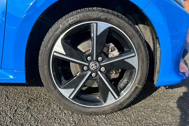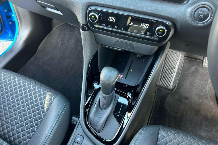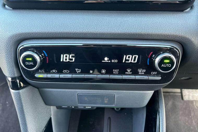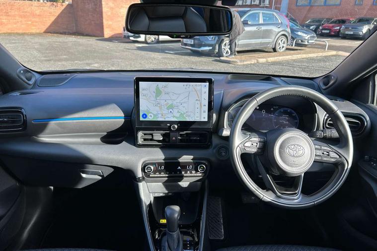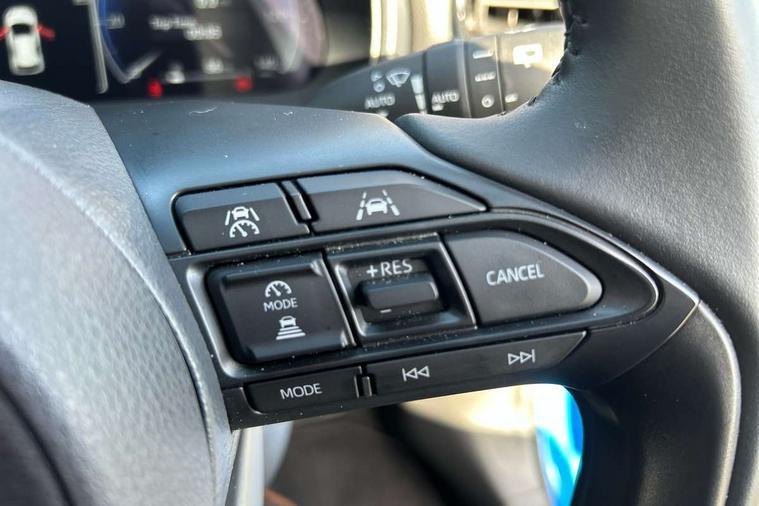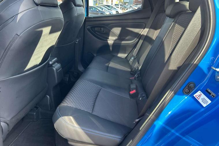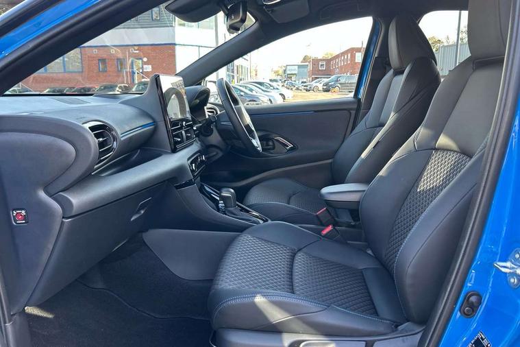 12.3" Digital Combimeter, Adaptive cruise control, Adjustable speed limit with speed warning, Bluetooth connectivity, Colour binocular inspired displays with digital speedometer, E-call, Electric power steering, Head up Display, Hybrid energy display, Multi information display switches on steering wheel, Reversing camera, Tailgate, Voice recognition, Wireless charger, Vehicle Stability Control (VSC), 10.5" Toyota smart connect multimedia with wireless smartphone integration incl apple car play and cloud Navigation, 6 speakers, 8 Speakers, JBL speaker system, Toyota Touch 3 system with DAB radio, USB connection, Acoustic windscreen glass, Auto windscreen wipers, Automatic headlights, Body coloured door mirrors, Dark chrome lower front grille, Electric adjustable heated door mirrors, Follow me home headlights, Front auto power windows with anti jam protection, Full LED rear lights, LED daytime running lights, LED front fog lights, LED front light guide, LED Headlights, LED High mounted stop lamp, LED Indicators, LED rear light guide, Manual headlight levelling, Painted chequered front grille with hot stamp in mesh design, Rain sensor, Rear auto power windows with anti jam protection, Rear privacy glass, Rear side wing doors, Rear spoiler, Rear wiper, Shark fin antenna, Turning signal integrated indicators in door mirrors, Variable front intermittent wipers, 3 adjustable rear headrests, 3 seat bench in 2nd row, 3 spoke leather steering wheel, 60/40 split folding rear seat, Active headrests, Adjustable boot height, Black roof lining, Coat hooks in rear grab handles, Cup holders (2 front & door), Data Communication Module (DCM) connected services, Dual zone automatic air conditioning, Front armrest, Front sport seats, Glovebox, Height adjustable driver's seat, Height adjustable passenger seat, Isofix seat fixing, Leather gearshift, Map pockets on the backs of the front seats, Nanoe-X air purifier, Partial leather upholstery, Pollen filter, Shopping bag hooks, Single front passenger seat, Tilt/telescopic steering column, Safety pack - Yaris, 3 point seatbelts on all rear seats, ABS+EBD+Brake assist, Electronic parking brake, Emergency brake light system (EBS), Front passenger airbag on/off switch, Front seatbelt reminder, Hill start assist control (HAC), Rear child proof door locks, Rear seat belt reminder, Supplemental Restraint System (SRS) 8 airbags: Driver & passenger's airbags, dual side curtain airbags, side impact airbags, front centre airbag, Toyota Safety Sense 3 with over the air updates, Tyre pressure warning system, 2x Master key, Alarm/immobiliser, Keyless smart entry with push button start, Remote AC via MyT, Remote locking via MyT, Remote powered central double locking doors, Smart digital key, Piano black interior trim, Soft touch instrument panel, 17" Black Machined-face, 5 double spoke alloys wheels, Space saver spare wheel,