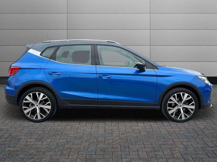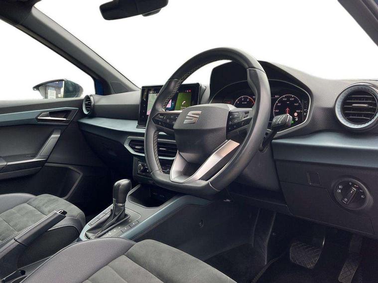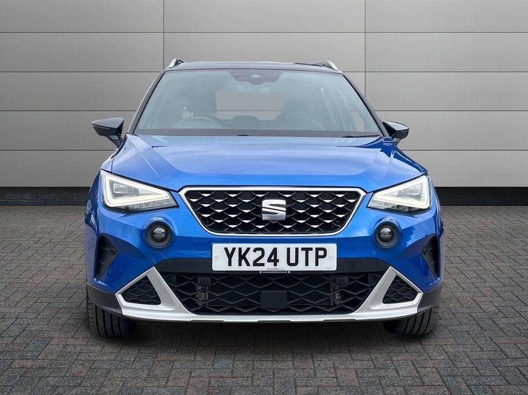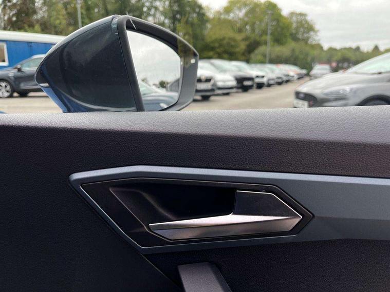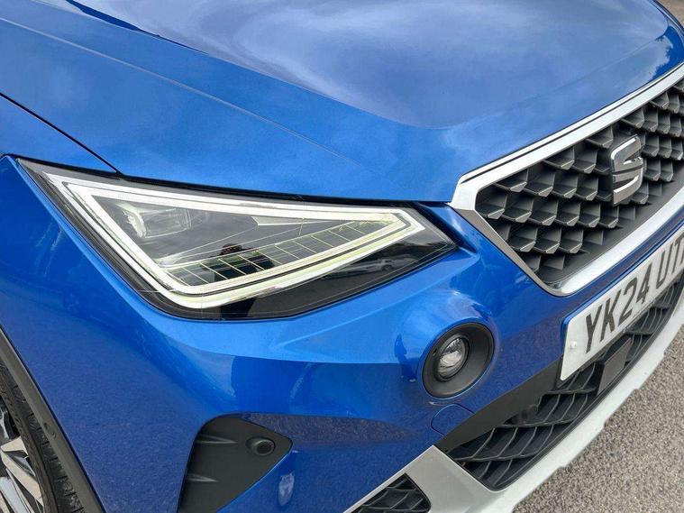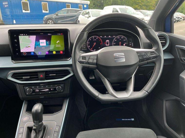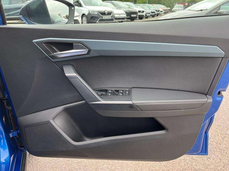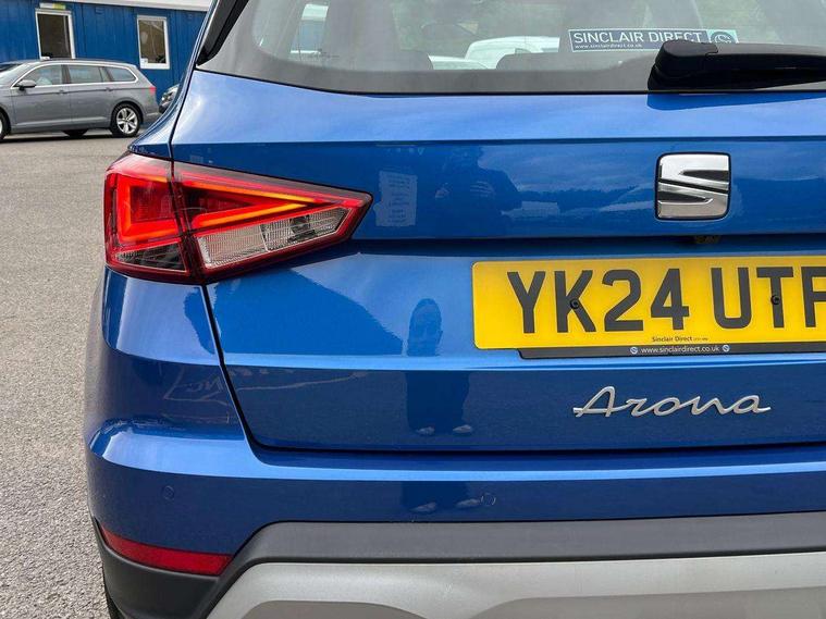 'Lights On' Reminder warning buzzer, 10" Digital cockpit, Digital clock, E-call, Electric speed sensitive power steering, Front parking sensor, Full Link Smartphone Integration with Mirror Link, Apple Car Play, Google Android Auto with USB Type C cable for Apple and Android compatibility, Lane keeping system, Low fuel warning light, Outside temperature display, Park assist system, Rear parking sensor, Rear view camera, RPM counter, Seat connect with safety, service, remote and online, Trip computer, Wireless phone charger, 9.2" colour touchscreen with navigation system, voice control and USB port (type c), Bluetooth interface for hands free and audio streaming, DAB digital radio and AM/FM radio, Steering wheel mounted audio controls, Anti theft roof antenna, Auto dimming interior rear view mirror, Automatic activation of hazard warning lights, Body coloured bumpers, Body coloured door handle inserts, Chrome roof rails and window surrounds, Electric front/rear windows, Electrically adjustable, heated and folding door mirrors, Front fog lights with cornering function and rear fog light, FULL LED automatic headlights with dynamic headlight range control, coming and leaving home, LED daytime running lights, Hidden exhaust pipe, LED rear tail lights and licence plate lights, Protective side mouldings, Rain sensing wipers, Rear side wing doors, Rear spoiler, Rear window wash/wipe, Roof colour door mirrors, Third brake light, Visible VIN plate, Windshield wiper with intermittent control and potentiometer, 2 cupholders, 3 seat bench in 2nd row, 60/40 split folding rear seat, Aircare filter, Black interior roof, Double boot floor, Driver sunvisor with covered mirror + card holder, Dual zone climate control, Flat bottomed leather steering wheel/gear knob/handbrake, Front comfort seats, Front courtesy light with front reading lights, Front seat back storage pockets, Gear shift indicator, Heated front seats, Height adjustable front seats, Height/reach adjustable steering column, Illuminated boot, Instrument lighting with brightness control, Interior ambient lighting, Interior light in footwell, central console and door panel, ISOFIX points in outer rear seats with top tether anchorage points, Leather steering wheel/gear knob/handbrake, Microsuede cloth upholstery, Passenger sunvisor with vanity mirror, Single front passenger seat, Storage net on centre console, Two front and three rear height adjustable headrests, Interior chrome pack - Arona, Safety and driving pack (M) - Arona, Storage pack - Arona, 3 point seatbelts on all rear seats, ABS, Active front headrests, Child locks on rear doors, Driver and front passenger airbags with front passenger airbag de activation, front side and curtain airbags, Electronic stability control, Emergency Brake Assist (EBA) and front assist, Front and rear seatbelt reminder, Hill hold control, Multi-Collision braking, Tiredness recognition system, Traction control, Tyre pressure monitoring system, Alarm with back-up horn, Electronic engine immobiliser, KESSY Keyless entry and go, Locking wheel bolts, Remote central locking + deadlocks, Tow away protection, Titan black dashboard, 18" Performance Nuclear grey alloy wheels,