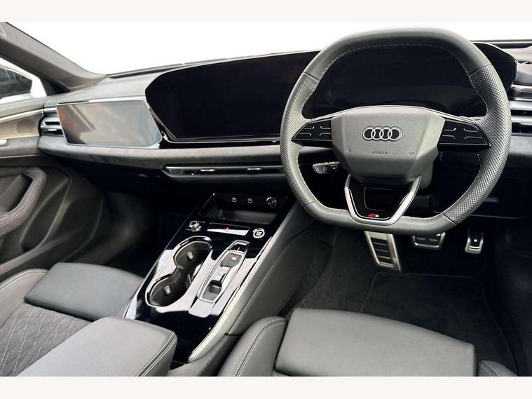 Adaptive cruise control, Advanced driver attention and fatigue montior, Audi application store, Audi assistant, Audi connect emergency call and service, Audi drive select, Audi smartphone interface, Audi virtual cockpit plus with 11.9" OLED colour display, Automatic start/stop system with coasting functionality, Camera based traffic sign recognition, Intersection assist, Lane change assistant with exit warning system, rear cross traffic alert and rear turn assist, Lane departure warning with emergency assist, MMI 10.9" front passenger touch display, MMI navigation plus with high resolution 14.5" OLED touchscreen colour display, Park assist plus, Parking system plus with 360 display, Progressive steering with servotronic, Swerve assist and turn assist, Top view camera, Traffic sign based speed limiter, Sports suspension lowered by 20mm, 2 USB-C ports in both the front and rear, Audi sound system impressive sound with 10 loudspeakers including centre speaker and subwoofer, 6-channel amplifier with a total output of 180 watts, DAB digital radio reception, Smartphone compartment with wireless charging, Aluminium window trims, Auto dimming rear view mirror, Black door handles, Dark chrome-plated tailpipe trims, Door mirrors - electrically adjustable, heated, folding and auto dimming on both sides, Front and rear electric windows, Front door sill trims with aluminium inlays, illuminated with 'S' logo, Headlight cleaning system, High beam assist, LED daytime running lights, LED rear lights pro incl. dynamic rear indicators and illuminated light strip with animated coming and leaving home function, LED third brake light, Matrix LED headlights with eight light signatures selectable via the MMI or the myAudi app, Privacy glass, Rear and side windows with heat insulating glass, Rear boot, Rear side wing doors, S Line badges on the front wings, S line bumpers, radiator grille and diffuser in phantom black and diffuser insert in matt anthracite, White rhombus logo projection light in exterior mirrors, Windscreen with acoustic glazing, 3 rear headrests, 3 seat rear bench, 3 spoke leather steering wheel with multi-function buttons with touch control, flattened on top and bottom, with S badging and contrast stitching, 3-zone automatic climate control, 40:20:40 split folding rear seat bench with centre armrest and cup holders, Comfort front centre armrest, Electrically adjustable front seats, Front and rear floor mats, Front sport seats with integrated headrest and S embossed logo, Headlining in black cloth, Heated front seats, i-Size child seat mounting on the front passenger side and outer rear seats, i-Size and top tether on the outer rear seats, Luggage compartment lid, electrically opening and closing, Manual steering column height and depth adjustment, Memory function for driver seat, Single front passenger seat, Stainless steel pedals and footrest, Steering wheel grips in perforated leather and shift paddles, Ambient lighting package plus - A5, Black styling package plus - A5, 3x3 point rear seat belts, Acoustic vehicle alerting system, Convenience key with safelock, Driver airbag, Electric child safety locks, First aid kit with warning triangle and vests, Front emergency brake assist, Front passenger airbag, Front passenger airbag deactivation, Hill hold assist, Occupant detection in rear seat area, Proactive passenger protection system for front, sides and rear, Red brake calipers, Seat belt monitoring with rear seat occupant reminder, Side airbags in front and rear with head airbag system and front interaction airbag, Tyre pressure loss indicator, Anti theft alarm, Anti-theft wheel bolts, Keyless Go, Accent surfaces and control buttons in gloss black, Black dashboard with contrast stitching, Softwrap in Dinamica with contrast stitching, Upper and lower interior elements in dinamica microfiber, 20" 5 arm fold design Audi sport alloy wheels in silk matt grey and gloss turned finish, Tyre repair kit,
