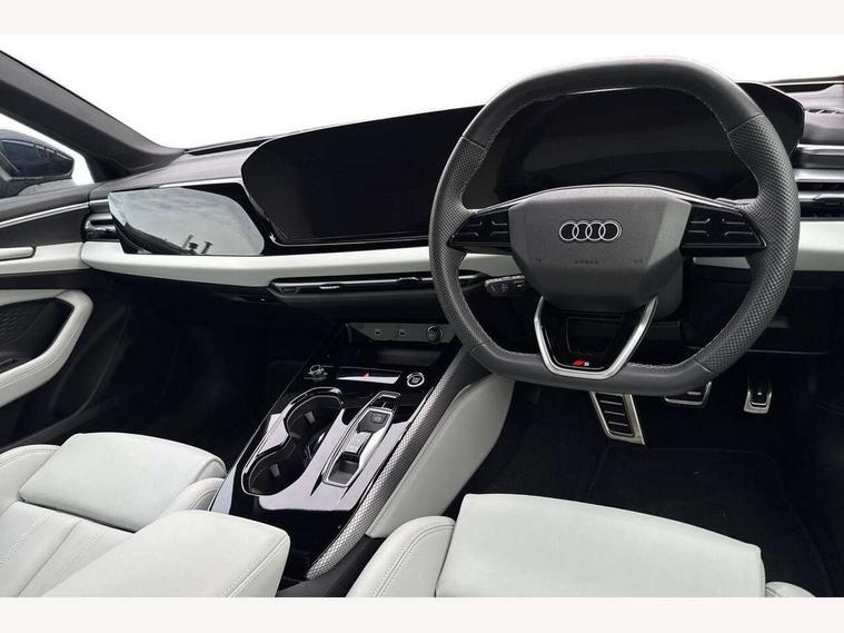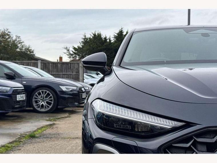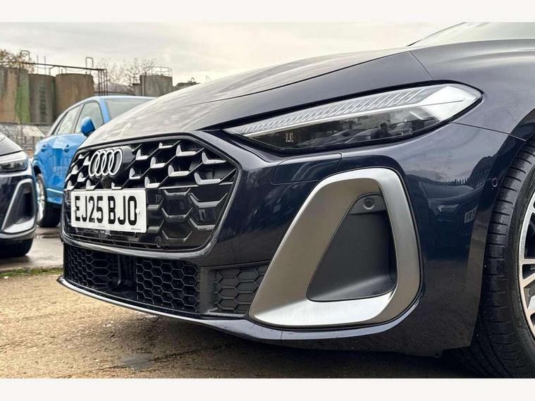 Adaptive cruise control, Advanced driver attention and fatigue montior, Audi application store, Audi assistant, Audi connect emergency call and service, Audi drive select, Audi smartphone interface, Audi virtual cockpit plus with 11.9" OLED colour display, Automatic start/stop system with coasting functionality, Camera based traffic sign recognition, Intersection assist, Lane departure warning, MMI navigation plus with high resolution 14.5" OLED touchscreen colour display, Park assist plus, Parking system plus with 360 display, Progressive steering with servotronic, Rear view camera, Swerve assist and turn assist, Traffic sign based speed limiter, Sports suspension lowered by 20mm, 2 USB-C ports in both the front and rear, Audi sound system impressive sound with 10 loudspeakers including centre speaker and subwoofer, 6-channel amplifier with a total output of 180 watts, DAB digital radio reception, Smartphone compartment with wireless charging, Aluminium window trims, Auto dimming rear view mirror, Body colour door mirrors, Door mirrors - electrically adjustable, heated, folding and auto dimming on both sides, Front and rear electric windows, Front door sill trims with aluminium inlays, illuminated with 'S' logo, High beam assist, LED headlights Plus incl. digital daytime running lights, turning light, all-weather light, motorway light, manouevring light and intersection light, LED rear lights pro incl. dynamic rear indicators and illuminated light strip with animated coming and leaving home function, LED third brake light, Privacy glass, Rear and side windows with heat insulating glass, Rear boot, Rear side wing doors, S Line badges on the front wings, S line bumpers, radiator grille and diffuser in phantom black and diffuser insert in matt anthracite, White rhombus logo projection light in exterior mirrors, Windscreen with acoustic glazing, 3 rear headrests, 3 seat rear bench, 3 spoke leather steering wheel with multi-function buttons with touch control, flattened on top and bottom, with S badging and contrast stitching, 3-zone automatic climate control, 40:20:40 split folding rear seat bench with centre armrest and cup holders, Comfort front centre armrest, Front and rear floor mats, Front seats with manual adjustment for position and 4-way electric lumbar support, Front sport seats with integrated headrest and S embossed logo, Headlining in black cloth, Heated front seats, i-Size child seat mounting on the front passenger side and outer rear seats, i-Size and top tether on the outer rear seats, Luggage compartment lid, electrically opening and closing, Manual steering column height and depth adjustment, Single front passenger seat, Stainless steel pedals and footrest, Steering wheel grips in perforated leather and shift paddles, Ambient lighting package plus - A5, 3x3 point rear seat belts, Driver airbag, Electric child safety locks, First aid kit with warning triangle and vests, Front emergency brake assist, Front passenger airbag, Front passenger airbag deactivation, Front side airbags with head airbag system and front interaction airbag, Hill hold assist, Seat belt monitoring with rear seat occupant reminder, Tyre pressure loss indicator, Anti theft alarm, Anti-theft wheel bolts, Keyless Go, Accent surfaces and control buttons in gloss black, Black dashboard with contrast stitching, Inlays in matt brushed aluminium with linear embossing, anthracite, Softwrap in leatherette with contrast stitching, Upper and lower interior elements in leatherette, Tyre repair kit,