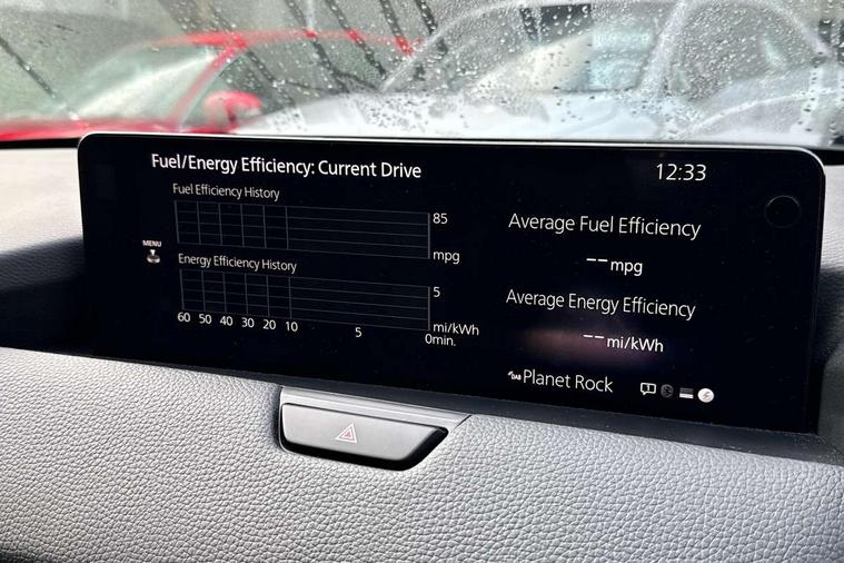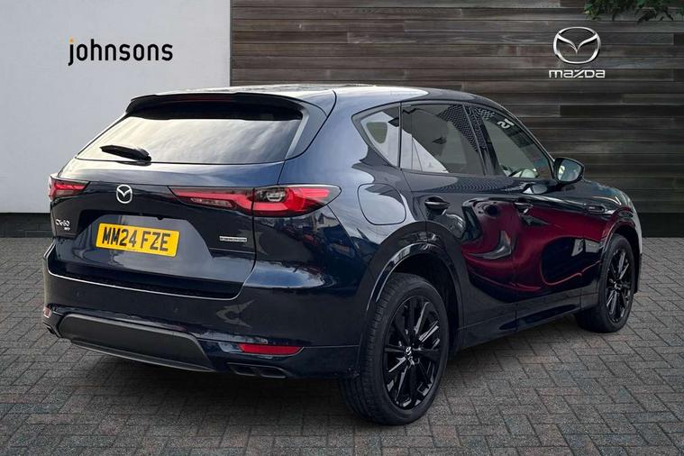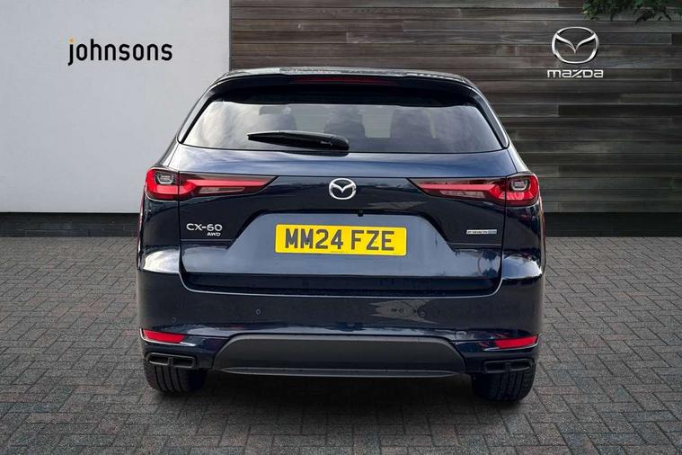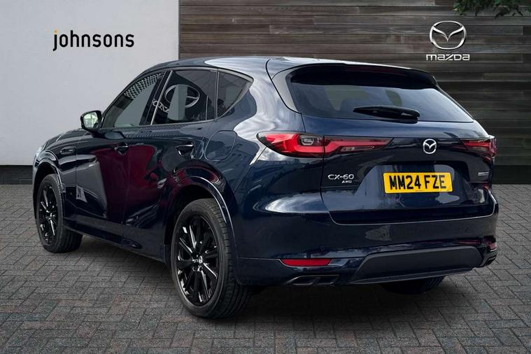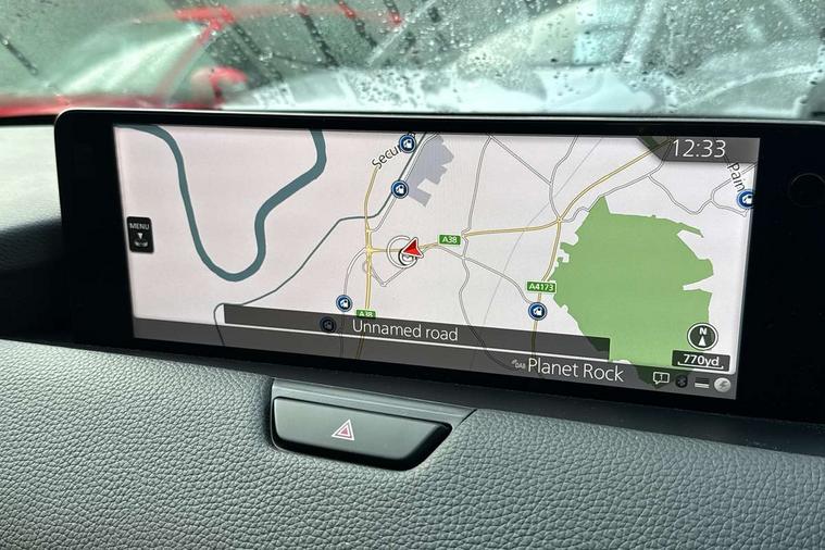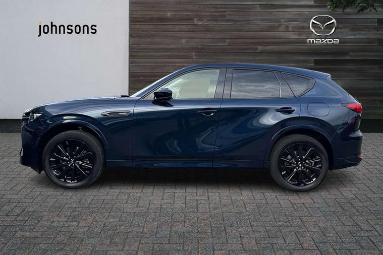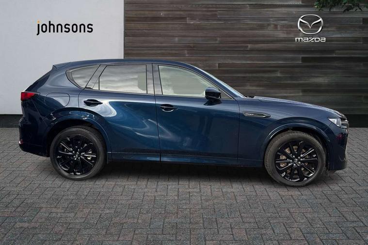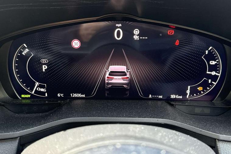 Emergency lane keeping with blind spot assist, Low washer fluid warning light, 12.3" Colour entertainment centre display with mazda connect infotainment, 12.3" TFT Colour display, Adjustable speed limiter, Black faux leather vinyl dashboard with titanium piping, Blind spot assist, Blind spot monitoring with rear cross traffic alert, Distance alert system, Driver attention alert system, Driver Monitoring with personal identification, E-call with GPS, Emergency stop signalling system, Exit warning function, Front and rear parking sensors, Ingress / Egress support and automatic driver position guide, Integrated bluetooth, Intelligent speed assist, Kinematic posture control, Lane keep assist system (LAS) with Lane departure warning system (LDWS), Mazda Driver Personalisation System, Mazda Navigation System with european mapping, Multimedia Commander, PAS, Power lift gate with handsfree function, Power start/stop button, Reversing camera with static guide lines, Speed alert, Traffic sign recognition, Trip computer, Windscreen projected colour active driving display, Wireless apple car play/android Auto, Type 2 Mode 2 cable for AC charging via UK 3-pin plug, 7.2 kw On board Charger, Mi-Drive (Normal, Sport, Off-road, Towing and EV mode), Paddle shift, Type 2 Mode 3 cable for AC charging via home or public charge points, AM/FM and DAB radio, Bose surround sound system with 12 Speaker, Bose center point, Bass match and audio pilot technology, Steering wheel mounted audio/bluetooth controls, USB-C inputs (x2 front and x2 rear), Auto dimming driver's door mirror, Automatic headlight levelling, B-pillar and C-pillar garnishes in gloss black finish, Body colour roof spoiler, Body coloured bumpers, Body coloured wheel arch and side mouldings, Coming/leaving home lighting function, Dark plated headlight lense, Dark plating finish signature wing in front grille, Dark plating front side garnish, Differentiated front bumper design to accentuate the intake, Dusk sensing headlights, Electric front/rear windows with one touch auto up/down, Electrically adjustable, heated auto power folding door mirrors with memory, Frameless auto dimming interior rear view mirror, Front kodo turn signal, Front wiper de-icer, Gloss black door mirrors, Headlight washers, High beam control, Honeycomb radiator grille in gloss black, LED 3rd brake light, LED rear signature combination lamps, Rain sensing front wipers with adjustable sensitivity and speed, Rear side wing doors, Rear wiper, Roof pillars and roof lining finished in lighter colour to soften the overall look, Signature LED daytime running lights, Silver decoration panel, 12v power outlet - front, 12V socket in boot, 3 height adjustable rear headrests, 3 seat bench in 2nd row, 40/20/40 split folding rear seats with quick levers in the boot, Ambient lighting, Cargo net, Chrome interior trim accents with steering wheel centre bezel, surround of engine start / stop button and glove box handle, Door panel trim vinyl leather with armrest, Driver and front passenger two rear grab handles with rear coat hooks, Driver and front passenger visors with covered vanity mirror and driver ticket holder, Driver seat electric tilt, slide, recline, height and lumbar adjustment, Driver, front passenger and two rear door pockets, Driver/passenger front seatback pockets, Dual zone climate control air conditioning with rear air vents, Electric telescopic and tilt adjustment steering wheel, Folding rear centre armrest with two cup holders, Front centre storage with two cupholders, Front down lamp with front and rear foot lamps, Front headrests, Front passengers seat electric slide, recline, height and lumbar adjustment, Front seat ventilation with 3-stage setting, Glovebox illumination, Heated front seats with 3 stage setting, Heated leather wrapped steering wheel, Heated outer rear seats with 3-stage setting, ISOFIX child seat anchorage points attached on outer rear seats, Karakuri tonneau cover, Leather upholstery, Leather wrapped gear shift knob, LED illumination luggage compartment, Practical and spacious front centre armrest storage, Rear seat recline function for rear passenger comfort, Remote fold down rear seats, Roof mounted sunglasses holder, Single front passenger seat, 3 point ELR front seat belts x2 with pretensioners, 3 point ELR rear seat belts, Active bonnet, Anti-lock braking system (ABS), Drivers knee airbag, DSC - Dynamic Stability Control, Electronic parking brake with auto disengage function and auto hold function, Front and rear curtain airbags, Front dual stage driver and single stage front passenger airbags, Front passenger airbag cut-off switch, Front side airbags, Front smart city brake support, Hill decent control, Hill launch assist, Manual rear child locks, Seatbelt reminder for driver/front passenger and rear seats, Traction control, Tyre pressure monitoring system (TPMS), Remote central locking with deadlocking and automatic door lock when driving, Smart keyless entry, Thatcham accredited alarm and immobiliser, Black centre console panel, Dashboard panel - Black Vinyl, 20" Black metallic alloy wheels, Emergency tyre repair kit,