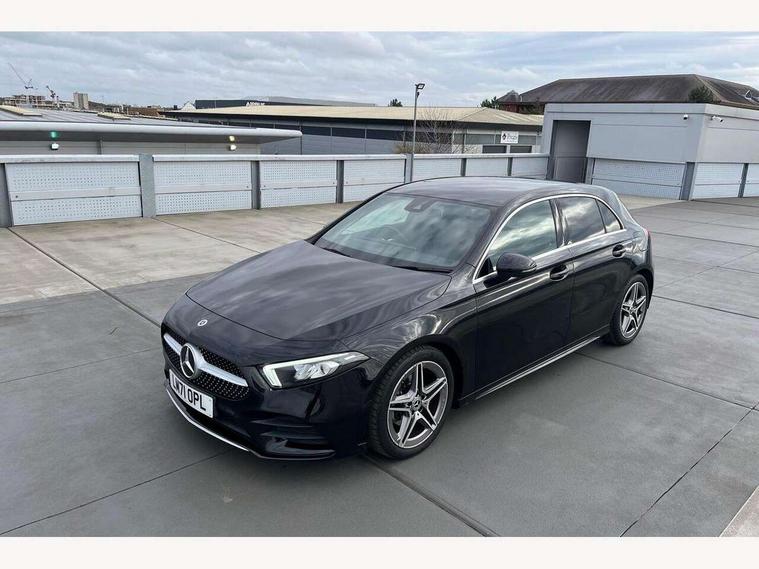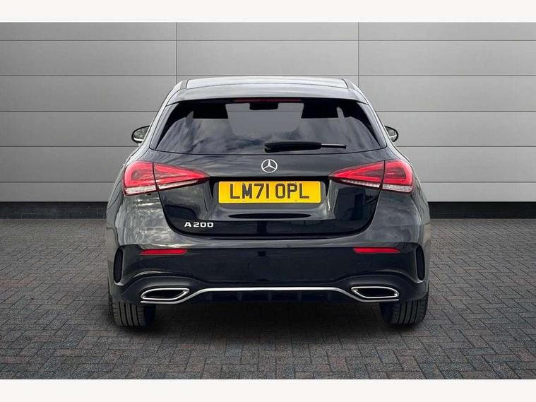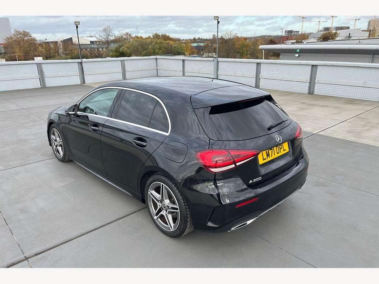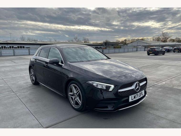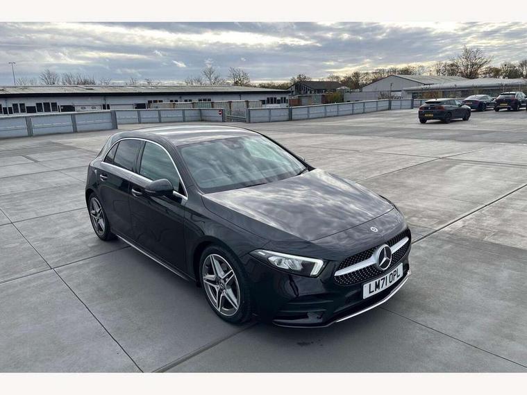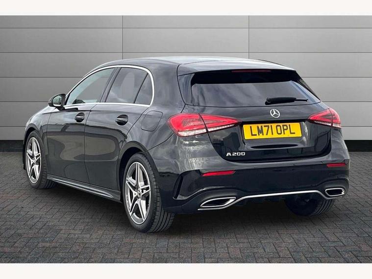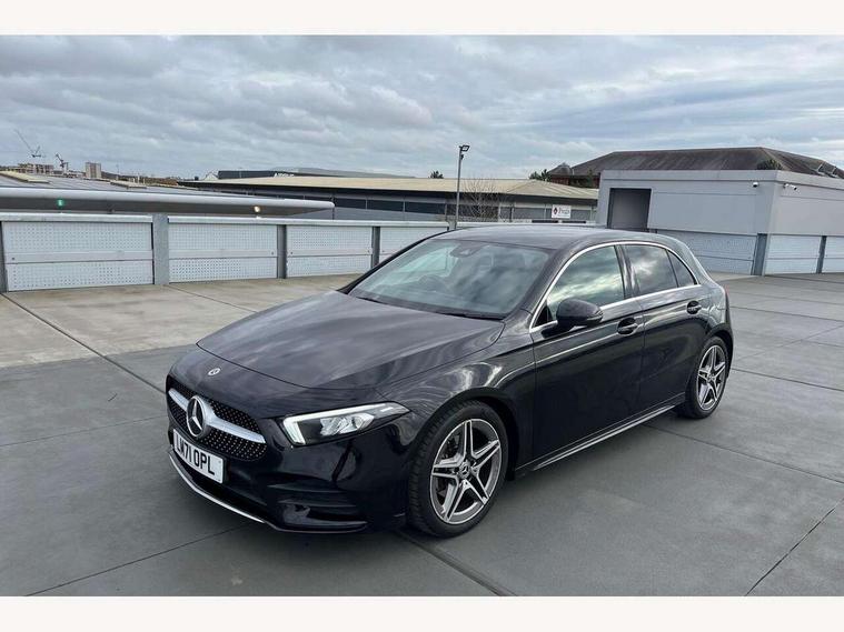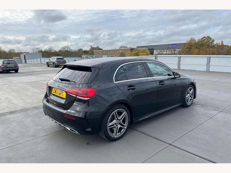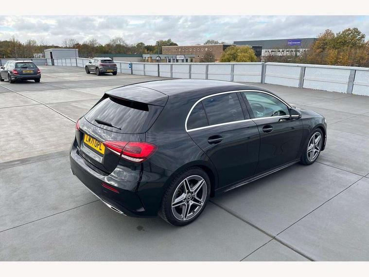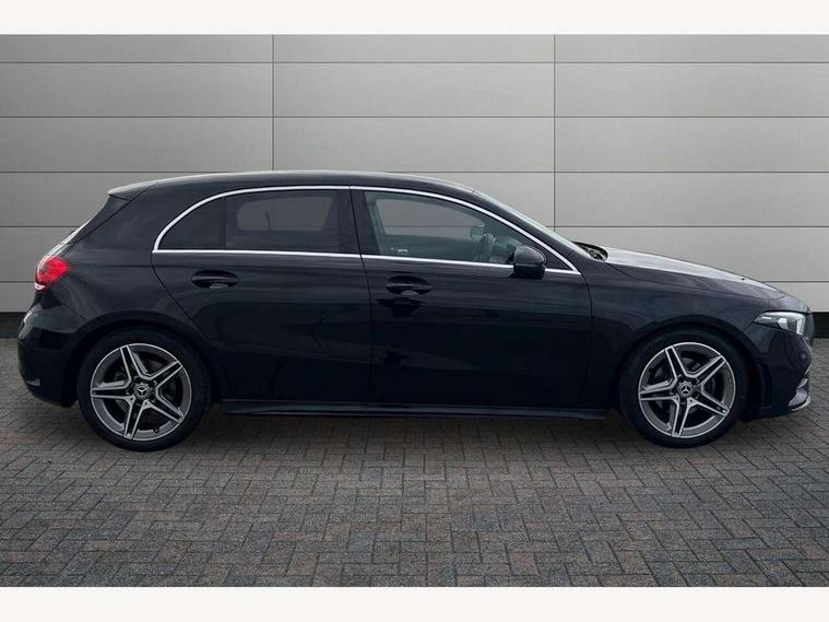180 degree rear view camera with parking guidelines, 7" colour screen in instrument panel, 7" touchscreen media display, Attention assist, Brake pad wear indicator warning light, Car wash mode, Cruise control + speed limiter, Direct steering, Dual bluetooth interfaces, DYNAMIC SELECT with a choice of driving modes (ECO, Comfort, Sport and Individual), ECO start/stop function, Fluid level warning indicator for fuel, oil, coolant and washer fluid, Hard-disk navigation, Hey Mercedes Voice activation, Lamp failure indicator, Mercedes me connect including emergency call system, accident recovery, breakdown and maintenance management, Mercedes me remote services, Outside temperature gauge, Owners manual in English, Pre-installation for private car sharing, Preinstallation for Mercedes Benz link, Service indicator (ASSYST), Speed sensitive power steering, Trip computer, Lowered comfort suspension, Rear axle torsion beam, 2 USB ports (type C) in rear stowage compartment and one in front of center console, 6 speakers, DAB Digital radio, MBUX multimedia system with DAB digital radio and touchpad including satellite navigation, Mercedes-Benz sound system - 100W, 4 Electric Front and Rear windows, Adaptive brake lights, AMG bodystyling - Front apron with splitter in chrome, rear apron with chrome trim and chrome visible trim elements in tailpipe, Black weather strip, Body colour bumpers, Body colour door handles, Body colour side skirt, Body coloured door mirrors, Chrome beltline trim, Diamond radiator grille with chrome pins and silver louvre + chrome insert, Electric adjustable and heated door mirrors with integrated LED side indicators, Exhaust system - Twin visible tailpipes in polished stainless steel, Headlamp assist automatic headlamp activation, Heated glass rear windscreen + timer control, LED high performance headlamps with integrated LED daytime running lights, LED tail lamp, LED third brake light, Privacy glass, Radio aerial, Rain sensing windscreen wipers with two sensitivity settings, Rear fog lights, Rear wiper, Window line trim strip in chrome, 3 Spoke flat bottom leather multi function steering wheel with perforated leather in grip area, 40:20:40 split folding rear seats, Artico man-made leather/Microfibre Dinamica upholstery with red contrast stitching, Auto Mercedes-Benz child seat recognition sensor, Black air vents with surround in silver chrome, Black roof lining, Brushed stainless steel sports pedals with rubber studs, Controller on centre console with chrome surround, Floor mats with stitched edging and AMG lettering, Front centre armrest with storage compartment, Front door sills with Mercedes Benz lettering, Front seat backs luggage nets, Front seat cushion length adjustment, Heated front seats, Height/reach adjustable steering column, Interior mirror with reading lamps in black and frameless, Manual height adjustable front seats, Rear head restraints, Seat occupancy sensor for front passenger seat, Sports seats with integrated headrests, Sunvisors with illuminated vanity mirrors, Touchpad on center console, Twin front cupholders, Two zone thermotronic luxury automatic climate control, Light and sight pack - A Class, Seat comfort pack - A Class, 3 rear 3 point seatbelts, ABS with Brake Assist, Active bonnet, Active brake assist includes forward collision warning system with autonomous braking, Adaptive brake assist with hold function and hill start assist, Black seatbelts, Childproof locks manually operated for rear doors and electrically operated for rear power windows, Crash responsive emergency lighting, Driver and passenger head and side airbags, Drivers knee airbag, Dual stage driver/passenger airbags, Electronic parking brake, ESP curve dynamic assist, ESP with ASR, Front and rear seatbelt reminder, Front brake callipers with Mercedes Benz lettering, ISOFIX and top tether child seat fixing points in two outer rear seats, Tyre pressure monitoring system, Warning triangle and first aid kit, Window airbags, Alarm system/interior protection/immobiliser, Keyless Go, Remote central locking and crash sensor with emergency opening function, Urban guard vehicle protection system with immobiliser and interior protection, Dinamica microfibre trim in black, 18" AMG 5 twin spoke light alloy wheels in titanium grey with highsheen finish, Summer tyres, Tirefit sealant kit,