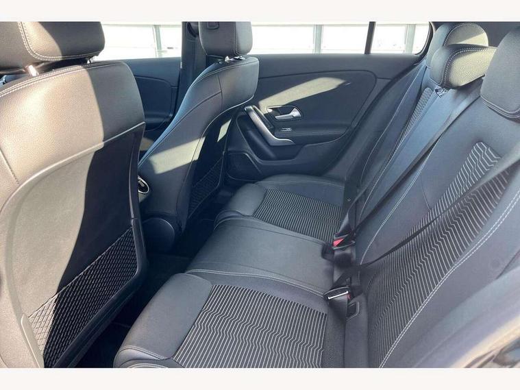 180 degree rear view camera with parking guidelines, 7" colour screen in instrument panel, 7" touchscreen media display, Attention assist, Brake pad wear indicator warning light, Car wash mode, Cruise control + speed limiter, Direct steering, Dual bluetooth interfaces, DYNAMIC SELECT with a choice of driving modes (ECO, Comfort, Sport and Individual), ECO start/stop function, Fluid level warning indicator for fuel, oil, coolant and washer fluid, Hard-disk navigation, Hey Mercedes Voice activation, Lamp failure indicator, Lane keeping system, Mercedes me connect including emergency call system, accident recovery, breakdown and maintenance management, Mercedes me remote services, Outside temperature gauge, Owners manual in English, Pre-installation for private car sharing, Preinstallation for Mercedes Benz link, Service indicator (ASSYST), Speed sensitive power steering, Trip computer, Lowered comfort suspension, Rear axle torsion beam, 2 USB ports (type C) in rear stowage compartment and one in front of center console, 6 speakers, DAB Digital radio, MBUX multimedia system with DAB digital radio and touchpad including satellite navigation, Mercedes-Benz sound system - 100W, 4 Electric Front and Rear windows, Adaptive brake lights, Automatic headlights, Black weather strip, Body colour bumpers, Body colour door handles, Body colour side skirt, Body coloured door mirrors, Chrome beltline trim, Diamond radiator grille with black pins with one louvre in silver + chrome insert, Electric adjustable and heated door mirrors with integrated LED side indicators, Exhaust system - Twin visible tailpipes in polished stainless steel, Headlamp assist automatic headlamp activation, Heated glass rear windscreen + timer control, LED High level third brake light, LED high performance headlamps with integrated LED daytime running lights, LED tail lamp, Radio aerial, Rain sensing windscreen wipers with two sensitivity settings, Rear fog lights, Rear side wing doors, Rear wiper, Window line trim strip in chrome, 3 seat bench in 2nd row, 3 Spoke leather multi function steering wheel, 40:20:40 split folding rear seats, Artico man-made leather/Fleron fabric upholstery, Auto Mercedes-Benz child seat recognition sensor, Black air vents with surround in silver chrome, Black roof lining, Controller on centre console with chrome surround, Front centre armrest with storage compartment, Front comfort seats with adjustable head restraints, Front door sills with Mercedes Benz lettering, Front seat backs luggage nets, Front seat cushion length adjustment, Gearshift paddles on steering wheel, Heated front seats, Height/reach adjustable steering column, Interior mirror with reading lamps in black and frameless, Manual height adjustable front seats, Rear head restraints, Seat occupancy sensor for front passenger seat, Single front passenger seat, Stowage compartment in centre console with retractable cover, Sunvisors with illuminated vanity mirrors, Touchpad on center console, Twin front cupholders, Two zone thermotronic luxury automatic climate control, Velour floor mats, Light and sight pack - A Class, Seat comfort pack - A Class, 3 rear 3 point seatbelts, ABS with Brake Assist, Active bonnet, Active brake assist includes forward collision warning system with autonomous braking, Adaptive brake assist with hold function and hill start assist, Black seatbelts, Childproof locks manually operated for rear doors and electrically operated for rear power windows, Crash responsive emergency lighting, Driver and passenger head and side airbags, Drivers knee airbag, Dual stage driver/passenger airbags, Electronic parking brake, ESP curve dynamic assist, ESP with ASR, Front and rear seatbelt reminder, ISOFIX and top tether child seat fixing points in two outer rear seats, Tyre pressure monitoring system, Warning triangle and first aid kit, Window airbags, Alarm system/interior protection/immobiliser, Keyless Go, Remote central locking and crash sensor with emergency opening function, Urban guard vehicle protection system with immobiliser and interior protection, Dark carbon fibre interior trim, 17" 5 twin spoke light alloy wheels painted in matt black with a high sheen finish, Summer tyres, Tirefit sealant kit,