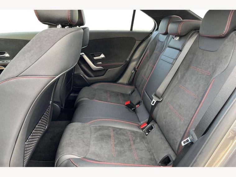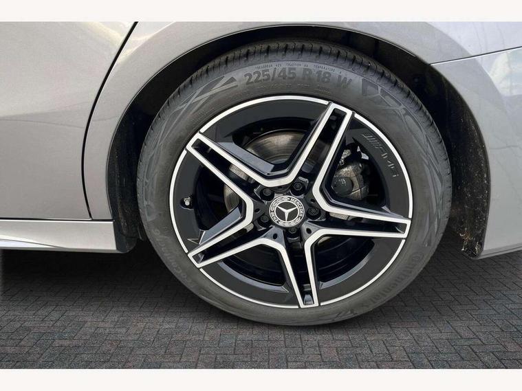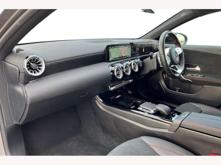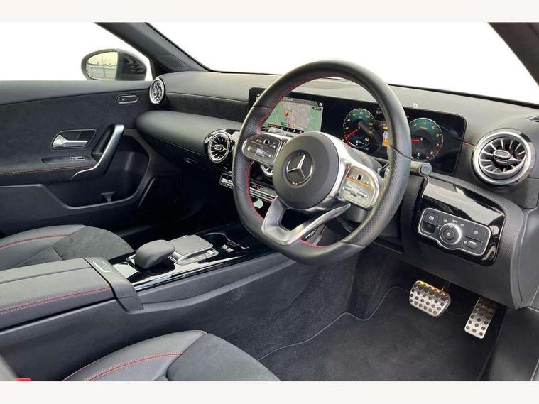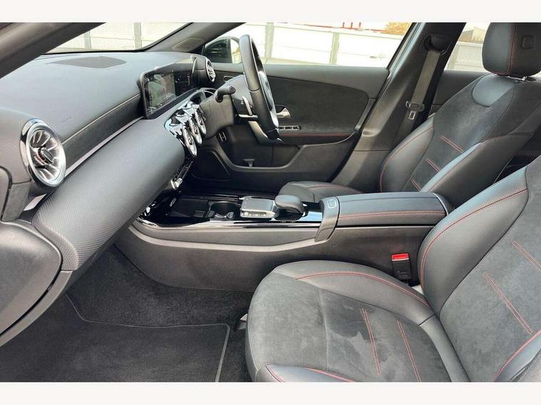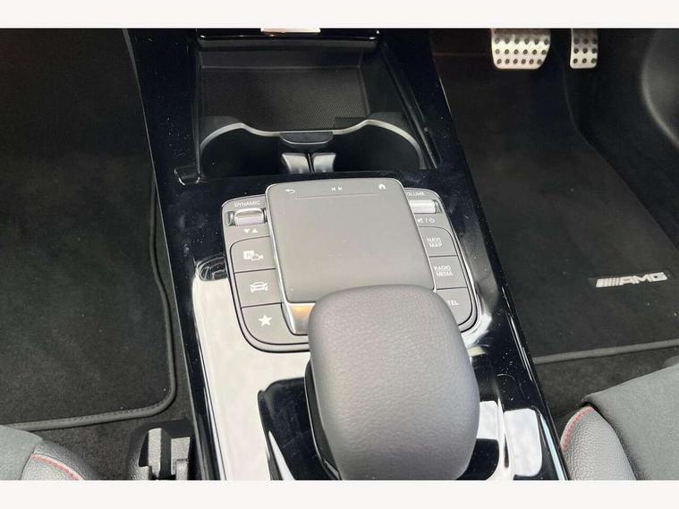 10.25" Digital instrument cluster display screen, 10.25" media display, 180 degree rear view camera with parking guidelines, Active parking assist with visual and audible warning of detected obstacles, Attention assist, Brake pad wear indicator warning light, Car wash mode, Cruise control + speed limiter, Direct steering, Dual bluetooth interfaces, DYNAMIC SELECT with a choice of driving modes (ECO, Comfort, Sport and Individual), ECO start/stop function, Fluid level warning indicator for fuel, oil, coolant and washer fluid, Hard-disk navigation, Hey Mercedes Voice activation, Lamp failure indicator, Lane keeping system, Mercedes me connect including emergency call system, accident recovery, breakdown and maintenance management, Mercedes me remote services, Outside temperature gauge, Owners manual in English, Pre-installation for private car sharing, Preinstallation for Mercedes Benz link, Service indicator (ASSYST), Smartphone integration with Apple CarPlay and Android auto, Speed limit assist, Speed sensitive power steering, Trip computer, Ultrasonic sensors positioned in the front and rear bumpers, Lowered comfort suspension, Rear axle torsion beam, 2 USB ports (type C) in rear stowage compartment and one in front of center console, 6 speakers, DAB Digital radio, MBUX multimedia system with DAB digital radio and touchpad including satellite navigation, Mercedes-Benz sound system - 100W, 4 Electric Front and Rear windows, Adaptive brake lights, AMG bodystyling - Front apron with splitter in chrome, rear apron with chrome trim and chrome visible trim elements in tailpipe, Automatic headlights, Black weather strip, Body colour bumpers, Body colour door handles with chrome inserts, Body colour side skirt, Electric adjustable and heated door mirrors with integrated LED side indicators, Exclusive diamond radiator grille, Exhaust system - Twin visible tailpipes in polished stainless steel, Headlamp assist automatic headlamp activation, Heated glass rear windscreen + timer control, LED high performance headlamps with integrated LED daytime running lights, LED tail lamp, Privacy glass, Radio aerial, Rain sensing windscreen wipers with two sensitivity settings, Rear boot, Rear fog lights, Rear side wing doors, Third brake light featuring LED technology, 3 seat bench in 2nd row, 3 Spoke flat bottom leather multi function steering wheel with perforated leather in grip area, 40:20:40 split folding rear seats, Artico man-made leather/Microfibre Dinamica upholstery with red contrast stitching, Auto Mercedes-Benz child seat recognition sensor, Black air vents with surround in silver chrome, Black roof lining, Brushed stainless steel sports pedals with rubber studs, Controller on centre console with chrome surround, Floor mats with AMG lettering, Front centre armrest with storage compartment, Front seat backs luggage nets, Front sports seats with adjustable head restraints, Galvanished gear shift paddles on steering wheel, Heated front seats, Height/reach adjustable steering column, Illuminated Mercedes Benz lettering front door sills with changeable cover, Interior lighting - 64 colour Ambient lighting, Interior mirror with reading lamps in black and frameless, Manual height adjustable front seats, Rear armrest with 2 cupholders, Rear head restraints, Seat occupancy sensor for front passenger seat, Single front passenger seat, Stowage compartment in centre console with retractable cover, Sunvisors with illuminated vanity mirrors, Touchpad on center console, Twin front cupholders, Two zone thermotronic luxury automatic climate control, Light and sight pack - A Class, Mirror package - A Class, Night pack - A Class Saloon/Hatchback, Seat comfort pack - A Class, 3 rear 3 point seatbelts, ABS with Brake Assist, Active bonnet, Active brake assist includes forward collision warning system with autonomous braking, Adaptive brake assist with hold function and hill start assist, Black seatbelts, Childproof locks manually operated for rear doors and electrically operated for rear power windows, Crash responsive emergency lighting, Driver and passenger head and side airbags, Drivers knee airbag, Dual stage driver/passenger airbags, Electronic parking brake, ESP curve dynamic assist, ESP with ASR, Front and rear seatbelt reminder, Front brake callipers with Mercedes Benz lettering, ISOFIX and top tether child seat fixing points in two outer rear seats, Tyre pressure monitoring system, Warning triangle and first aid kit, Window airbags, Alarm system/interior protection/immobiliser, Keyless entry lock/unlock, Keyless Go, Remote central locking and crash sensor with emergency opening function, Urban guard vehicle protection system with immobiliser and interior protection, Matrix look light longitudinal grain aluminium trim element, 18" AMG 5 twin spoke light alloy wheels aerodynamically optimised painted in black with highsheen finish, Summer tyres, Tirefit sealant kit,