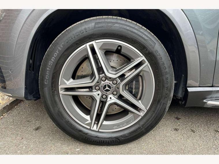12.3 High resolution wide screen cockpit display with choice of three display styles Classic, Progressive or Sport and unique ambient lighting setting, 360 degree camera, Active lane keeping assist, Active parking assist with PARKTRONIC, Attention assist, Blind spot assist, Brake wear warning display, Direct steer speed sensitive steering, DYNAMIC SELECT with a choice of driving modes (ECO, Comfort, Sport and Individual), Easy-pack tailgate - Powered opening/closing automatically, ECO start/stop function, Geofencing, Hard-disk navigation, MBUX augmented reality for navigation and live traffic, MBUX voice control activated by keywords "Hey Mercedes", Mercedes Benz emergency call system, Mercedes me connect - vehicle set up and monitoring, Outside temperature display, Pre-installation for digital key transfer, Remote boot release, Service indicator (ASSYST), Smartphone integration with Apple CarPlay and Android auto, Speedtronic cruise control with speed limiter, Status display for rear seat belts in instrument cluster, Traffic sign assist, Trip computer in multifunction display showing current fuel consumption, Wireless charging, 85 litre fuel tank, 9G TRONIC 9 speed automatic transmission, Airmatic air suspension with adaptive damping system, Diesel particulate filter (DPF), Mild Hybrid starter alternator, Additional USB connection, Bluetooth interface for hands free and audio streaming, Burmester surround sound system, DAB digital radio tuner, Front and rear USB ports, Sound personalisation, Adaptive brake lights, Aluminium look, illuminated running boards with rubber studs, AMG bodystyling front and rear aprons, Auto headlights, Automatically dimming rear view mirror, Body colour door mirrors, Body coloured bumpers, Electric windows with one touch opening/closing and obstruction sensors, Electrically adjustable, heated, folding exterior mirrors, Exterior styling - front bumper, radiator grille and front air intakes, Heat insulating dark tinted glass, LED 3rd brake light, LED daytime running light signet, LED rear lights, Multibeam LED headlights with adaptive highbeam assist plus, Radio aerial integrated into rear window, Rain sensing windscreen wipers, Rear side wing doors, Rear wiper, Roof rail system, Top surround of side windows in polished aluminium, Transparent Bonnet, Visible twin pipe exhaust system integrated into bumper, Waistline in polished aluminium, 3 spoke nappa leather multifunction sports steering wheel, 3rd row of seats for 2 people, 4 way adjustable front head restraints and 2 way rear head restraints, 40:20:40 split folding rear seats, AMG floor mats with AMG lettering, Automatic child seat recognition sensor, Black fabric roof liner, Electric height/reach adjustable steering column, Electrically adjustable rear seats, Front centre armrest with stowage compartment and illuminated grab handles, Gearshift paddles on steering wheel, Glove compartment - lockable, air conditioned and illuminated, Heated front seats, Illuminated door sill with Mercedes Benz lettering, Interior lighting - 64 colour Ambient lighting, Leather upholstery, Luggage compartment cover, Seat occupancy sensor for front passenger seat, Second row three seats, Single front passenger seat, Sports pedals in brushed stainless steel with rubber studs, Sunvisors with illuminated vanity mirrors, THERMATIC 2 zone automatic climate control, Touchpad, Keyless go comfort package with comfort opening - GLE, Memory package with 4 way lumbar support - GLE, Active bonnet, Active brake assist with HOLD function and brake e-drying function, Airbags - driver and front passenger, front sidebag, pelvis bag and window airbags, Anti-lock braking system (ABS), Black seat belts, Childproof locks manually operated for rear doors and electrically operated for rear power windows, Drivers knee airbag, Electronic parking brake, Electronic Stability Programme (ESP), ISOFIX child seat points with automatic child seat recognition, Perforated front brake discs and brake calipers with Mercedes-Benz lettering, Pre safe impulse side, Three point rear seat belts, Tyre pressure monitoring system, Warning triangle and first aid kit, Alarm system/interior protection/immobiliser, Central locking with interior switch, automatic locking and crash sensor with emergency opening function, Chrome surround electric key, Dashcam, Guard 360 degree vehicle protection plus, Dashboard and door beltlines in ARTICO man made leather, Trim - Centre console, anthracite open pore oak wood trim, 20" AMG 5 twin spoke light alloy wheels, TIREFIT with tyre inflation compressor,
