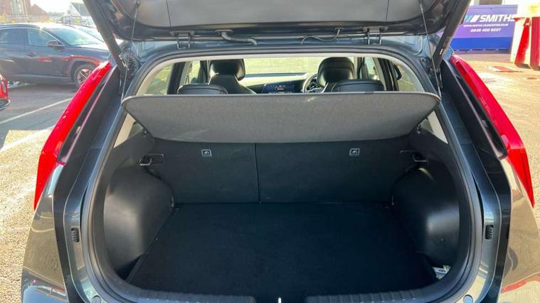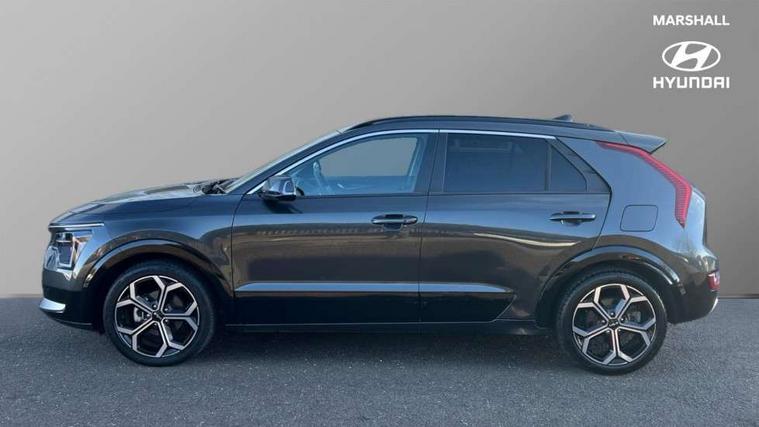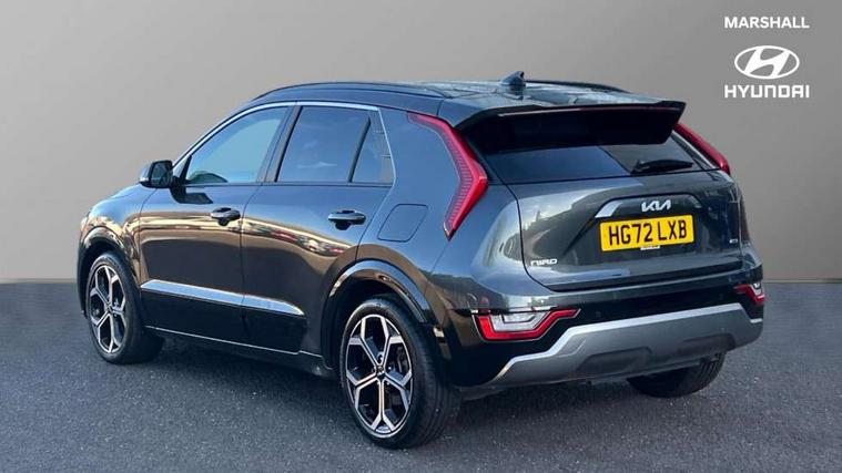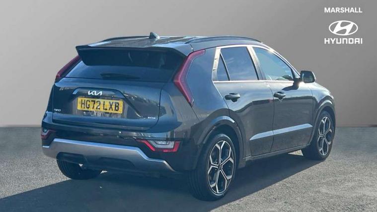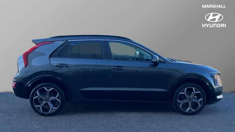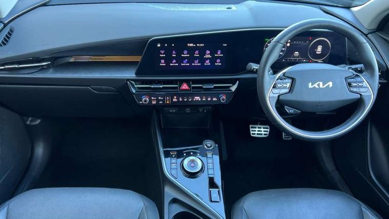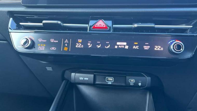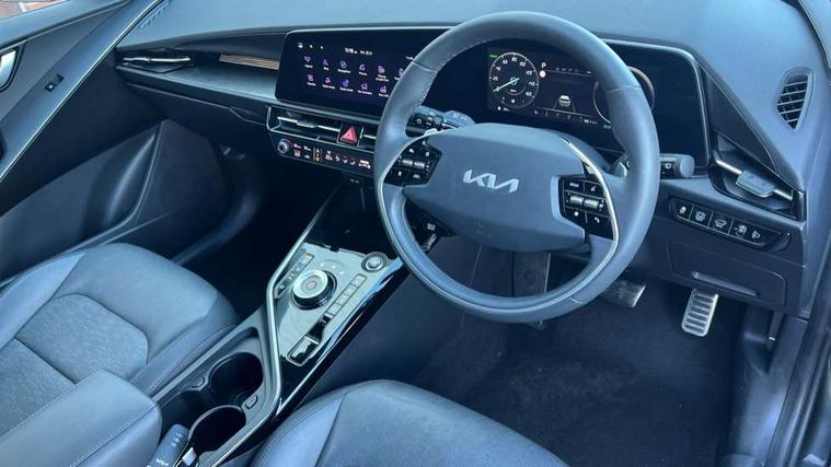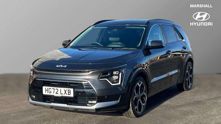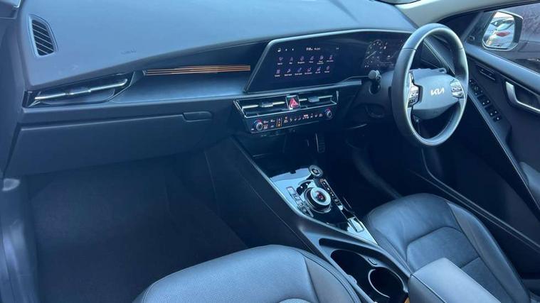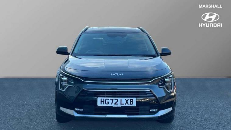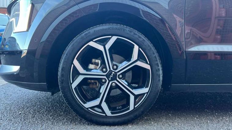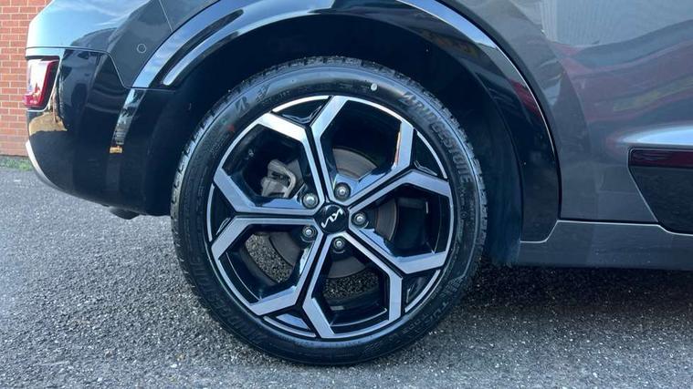 10.25" Supervision colour cluster display, 10.25" touchscreen satellite navigation, Adaptive smart cruise control function (SCC) with stop and go, Apple car play/Android Auto with voice control, Blind spot collision avoidance assist, Drive mode select (Eco, sport), E-call, Emergency stop signalling system, Forward Collision-Avoidance Assist (FCA) 1.5 - City/Pedestrian/Cyclist/Junction turning, Front parking sensors, Head up Display, Highway Driving Assist (HDA), Kia Connect (UVO), Lane Following Assist (LFA), Lane keep assist, Motor driven power steering, Parking collision avoidance assist (PCA), Power opening/closing tailgate, Rear cross traffic alert, Rear parking sensors, Remote smart parking assist, Reversing camera with dynamic guide lines, Safe exit warning (SEW), Speed limit assist, Trip computer with distance/fuel consumption/average speed, Wireless Smartphone charger, 220v AC Inverter, 'Shark fin' mobile antenna, 2 type C USB ports on front seats, 2 USB ports in centre console including 1 type C, 6 speakers, Bluetooth with music streaming, DAB Digital radio, Steering wheel mounted controls, Acoustic windshield, All round electric windows with drivers and front passenger auto up/down and safety function, Auto dimming rear view mirror, Automatic defog system, Automatic headlight control system, Black beltline mouldings, Black grille with chrome surround, Body colour bumpers, Body colour exterior door handles, Deluxe door scuff plates, Dual LED headlights (low and high projection), Electric heated door mirrors, Electrically folding door mirrors, Front and rear chrome skid plates, Front fog lights, Heated rear window with timer, High gloss black cladding, High gloss black door mirrors, LED daytime running lights, LED rear combination lights, LED third brake light, One touch single tilting/sliding power sunroof, Privacy glass - Rear windows and tailgate, Rain sensing front wipers, Rear fog lights, Rear side wing doors, Rear spoiler, Rear wiper, Roof rails, Solar glass windscreen, Welcome and follow-me home light functionality, Windscreen Washer Level Warning, 12V socket in front, 12V socket in luggage compartment, 3 seat bench in 2nd row, 60:40 split remote folding rear seats, All-round height adjustable headrests, Aluminium pedals, Artificial leather centre console storage box, Artificial leather steering wheel, Centre console cupholder, Chrome coating interior door handles, Driver and front passenger power adjusted seat, Driver power adjusted memory seat, Driver/passenger sunvisors with illuminated vanity mirrors, Drivers seat power lumbar support, Dual zone automatic air conditioning, Front and rear door storage, Heated front seats, Heated outer rear seats, Heated steering wheel, Illuminated glovebox, Interior door lock/unlock function, ISOFIX Child seat top tethers and anchor fixings, LED overhead console, 2nd row and luggage lamp, Luggage area load cover, Luggage board, Paddle shifts, Passenger premium relaxation seat, Power adjustable lumbar support on front passenger seat, Rear armrest, Seatback pocket - driver, Seatback pocket - front passenger, Shift by wire SBW, Single front passenger seat, Tilt/telescopic adjustable steering wheel, Vegan leather upholstery, Ventilated front seats, Ventiliation ducts to rear compartment, Towing pack - Niro, 3 point seatbelts on all seats, ABS, Automatic unlocking of doors in case of impact, Centre side front airbags, Curtain and side airbags, Drivers knee airbag, Dual shell horn, Electric parking brake with auto hold function, Electronic stability control, Front passenger airbag deactivation, Height adjustable front seatbelts, Hill start assist control (HAC), Manual rear child locks, Rear seat alert system, Traction control, Tyre pressure monitoring system, Alarm system and engine immobiliser, Deadlocks, Engine Start/Stop Button with Smart Entry System, Locking wheel nuts, Visible vehicle identification number, Warranty - 7 Years/ 100, 000 miles, Centre fascia chopped carbon, 18" Alloy wheels, Tyre mobility kit,