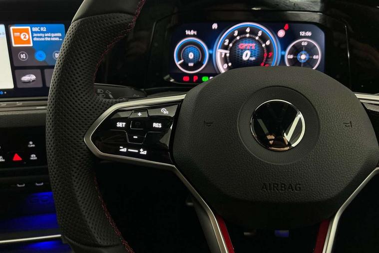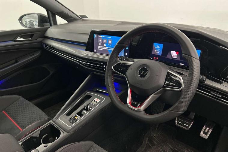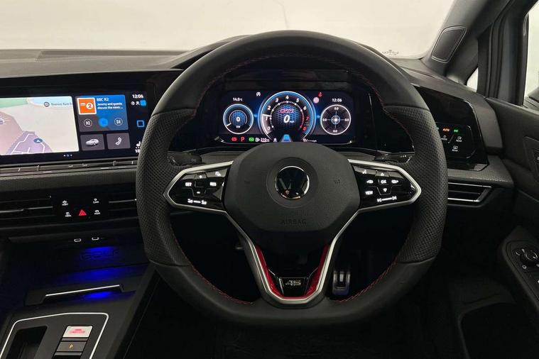 Adaptive cruise control (ACC) with speed limiter and front assist (reacting to vehicles pedestrians and cyclists), Car2X communication, Digital cockpit pro - 10.25" high resolution TFT dash display screen with customizable menus and information, Driver alert system, Driver profile selection, Dynamic road sign display, eCall - Emergency call service for SOS calls to emergency response, Lane assist, Lane change assistant, Mobile phone interface with wireless inductive charging function, Progressive steering, Speedo, rev counter, electronic odometer, trip, service interval display, exterior temperature and fuel gauge, Start/Stop function, Travel assist with emergency side assist with electrically foldable door mirrors, Warning buzzer and light for front seatbelts unfastened, Wireless app connect, Front differential lock, Petrol Particulate Filter, XDS electronic differential lock for improved traction and handling, Premium USB cable in choice of either Apple or Android smartphone compatibility, '45' lettering on the side sill panel and on the boot lid, Advanced high beam control dynamic light assist for LED matrix headlamps, Akrapovic titanium sport exhaust system, Ambient lighting, exterior illuminated styling elements at the sides, Auto dimming rear view mirror, Automatic headlamp activation with Coming home and Leaving home feature, Black painted roof, upper shell of the spoiler and door mirror covers, Body colour bumpers, Body colour door handles, Front and rear electric windows, GTI Clubsport styled bumpers, Heat insulating glass windscreen, Heated rear windscreen, High level 3rd brake light, Highway light, Illuminated front grille, IQ.Light - LED Matrix headlights, dynamic headlight control with advanced high beam control matrix dipped main beam + LED DRL + 22 LED lights, LED front fog lights with 5 honeycomb design, LED License plate illumination, LED rear combination lamp inlcuding dynamic turn signal, Performance rear spoiler, Rain sensor, Rear fog light on one side and reversing lights on both sides, Rear tinted glass 65% light absorbing from B pillar backwards, Rear windscreen washer and wiper with interval delay, Remote electrically heated, adjustable and foldable door mirrors, including door mirror puddle lights and reverse activated kerb-view adjustment on pa, Welcome light, 12V socket in front centre console, 12V socket in luggage compartment, 3 rear head restraints, 3 zone climate with controls in the rear, 45 decal and badge on steering wheel, Aluminium gear knob, Ambient lighting - Customisable 30 colour ambient lighting, Black roof lining, Brushed stainless steel pedals, Centre console, Chrome plated surround to electric mirror button, window switch and air vent surrounds, Door insert in Artvelours, Drivers and front passengers sun visors with vanity mirrors, Front + rear carpet mats, Front centre armrest with storage compartment, Front cupholders x 2, Front reading lights x 2 incorporating LED technology, Front seat lumbar support adjuster, Front sports seats, Glovebox, GTI lettering on the backrests of the front sport seats, Height adjustable front seats, Height and reach adjustable steering wheel, Isofix child seat preparation for 2 rear child seats and front passenger seat, Leather wrapped multifunction sports heated steering wheel with paddle shift, Luggage compartment lighting, Removable luggage compartment cover, Side trim panel and arm support in leatherette, Split folding backrest with centre armrest and unsplit rear seat bench, Woven fabric storage compartments in front and rear doors, 3 point height adj front seatbelts + pretensioners, 3 rear three point seatbelts, ABS, Driver and front passenger airbag with front passenger airbag deactivation, Drivers and front passengers safety optimised head restraints, Electronic parking brake with auto hold, ESC (Electronic Stability Control), Extended pedestrian protection measures, Front and rear passengers curtain airbag system including front side airbags, Front disc brakes, Rear disc brakes, Two tone horn, Tyre pressure monitoring system, Alarm with interior protection and deactivation via infotainment system, Electronic engine immobiliser, Keyless entry with start/stop button on centre console, Black metal chrome decorative inserts in dash and front door trim panels, Soul dashboard, 19" Scottsdale alloy wheels with anti theft wheel bolts, Tyre mobility kit Includes 12V compressor and tyre sealant,