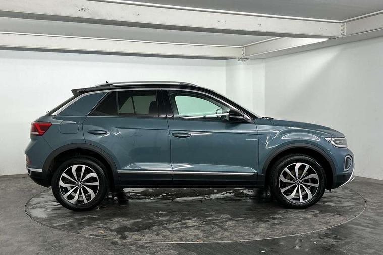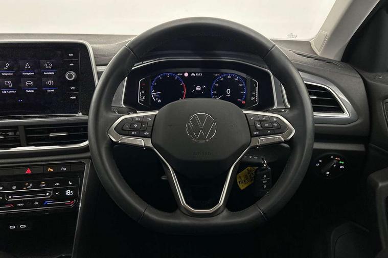 10.25" Digital cockpit pro, Bluetooth mobile phone interface, Driver alert system with fatigue detection, Driver tips and journey analysis, Emergency call service, Lane keeping system Lane Assist, Modified key software - reduce switch off time for key status change to Long no motion, Online services, Park assist including front and rear parking sensors, Service interval indicator, Tailgate/trunk lid release from outside, Think blue trainer driver tips and journey analysis, Warning sound and light for front seatbelts unfastened, Wireless app connect, Battery regeneration during braking, Start/stop function with battery regeneration, Diversity antenna for FM reception, Music playback - MP3, WMA and AAC files, Premium USB cable in choice of either Apple or Android smartphone compatibility, SD card slot, Simultaneous pairing of 2 compatible mobile devices, Title and cover art display, We Connect and We Connect Plus functionality, 3rd brake light, Auto dimming interior rear view mirror, Automatic hazard lights activation under emergency braking, Automatic headlight control with LED separate daytime running lights with coming/leaving home function, Body colour sports bumpers with silver metallic underbody fascia, Dynamic headlight range control with self adjusting whilst driving, Extended roof spoiler, Exterior mirrors aspherical on driver side, convex on front passenger side, External USB type C socket and charging sockets, Front windscreen wiper with intermittent wipe and 4 position delay, Heated rear window, LED rear combination lamps, LED rear number plate lights, LED tail lamp rear comination lamps, Light mode for poor weather, rain, fog or snow, Power windows with comfort operation and circuit breaker, Rain sensor, Rear exhaust tailpipe, Rear fog light on one side and reversing lights on both sides, Rear side wing doors, Rear wash/wipe with intermittent wipe setting, Remote electrically foldable door mirrors, puddle lights and reverse activated passenger's door mirror, 12V power socket in centre console, 3 rear head restraints, 3 seat bench in 2nd row, 4 load lashing points in luggage compartment, Air care climatronic air conditoning system with active combination filter and 2-zone temperature control, Chrome plated radiator grille inserts, air vent surrounds and light switch surrounds, Door and side trim panel with leatherette insert, Drawer under drivers seat, Front + rear carpet mats, Front centre armrest, Front comfort sports seats, Front cupholders x 2, Front footwell illumination, Instrument lighting, white adjustable panel illumination, Interior ambient lighting and surround lighting, Interior light delay, Isofix child seat preparation, Leather gearshift handle, LED interior light with switch off delay/dimmer and 2 front/rear LED reading lights, Load-through provision with cup holder when folded down ('Unsplit rear seat bench, split folding backrest, with centre armrest), Luggage compartment lighting, Non-folding front passenger seat backrest, Single front passenger seat, Storage compartment in left and right luggage area, Storage compartment in rear doors, Storage compartments in driver and front passenger doors, Sunvisors with illuminated vanity mirrors, Variable boot floor, height adjustable and removable, Driver assistance pack without proactive passenger protection - T-Roc, 3 point height adj front seatbelts + pretensioners, 3 point seatbelts in outer rear with ECE label, ABS, Child locks on rear doors, Driver and front passenger airbag with front passenger airbag deactivation, Driver and front passenger safety-optimised head restraints, Drivers seatbelt reminder, Electronic parking brake, Electronic Stability Control (ESC) inc EDL (Electronic Differential Lock) and ASR (Traction Control), Front and rear passengers curtain airbag system including front side airbags, Front assist with city emergency braking and pedestrian monitoring, Front seat side impact airbags, Predictive pedestrian protection, Rear disc brakes, Single tone horn, Tyre pressure loss indicator, Volkswagen roadside assistance, Anti-theft alarm system with interior monitoring, backup horn, and towing protection, Remote central locking with SAFELOCK, radio remote control with 2 remote control folding keys, Trims for alloy wheels,