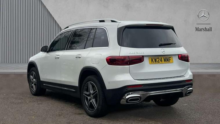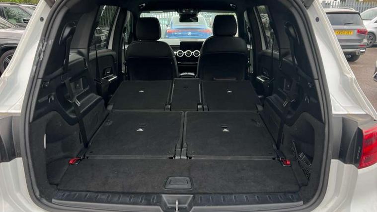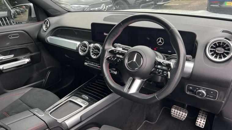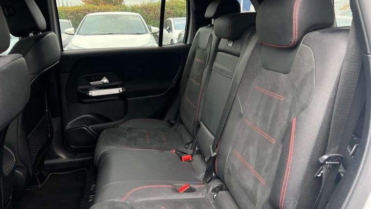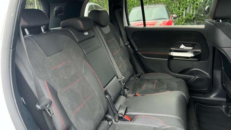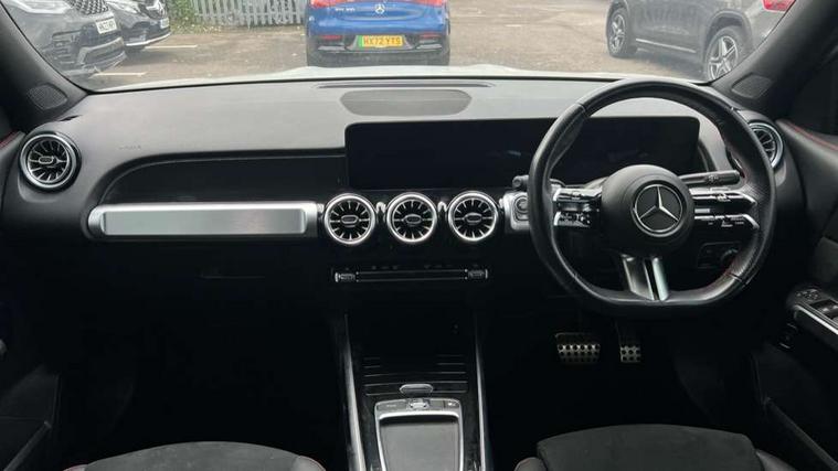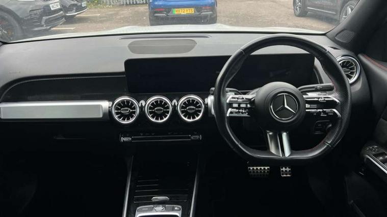 10.25 inch touchscreen central media display, 10.25" Digital instrument cluster display screen, 12 ultrasonic sensors in front and rear bumpers, 180 degree reversing camera with parking guidelines, Assisted parking: reversing backwards into perpendicular and parallel parking spaces, Attention assist - Monitors steering behaviour and long journey fatigue, Bluetooth connection, Brake pad wear indicator warning light, Car wash mode, Convenience opening and closing, Direct steering, DYNAMIC SELECT with a choice of driving modes (ECO, Comfort, Sport and Individual), ECO start/stop function, Engine start/stop button, Fluid level warning indicator for fuel, oil, coolant and washer fluid, Hard disk navigation, Hey Mercedes Voice activation, Lamp failure indicator, Lane keep assist, MBUX navigation premium, Mercedes me connect including emergency call system, accident recovery, breakdown and maintenance management, Mercedes me remote services, Outside temperature gauge, Owners manual and service booklet in English, Pre-installation of private car share, Preinstallation for parking damage notification, Radio aerial integrated into front and rear windshields, Remote boot closing, Service indicator (ASSYST), Smartphone integration with Apple CarPlay and Android auto, Speed limit assist, Tailgate, Trip computer in multifunction display with current consumption indicator, Ultrasound sensors - positioned in the handle of the tailgate, Wireless charging, Comfort suspension with ride height lowering, Rear axle multi-link, 1 USB-C port in the oddments compartment (Charge + Data transfer), 2 USB-C ports for the rear on the centre armrest (Charge only), 2 USB-C ports under the front centre armrest (Charge + Data transfer), DAB digital radio tuner, MBUX multimedia system, Mercedes Benz sound system (100 W) with 6 speakers, Pre installation for Mercedes Benz Link, Adaptive brake lights, Adaptive high beam assist, AMG front apron with front splitter in the colour of the vehicle with chrome trim element, AMG rear apron with visible tailpipe trim and chrome trim element, AMG specific/dual flow exhaust pipes in chrome (non-functional), Auto dimming rear view mirror, Beltline trim and window line trim strip in high gloss aluminium, Black grained side sill trim with chrome inlay, Body coloured door handles, Electric adjustable and heated door mirrors with integrated LED side indicators, Electric folding door mirrors, Front and rear electric windows, Headlamp assist automatic headlamp activation, Heat insulating dark-tinted glass starting from B-pillar, Heated glass rear windscreen + timer control, High level LED third brake light, Interior mirror with black reading lamps and frameless, LED high performance headlamps with integrated LED daytime running lights, LED tail lamp, Polished aluminium roof rails, Radiator grille as a diamond grille with chrome pins and central Mercedes star, Rain sensor windscreen wipers, Rear fog lamp, Rear side wing doors, Rear wiper, Single louvre in matt grey with chrome inserts and black highlights, Two visible tailpipe trim elements exhaust, Ultrasonic sensors - positioned in the front and rear bumpers, Wheel arch liners in the colour of the vehicle, 12V socket in the oddments compartment, 3 seat bench in 2nd row, 3 twin spoke flattened multifunction steering wheel in nappa leather - horizontal twin spoke in high gloss black, vertical twin spoke in silver chrome, 4 way adjustable lumbar support, 40:20:40 split folding rear seats, Air vents with silver chrome surrounds, AMG floor mats, AMG sports pedals with brushed stainless steel surfaces and black rubber studs, Automatic child seat recognition sensor, Black roof lining, Door handles with chrome inserts, Fluorescent jacket, Front and rear headrests, Front centre armrest with stowage, Galvanised steering wheel gearshift paddles in silver chrome, Handle recess lighting, Heated front seats, Height adjustable head restraints, Height/reach adjustable steering column, Interior lighting - 64 colour Ambient lighting, Luggage net on driver/front passenger seat backrest, Single front passenger seat, Sports seats, Stowage compartment with retractable cover, Sun visors with illuminated vanity mirrors, THERMATIC automatic climate control, Third row of seats for two people on rear seat, Twin front cup holders, Two outer rear seat isofix and top tether child seat fixing points, Easy pack tailgate, Interior lighting with light and sight pack - GLB, Seat comfort package - GLB, 3 rear 3 point seatbelts, Active bonnet pedestrain safety measure which detects an impact and raises bonnet by 65mm, Active brake assist includes forward collision warning system with autonomous braking, Adaptive brake assist with hold function and hill start assist, Airbags - kneebag for driver, Anti-lock braking system (ABS) with brake assist, Black seatbelts, Bonnet with power domes, Childproof locks manually operated for rear doors and electrically operated for rear power windows, Crash responsive emergency lighting, Curve dynamic assist, Driver and front passenger head and sidebags, Driver and front passenger windowbags, Dual stage driver and front passenger airbags, Electric parking brake, Electronic stability programme with acceleration skid control, Front and rear seatbelt reminder, Front brake callipers with Mercedes Benz lettering, Front passenger seat occupancy sensor, Perforated front brake discs, Tyre pressure monitoring system, Warning triangle and first aid kit, Guard 360 degree vehicle protection - Anti theft alarm system, tow away protection with visual, acoustic warning and alarm, Interior monitoring system, Keyless Go Access and drive authorisation system, KEYLESS-GO starting function, Remote central locking and crash sensor with emergency opening function, Thatcham category 1 alarm system with immobiliser and interior protection, Vehicle key with KEYLESS GO functionality, Carbon structure trim, 19" AMG 5 twin spoke light alloy wheels aerodynamically optimise