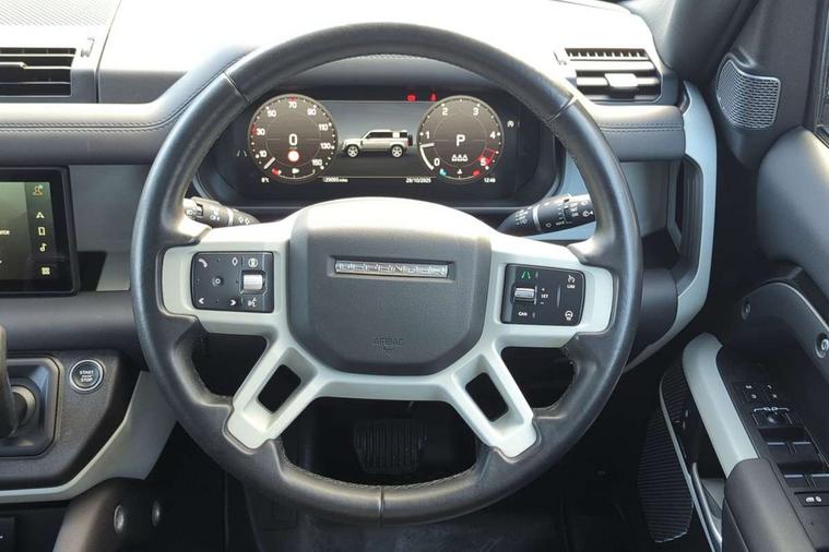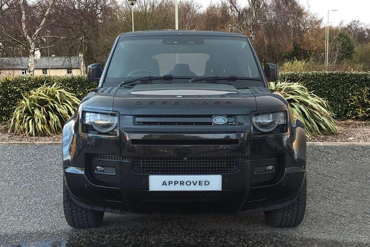 360 degree parking aid, 3D Surround Camera with 360 View, 180 Rear View, Front Traffic Detection, Forward Vehicle Guidance, Tow Hitch Assist and clear sight Ground View, Android Auto, Apple CarPlay, Assisted tailgate with soft close, Blind spot assist, Bluetooth system, Brake pad wear indicator, Clear exit monitor, Connected navigation pro, Cruise control + speed limiter, Driver condition monitor, Electric power assisted steering (EPAS), Interactive driver display, Lane keep assist, Push button start, Rear traffic monitor, Traffic sign recognition with adaptive speed limiter, Trip computer, Wade Sensing, 8 speed automatic transmission, Adaptive dynamics, All wheel drive system, Electronic air suspension, Twin speed transfer box, DAB Radio (Digital Audio Broadcasting), Pivi pro connected, Automatic headlight levelling, Automatic headlights, Body coloured roof, Centre high mounted stop light, ClearSight interior rear view mirror, Electric heated/power fold door mirrors with approach lights and auto dimming driver side, Electric windows with one touch open/close and anti-trap, Follow me home lighting, Front fog lights, Heated rear window with timer, Heated windscreen, Illuminated metal treadplates with brand name script, LED tail lights, Matrix LED headlights with signature DRL, Privacy glass, Puddle lights, Rain sensing windscreen wipers, Rear fog lights, Rear side wing doors, Rear wiper, Side hinged tailgate, Signature graphic (with interior storage), Sliding panoramic roof, Trailer stability assist, 12 way heated and cooled electric memory front seats with 2 way manual headrests, 12V power socket in loadspace, 3 seat bench in 2nd row, 40:20:40 folding rear seats with centre armrest, Alpine lights, Configurable cabin lighting, Durable rubber cabin flooring, Durable rubber loadspace flooring, Electric cabin pre conditioning, Electric reach + rake adjustable steering column, Footwell lights, Front centre console refrigerator compartment, Front passenger isofix child seat attachment, Grained Leather upholstery, Heated steering wheel, Leather gearshift, Light oyster morzine headlining, Loadspace cover, Loadspace Hook, Multifunction steering wheel, Overhead stowage for sunglasses, Premium cabin lighting, Rear headrests, Rear ISOFIX, Rear reading lights, Single front passenger seat, Standard interior, Standard leather steering wheel, Standard seat configuration, Storage glovebox, Sunvisors with illuminated vanity mirrors, Online pack with data plan - Defender, XS Edition exterior pack - Defender, 5 x 3 point seatbelts, ABS, Brake hold function, Cornering brake control (CBC), Cross car beam in light grey powder coat brushed finish, Customer configurable autolock, DSC - Dynamic Stability Control, EBD - Electronic brakeforce distribution, Electric parking brake (EPB), Emergency brake assist, Emergency braking, ESP + traction control, Front airbags with passenger seat occupant detector, HDC - Hill descent control, Hill launch assist, Low traction launch, Power operated child locks, Remote for (e-Call, Optimised assistance call, InControl app, Climate, beep and flash and door), RSC - Roll stability control, Seat belt reminder, TPMS (Tyre pressure monitoring system), Alarm, Immobiliser, Intrusion sensor, Keyless entry, Locking wheel nuts,