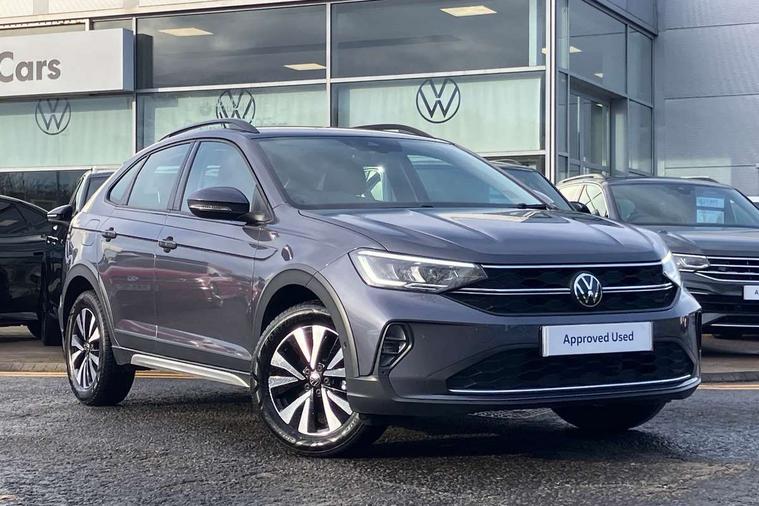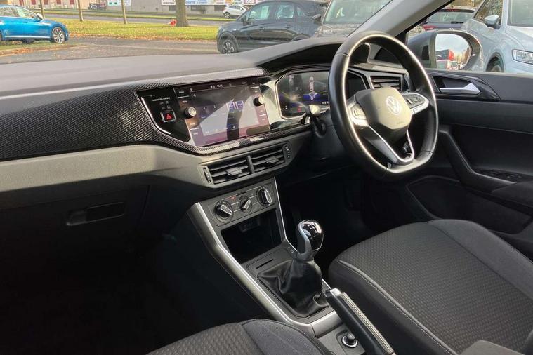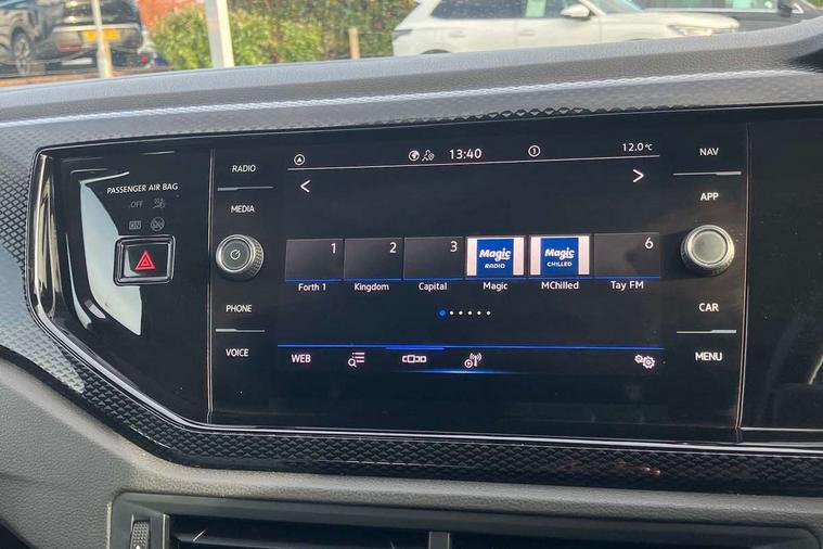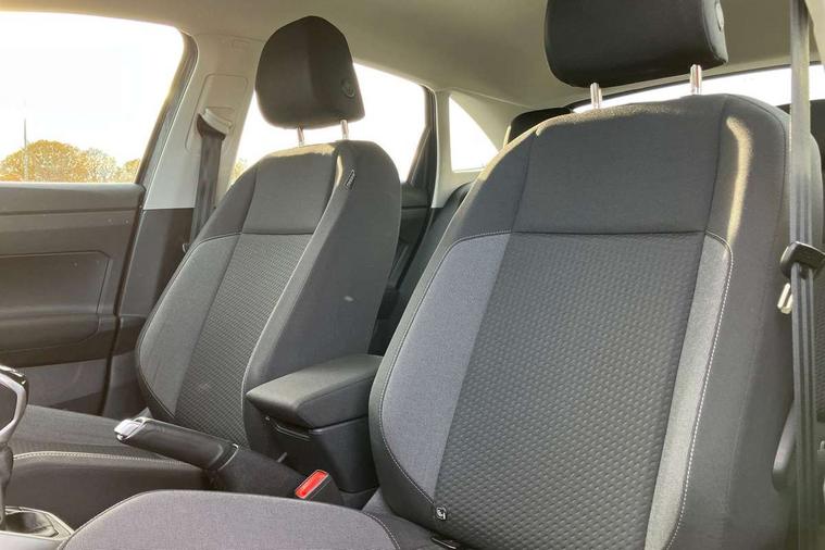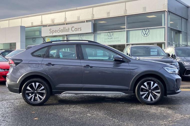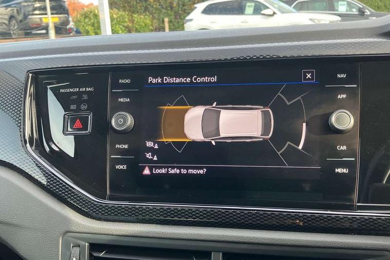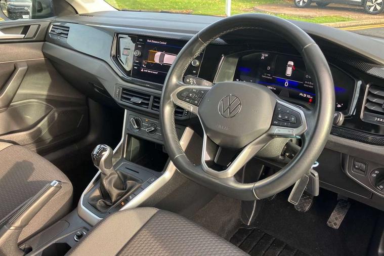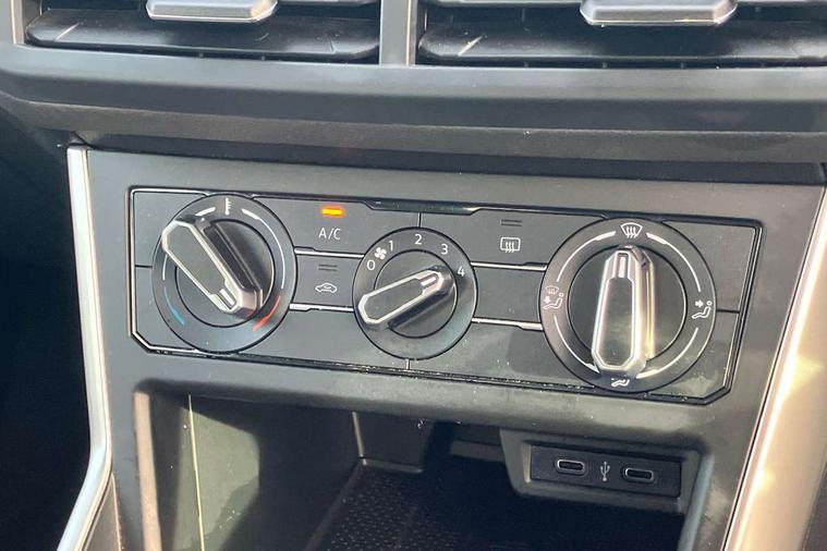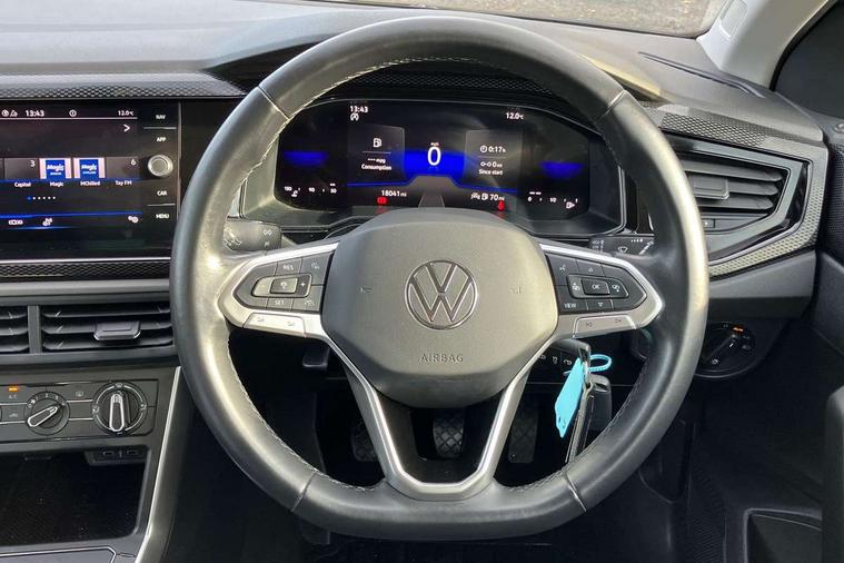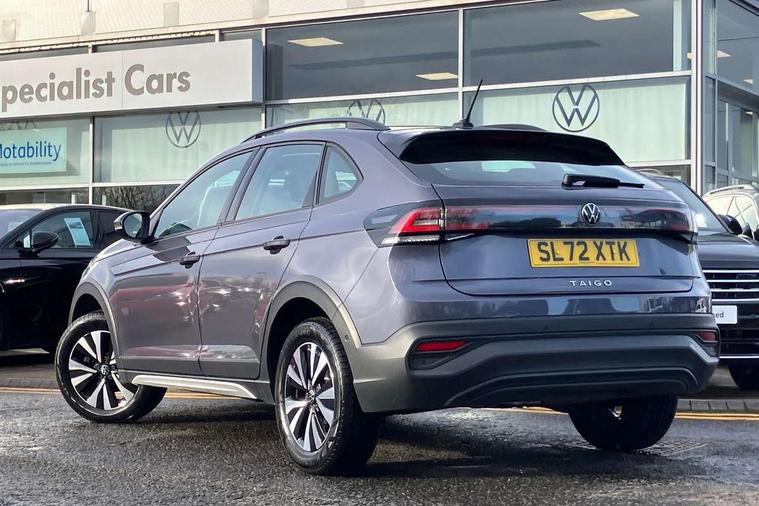 Driver alert system, e-Call (emergency call), Power Steering, Travel assist including emergency assist, Washer fluid level indicator, Wireless Charging including Bluetooth, Start-stop system with battery regeneration (recuperation - energy recovery during braking), WeConnect plus, Ambient lighting with logo projection, Aspherical driver's exterior mirror, Auto headlights, Body coloured bumpers, Body coloured exterior mirror housings and door handles, Electric windows, External USB type C socket and charging sockets, Front fog lamps with cornering function, Headlight range control, Heat insulating glass windscreen, LED headlamps, LED rear combination lamp, LED third brake light, Left convex exterior mirror, Power folding adjustable/heated exterior mirrors and front passenger exterior mirror lowering function, Rear fog light on one side, reversing light on both sides, Rear side wing doors, Rear wash/wipe with intermittent wipe setting, 'Slash/ Austin' Cloth upholstery, 12V socket in centre console, 2 front reading lights, 3 rear head restraints, 3 seat bench in 2nd row, Black carpets, Child seat anchor for child seat system i-Size, 2x top tether and child seat anchor in front on front passenger side, Door and side trim panels in titan black, Driver and front passenger seat height adjustment, Front centre armrest, Handbrake lever handle in leather, Height and reach adjustable steering wheel, Leather trimmed gear knob, Leather wrapped multifunction steering wheel, Luggage compartment floor, Luggage compartment light, Lumbar support for driver's and front passengers seat, Seat covers in titanium black, Single front passenger seat, Split folding backrest with centre armrest and unsplit rear seat bench, Storage compartment under front seats, Sun visors with illuminated vanity mirrors, Chrome Package - Taigo, Drivers assistance pack - Taigo, Light and Sight pack including High beam assist - Taigo, 2 x 3-point seatbelts/outer rear seats with ECE label, 3-point seat belts in front with pretensioner and height adjustment, 3-point seatbelt for centre rear seat, Driver and front passenger airbags with front passenger airbag de-activation, front side and curtain airbags, Driver and front passenger safety-optimised head restraints, Electronic stability control, Extended and predictive pedestrian/ cyclist protection, Front and rear disc brakes, Front curtain and side airbags with center airbag, Hill start assist, Manual rear child locks, Single tone horn, Tyre pressure loss indicator, Anti-theft alarm system with interior monitoring, backup horn, and towing protection, Anti-theft wheel bolts, Lava stone black gloss/matt decorative inserts in dash and front door panels, Low rolling resistance tyres,