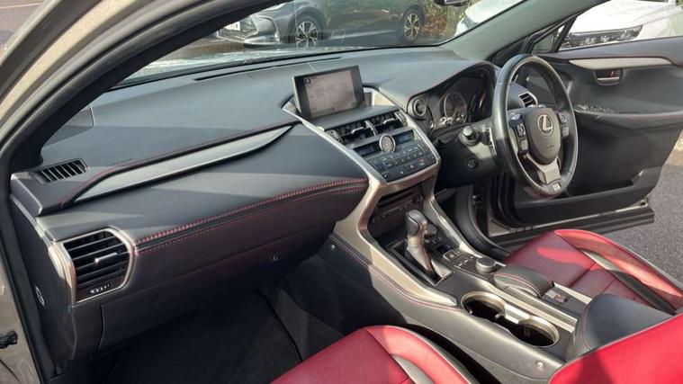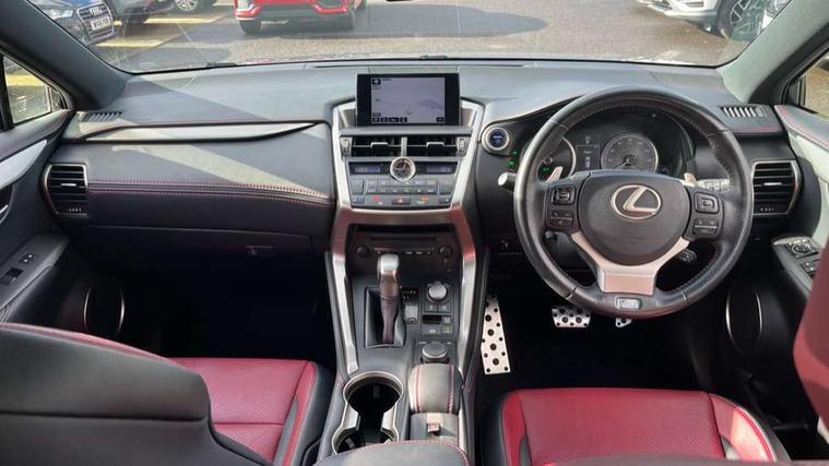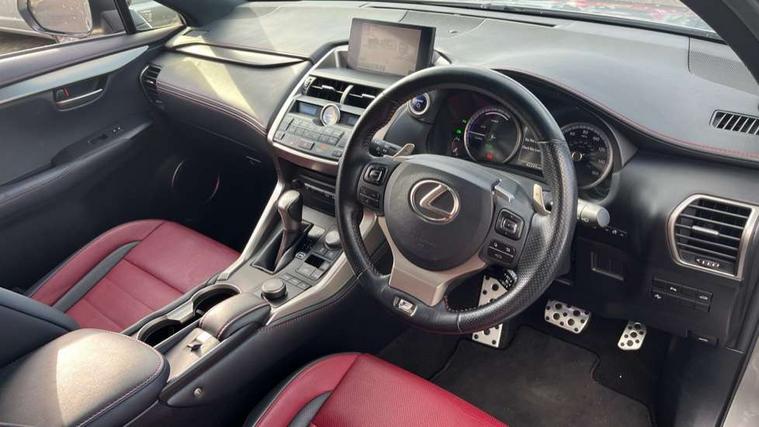 Adaptive cruise control + pre-crash system, Analogue clock, Bluetooth telephone connectivity, Drive mode selector, Front and rear parking sensors, Multimedia display, PAS, Push button starter, Reversing camera, Service interval indicator, Trip computer, Performance dampers, VDIM, Vehicle Stability Control (VSC), 8 Speakers, Aux input, DAB Digital radio, Radio/CD, Steering wheel mounted audio controls, USB connection, Black mirror caps, Body colour bumpers, Electric/heated/folding door mirrors, Electrochromatic rear view mirror, Front and rear electric windows, Headlight washers, Illuminated door handles, LED daytime running lights, LED front fog lights with static cornering light function, LED Headlights, Privacy glass, Puddle lights in exterior door handles, Rain sensor windscreen wipers, Rear wiper, Roof rails, Roof spoiler, Scuff plates, Shark fin roof aerial, 3 spoke leather steering wheel, 60/40 split folding rear seat, 8 way electrically adjustable front seats, Aluminium foot rest, Aluminium pedals, Black roof lining, Driver's lumbar support, Dual climate control air conditioning system, Electric adjustable steering column, Front armrests, Gearshift paddles, Heated front seats, Isofix child seat attachment, Leather gear lever, Leather upholstery, Rear armrest, Rear headrests, Convenience pack - NX, 3x3 point rear seatbelts, ABS, Active front headrests, Curtain airbags, Driver/Front Passenger airbags, Driver/front passenger side airbags, EBD + Brake Assist, Electronic parking brake, Front/rear seatbelt pre-tensioners, Hill start assist, Passenger airbag cut-off device, Rear passenger side airbags, Traction control, Tyre pressure warning, Alarm, Immobiliser, Remote central double locking, Smart keyless entry, Speed sensitive power door locks, Carbon interior trim, Space saver spare wheel,