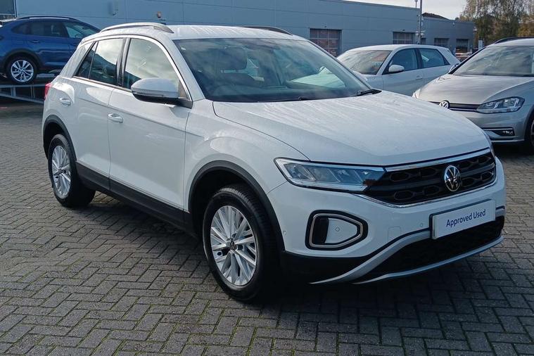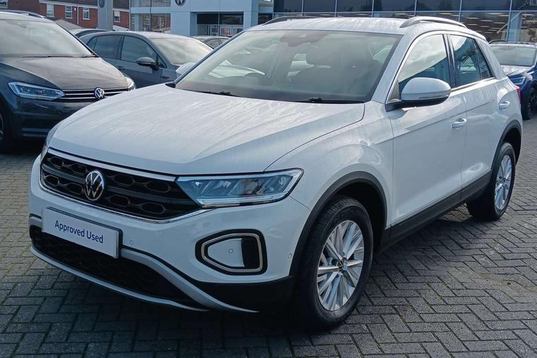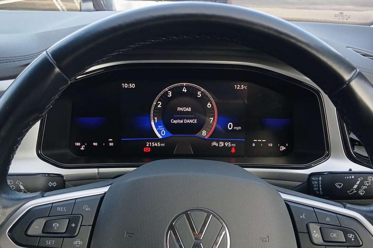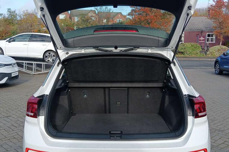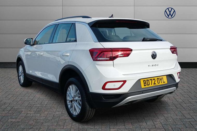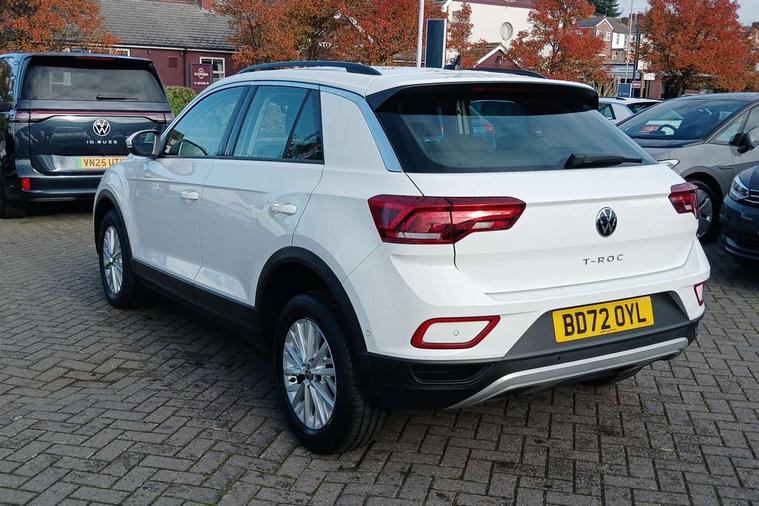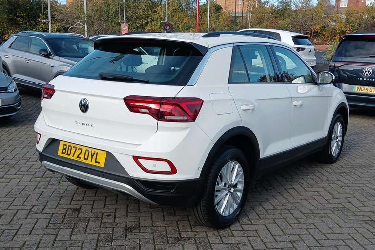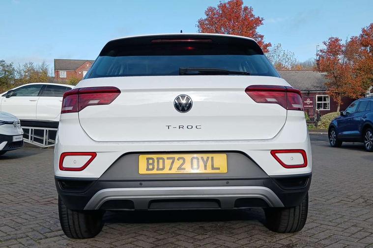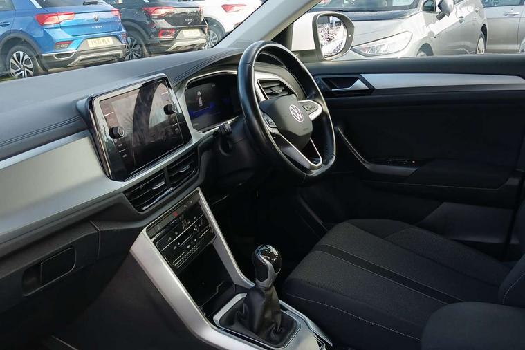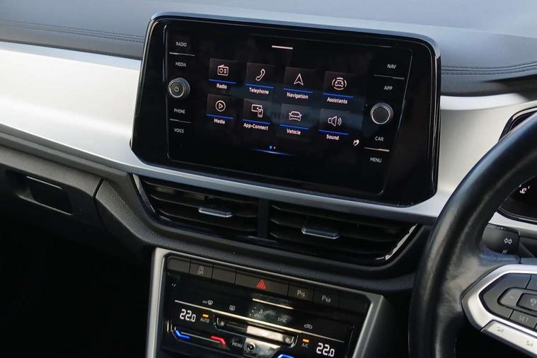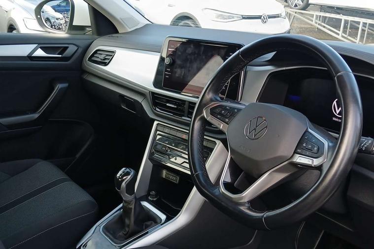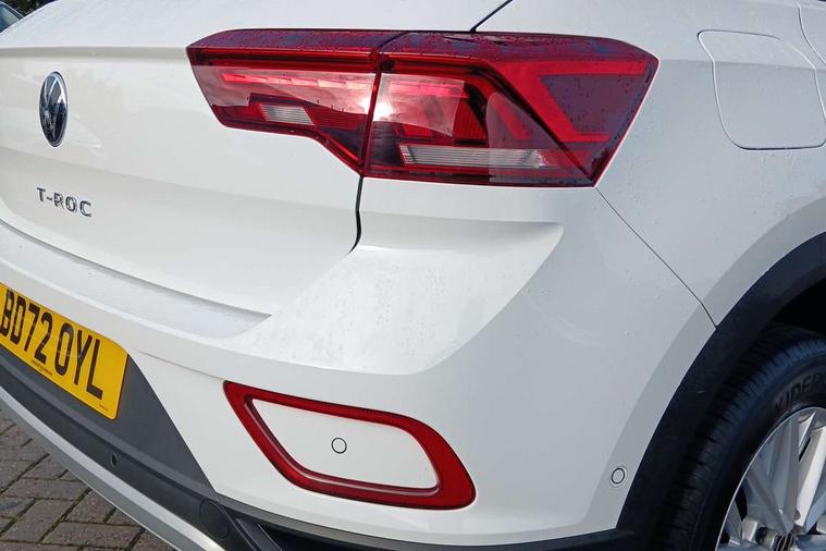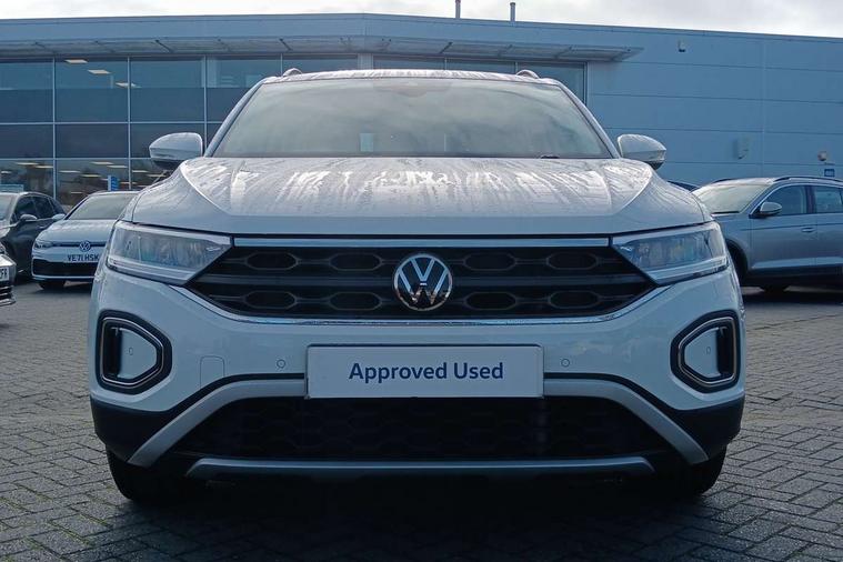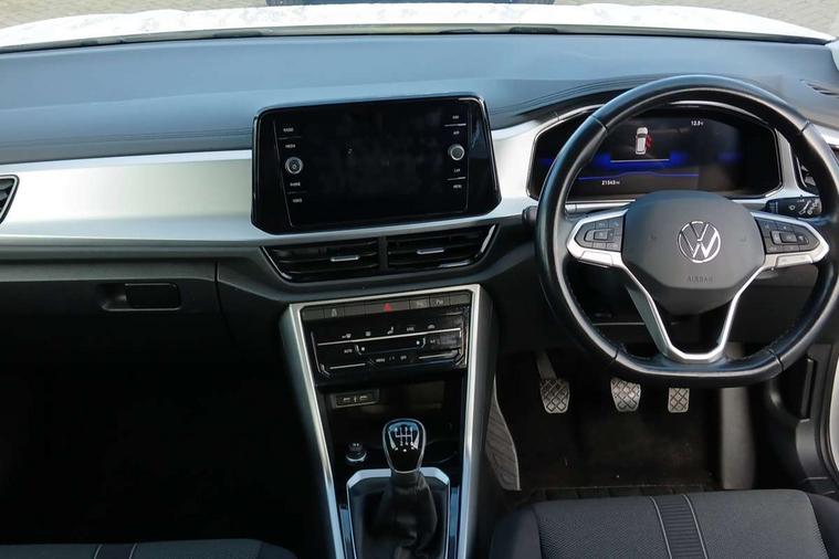 Bluetooth mobile phone interface, Driver alert system with fatigue detection, Driver tips and journey analysis, Emergency call service, Lane keeping system Lane Assist, Modified key software - reduce switch off time for key status change to Long no motion, Online services, Park assist including front and rear parking sensors, Power assisted speed sensitive steering, Service interval indicator, Tailgate/trunk lid release from outside, Think blue trainer driver tips and journey analysis, Warning sound and light for front seatbelts unfastened, Wireless app connect, Battery regeneration during braking, Front shock absorption, Rear shock absorption chassis with increased ride height, Start/stop function with battery regeneration, DAB Digital radio, Diversity antenna for FM reception, Front and rear 6 speakers, Music playback - MP3, WMA and AAC files, Premium USB cable in choice of either Apple or Android smartphone compatibility, SD card slot, Simultaneous pairing of 2 compatible mobile devices, Title and cover art display, We Connect and We Connect Plus functionality, 3rd brake light, Auto dimming interior rear view mirror, Automatic hazard lights activation under emergency braking, Automatic headlight control with LED separate daytime running lights with coming/leaving home function, Black roof rails, Body coloured bumpers and radiator grille with chrome trim and front fog lamps with chrome bezel, Body coloured exterior mirror housings and door handles, Extended roof spoiler, Exterior mirrors aspherical on driver side, convex on front passenger side, External USB type C socket and charging sockets, Front windscreen wiper with intermittent wipe and 4 position delay, Heated rear window, LED Headlights, LED rear combination lamps, LED rear number plate lights, LED tail lamp rear comination lamps, Power windows with comfort operation and circuit breaker, Rain sensor, Rear exhaust tailpipe, Rear fog light on one side and reversing lights on both sides, Rear side wing doors, Rear wash/wipe with intermittent wipe setting, Remote electrically foldable door mirrors, puddle lights and reverse activated passenger's door mirror, 12V power socket in centre console, 3 rear head restraints, 3 seat bench in 2nd row, 4 load lashing points in luggage compartment, Air care climatronic air conditoning system with active combination filter and 2-zone temperature control, Ambient lighting with mirror logo projection, Cloth upholstery, Door and side trim panel in cloth, Drawer under drivers seat, Driver/front passenger seat height adjustment, Front centre armrest, Front comfort sports seats, Front cupholders x 2, Front reading light, Instrument lighting, white adjustable panel illumination, Interior light delay, Isofix child seat preparation, Leather gearshift handle, Load-through provision with cup holder when folded down ('Unsplit rear seat bench, split folding backrest, with centre armrest), Luggage compartment lighting, Lumbar support for driver's and front passengers seat, Non-folding front passenger seat backrest, Single front passenger seat, Storage compartment in left and right luggage area, Storage compartment in rear doors, Storage compartments in driver and front passenger doors, Sunvisors with illuminated vanity mirrors, Variable boot floor, height adjustable and removable, Driver assistance pack without proactive passenger protection - T-Roc, 3 point height adj front seatbelts + pretensioners, 3 point seatbelts in outer rear with ECE label, ABS, Child locks on rear doors, Driver and front passenger airbag with front passenger airbag deactivation, Driver and front passenger safety-optimised head restraints, Drivers seatbelt reminder, Electronic parking brake, Electronic Stability Control (ESC) inc EDL (Electronic Differential Lock) and ASR (Traction Control), Front and rear passengers curtain airbag system including front side airbags, Front assist with city emergency braking and pedestrian monitoring, Front disc brakes, Front seat side impact airbags, Hill start assist, Predictive pedestrian protection, Rear disc brakes, Single tone horn, Tyre pressure loss indicator, Volkswagen roadside assistance, Alarm with interior protection, Anti-theft alarm system with interior monitoring, backup horn, and towing protection, Remote central locking with SAFELOCK, radio remote control with 2 remote control folding keys, Pewter matt decorative inserts for intrument panel, centre console and door panels at the front, Trims for alloy wheels,