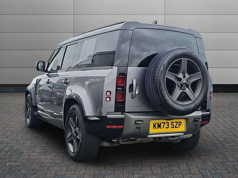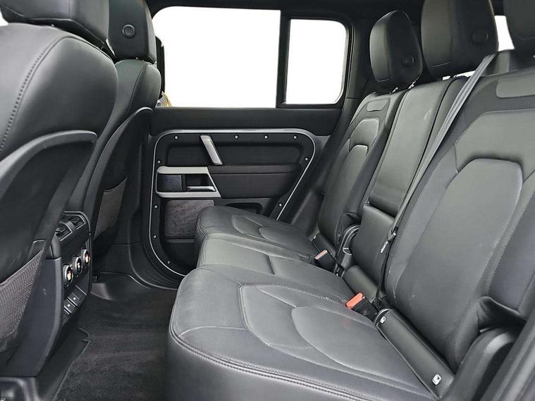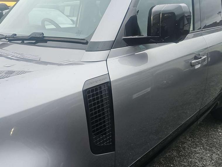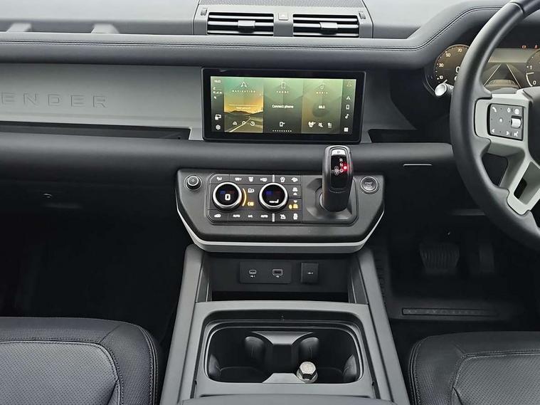 360 degree parking aid, 3D Surround Camera with 360 View, 180 Rear View, Front Traffic Detection, Forward Vehicle Guidance, Tow Hitch Assist and clear sight Ground View, Adaptive cruise control, Android Auto, Apple CarPlay, Assisted tailgate with soft close, Blind spot assist, Bluetooth system, Brake pad wear indicator, Clear exit monitor, Connected navigation pro, Driver condition monitor, Electric power assisted steering (EPAS), Interactive driver display, Lane keep assist, Push button start, Rear traffic monitor, Traffic sign recognition with adaptive speed limiter, Trip computer, Wade Sensing, 8 speed automatic transmission, Adaptive dynamics, All wheel drive system, Twin speed transfer box, DAB Radio (Digital Audio Broadcasting), Meridian 400w sound audio system with 11 speakers and subwoofer, Pivi pro connected, Automatic headlight levelling, Automatic headlights, Black exposed rear recovery eyes, Centre high mounted stop light, Electric heated/power fold door mirrors with approach lights and auto dimming driver side, Electric windows with one touch open/close and anti-trap, Follow me home lighting, Heated rear window with timer, Heated windscreen, LED tail lights, Privacy glass, Puddle lights, Rain sensing windscreen wipers, Rear fog lights, Rear side wing doors, Rear wiper, Side hinged tailgate, Trailer stability assist, X-Dynamic badge, 12V power socket in loadspace, 2 seat bench in 3rd row, 3 seat bench in 2nd row, Alpine lights, Configurable cabin lighting, Durable rubber cabin flooring, Durable rubber loadspace flooring, Footwell lights, Front passenger isofix child seat attachment, Loadspace cover, Loadspace Hook, Multifunction steering wheel, Overhead stowage for sunglasses, Premium cabin lighting, Rear headrests, Rear ISOFIX, Rear reading lights, Single front passenger seat, Storage glovebox, Sunvisors with illuminated vanity mirrors, Online pack with data plan - Defender, 7 three point seatbelts, ABS, Brake hold function, Cornering brake control (CBC), Customer configurable autolock, DSC - Dynamic Stability Control, EBD - Electronic brakeforce distribution, Electric parking brake (EPB), Emergency brake assist, Emergency braking, ESP + traction control, Front airbags with passenger seat occupant detector, HDC - Hill descent control, Hill launch assist, Low traction launch, Power operated child locks, Remote for (e-Call, Optimised assistance call, InControl app, Climate, beep and flash and door), RSC - Roll stability control, Seat belt reminder, TPMS (Tyre pressure monitoring system), Alarm, Immobiliser, Intrusion sensor, Keyless entry, Locking wheel nuts,