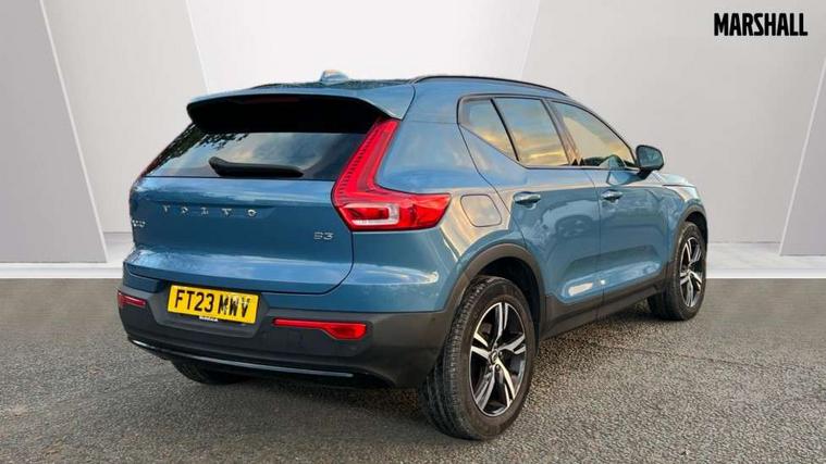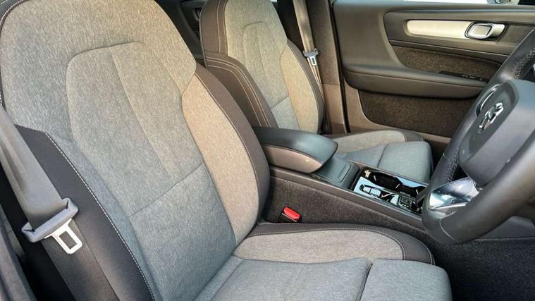 12.3" Progressive Driver Display, 360 degree surround view parking camera with side proximity sensors, 9" centre console portrait touch screen, Adjustable steering wheel force, Bluetooth hands free telephone kit, Cruise control, E-call, Front park assist, Google automatic services - Nav with google maps, apple carplay/android auto, voice recognition with google assistant, Hands free power tailgate, Lane keep assist with driver alert control, Oncoming Lane Mitigation, Rear park assist, Speed limiter, Speed sensitive steering, Wireless/Inductive Mobile Phone Charging, Dynamic chassis, DAB Digital radio, High performance sound, 8 speakers/250W, front USB and 2 rear type C USB, Steering wheel mounted remote controls, Adaptive brake lights with high level LED brake lights, Auto dimming feature for exterior door mirrors, Auto dimming interior mirror, Automatic headlamp levelling, Automatic LED Headlights + Active high beam incorporating daytime running lights, Front aluminium tread plates, Front and rear electric windows, High gloss black front and rear skid plate, High gloss black mesh front grille with high gloss black surround, High gloss black window trim, Home safe and approach lighting, Integrated roof rails in high gloss black, LED front fog lights, Puddle lights, Rain sensor with automatic windscreen wiper activation, Rear side wing doors, Rear wiper, Roof antenna, Roof spoiler, Visible VIN plate, 12V socket in front tunnel console and luggage compartment, 2-Zone electronic climate control with CleanZone air quality system and pollen filter, 3 seat bench in 2nd row, 3 Spoke tailored steering wheel with chrome trim, 60/40 versatile split folding rear seat, A-pillar parking ticket holder, Centre console cupholders and storage, Flexible load floor and grocery bag holder, Floor mats, Front door pocket, front cupholder, ambient front door, rear reading, rear courtesy, instrument panel and tailgate lighting, Front footwell illumination, Front headrests, Front reading light and theatre lighting, Front seat cushion extensions, Front tunnel pocket, Glovebox bag hook, Heated front seats, Height adjustable passenger seat, Height/reach adjustable steering column, High gloss centre tunnel deco, Illuminated glovebox, Illuminated luggage compartment, Illuminated vanity mirrors, Integrated waste bin, Isofix attachments on outer rear seats, Load protection net, Multi directional lumbar support, Power driver seat with memory + exterior mirrors memory, Rear armrest / integral cup holders / storage tray, Rear headrests, Single front passenger seat, Underfloor cargo storage, Climate pack without heated front seats - XC40, 3x3 point rear seatbelts, City safety with steering support with Pedestrian + cyclist + front collision warning with full auto brake and rear auto brake, Drivers knee airbag, Dual stage driver/passenger airbags, Electronic parking brake with auto hold, First aid kit, Front and outer rear seatbelt reminder and pretensioners, Front seats SIPS airbags, Hill descent control, Hill start assist, Inflatable curtain, Passenger airbag cut-off device, Power child locks on rear doors, Road sign information display, Run off Road Mitigation, Run off Road Protection, SIPS (Side Impact Protection System), Slippery road and hazard light alert, Stability and Traction Control with Spin control, Engine Drag Control and Corner Traction Control, Tyre pressure monitoring system, Vehicle deceleration control with Anti-lock Brake System, Electronic Brake Distribution and Emergency Brake Assist, Warning triangle, WHIPS whiplash protection system - front, Anti-theft alarm including immobiliser/volume sensor + level sensor, Key integrated remote control central locking + fuel flap with deadlocking system and auto open/close power windows, Keyless drive includes keyless entry and keyless start, Locking wheel nuts,