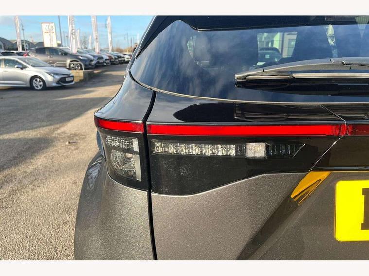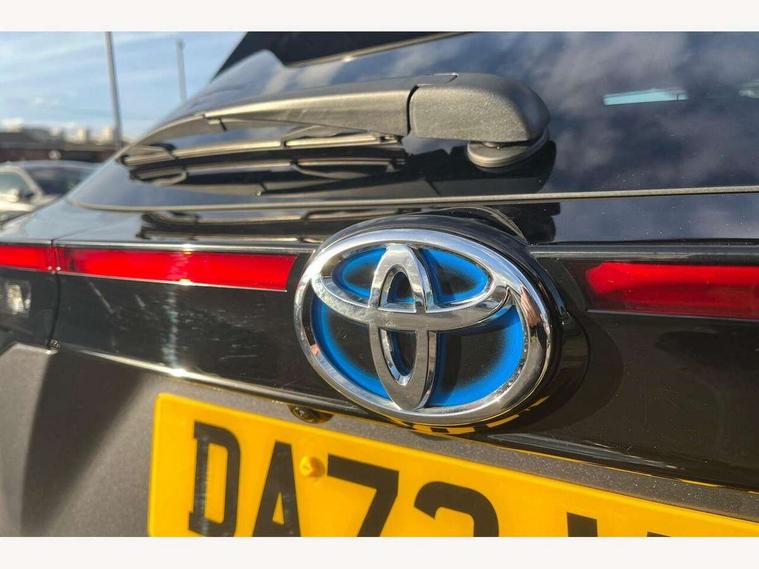 7" Multi information display screen, 8" Toyota touch 2 multimedia system with Smartphone integration with Apple CarPlay and Android auto, Adjustable speed limiter, Bluetooth connectivity, Driver attention alert system, eCall emergency system, Electric power steering, Full range intelligent adaptive cruise control, Hybrid system indicator, Key reminder warning, Lane trace assist, Multimedia, audio, telephone and voice recognition switches on steering wheel, My T Connected services, Pre-collision system enhanced with emergency steering assist, Reversing camera, Road sign assist - RSA, Steering assisted vehicle stability control, 6 speakers, DAB Digital radio, USB connection, 3rd brake light, Acoustic windscreen glass, Aluminium roof rails, Anti-jam protection on power windows, Auto high beam [AHB] with on/off switch, Automatic headlights, Black lower front grille, Black Shark-fin antenna, Black upper front grille, Black wheel arch mouldings, Body colour door handles, Body colour front bumper, Body colour rear bumper, Electric adjustable heated door mirrors, Follow me home headlights, Front and rear electric windows with auto up/down function, Front intermittent wipers, Headlight cut off reminder, Indicators integrated on door mirrors, Intermittent rear wiper, LED daytime running lights guide, LED front fog lights, LED front light guide, LED Indicators, LED projector headlights, LED rear light guide, Manual headlight levelling, Manually retractable door mirrors, Noise reduction layer on windscreen, Privacy glass, Rain sensor, Rear LED lights with sequential indicators, Rear side wing doors, Rear spoiler, Rear window defogger, 12v power outlet - front, 2x Rear coat hooks, 3 seat bench in 2nd row, 3 spoke leather steering wheel, 40:20:40 split folding rear bench seat, Adjustable speed limiter switch on steering wheel, Auto air conditioning, Black roof lining, Boot light, Central armrest, Centre console in light blue ambent lighting, Driver and front passenger personal lights, Fabric door trim, Fabric upholstery, Footwell in light blue ambient lighting, Front console box, Front cup holders, Front head restraints, Glovebox, Height adjustable driver's seat, Height adjustable front passenger seat, Hooks for luggage holding belts, ISOFIX child restraint system, Lane departure alert switch on steering control, Leather gearshift, Light blue ambient lighting on front doors, Manual telescopic and tilting steering wheel, Mirror on driver and passenger sun visor, Pollen air filter, Rear cup holders, Rear head restraints, Single front passenger seat, Soft tonneau cover, 3x3 point rear seat belts, ABS+EBD+Brake assist, Driver and passenger central airbags, Driver and passenger front airbags, Driver and passenger side airbags, Electronic parking brake, Emergency brake light system (EBS), Front seat belt reminder, Hill start assist control (HAC), Passenger airbag on/off switch, Pre-collision system with pedestrian and cyclist detection, Rear door child safety locks, Rear passenger side airbags, Rear seat belt reminder, Traction control, Tyre pressure warning system, Immobiliser, Intrusion alarm, Keyless smart entry with push button start, Power door locks, Power passenger window lock, Remote door lock, Tyre repair kit,