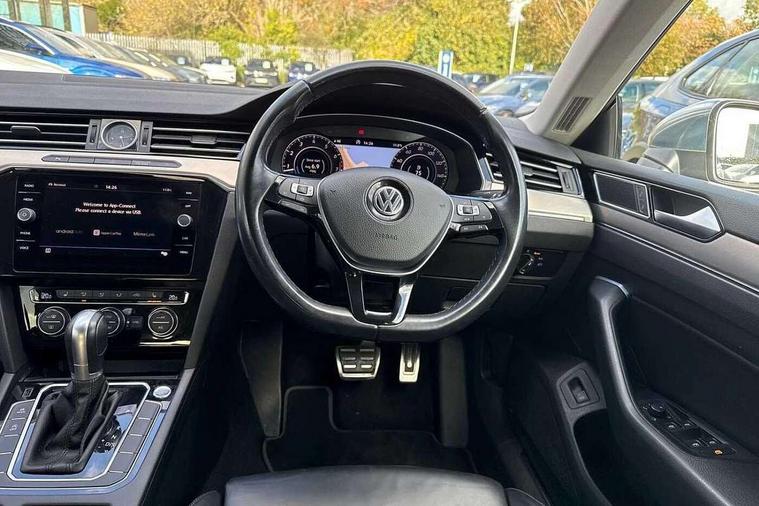 App-Connect, 'Lights On' Reminder warning buzzer, Active information display, Adaptive Cruise Control with pedestrian detection and speed limiter, Analogue clock, Door/tailgate open warning lights, Driver alert system, Driver profile selection, Lane assist, Press and drive key, Progressive power assisted steering, Remote tailgate release, Rev counter with fuel gauge, Service interval indicator, Touch screen display, Traffic message channel (TMC), Warning buzzer and light for front seatbelts unfastened, CD/MP3/WMA, USB and SD card reader, aux-in, DAB Digital radio, MDI with USB/iPod connection cables, Volkswagen media control, Auto dimming driver's door mirror, Auto dimming rear view mirror, Automatic activation of hazard warning lights, Automatic coming/leaving home lighting function, Automatic headlights with dusk sensor, Body colour bumpers, Body colour door handles, Chrome headlight surround, Chrome louvres in grille, Chrome side window surrounds, Dynamic light assist, Electric adjustable/heated/folding door mirrors, Front and rear electric windows, Front fog lights, Headlight range control, Headlight washers, Heated rear window, Heated windscreen washer jets, High beam assist, LED daytime running lights, LED headlights with dynamic curve lighting, LED rear lights, Matt chrome door mirrors, Rain sensor, Reverse activated kerb-view adjustment on passenger's door mirror, Side skirts with chrome inserts, Stainless steel door sill protection, Tinted rear windows, Trailer stability assist, Windscreen wipers/ intermittent wipe + 4 position delay, 12V Accessory socket in centre console, 12v socket in front centre armrest storage compartment, 2 bag hooks in luggage compartment, 3 rear head restraints, 3 spoke multi-function leather steering wheel, 3 Zone electronic climate control with automatic air recirculation, 60/40 split folding rear seat, Aluminium finish interior door handles, Ambient lighting, Cover for storage compartment in centre, Front + rear carpet mats, Front and rear interior lighting with delay and dimming function, Front centre armrest with storage box and rear air vents, Front cupholders x 2, Front footwell lights, Front seat and rear pockets, Gearshift paddles, Heated front seats, Height adjustable head restraints, Height/reach adjust steering wheel, Isofix system on outer rear seats, LED reading lights, Load through provision, Lockable, illuminated, cooled glovebox, Luggage compartment lighting, Mistral headliner, Nappa leather upholstery, Rear armrest with 2 cupholders, Removable luggage cover, Stainless steel foot rest, Stainless steel pedals, Storage box in luggage compartment, Storage compartment in driver's door, Storage compartment in passenger's door, Storage compartment in rear doors, Sunvisors with illuminated vanity mirrors, USB charging point, 3 rear 3 point seatbelts + pretensioners, ABS+EBD+Brake assist, Active bonnet, Driver/Front Passenger airbags, Driver/Front passenger WOKS head restraints, Drivers knee airbag, Electronic parking brake with auto hold, ESP with EDL + ASR, Front and rear curtain airbags, Front and rear seat side impact airbags, Front assist including city emergency braking, Front passenger airbag deactivation, Height adjustable front 3 point seatbelts + pretensioners, Hill start assist, Proactive passenger protection system, Two tone horn, Tyre pressure warning, Warning triangle, Alarm with interior protection, Anti-theft wheel bolts, Electronic engine immobiliser, Remote central locking with 2 remote folding keys, Piano black centre console, Full size alloy spare wheel,