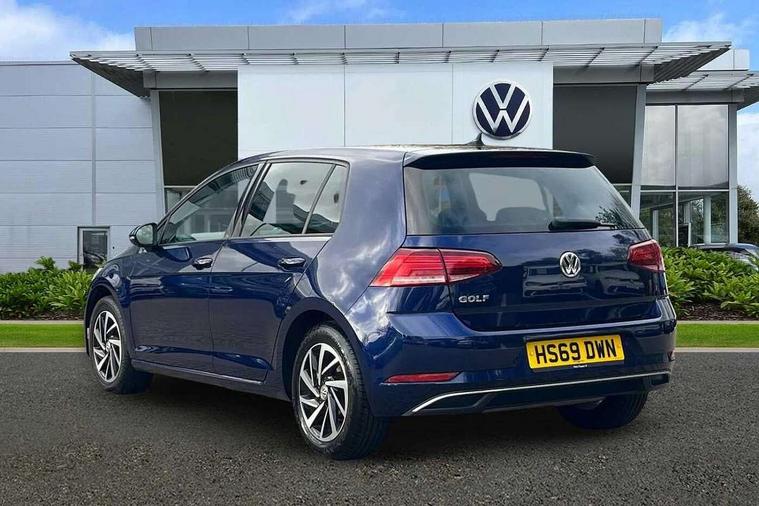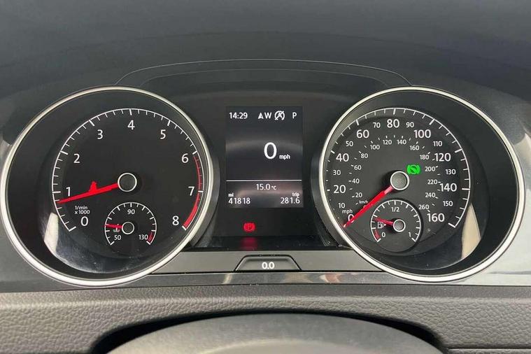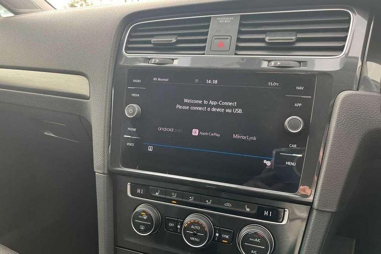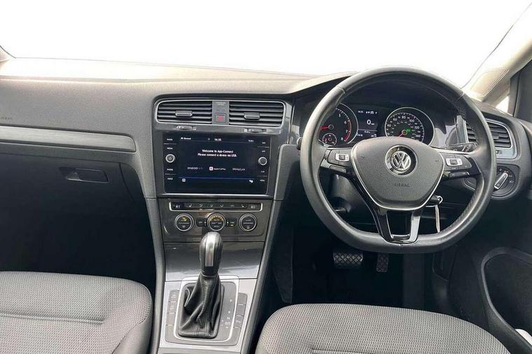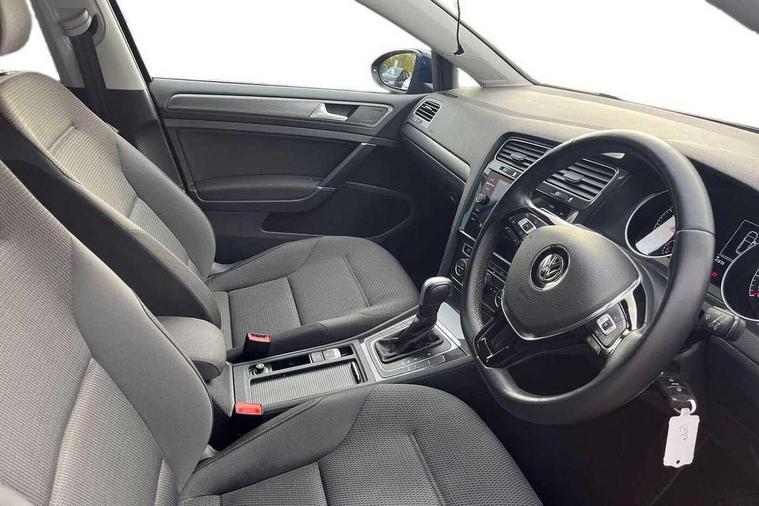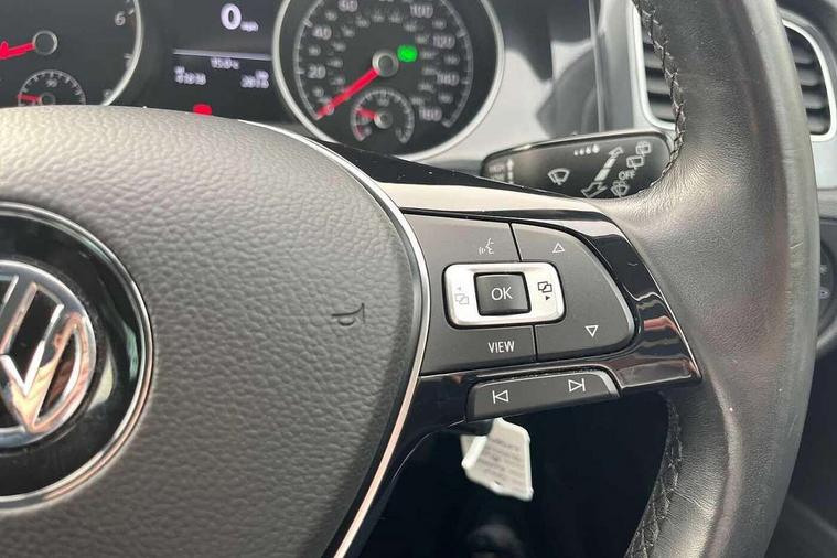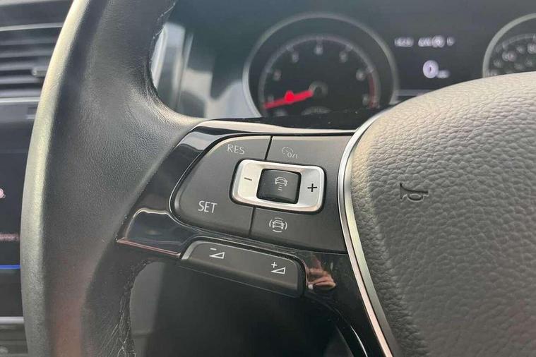 'Lights On' Reminder warning buzzer, ACC - Adaptive cruise control with front assist, forward collision warning, distance monitoring, city emergency brake and speed limiter, Bluetooth telephone and audio connection for compatible devices, Brake pad wear indicator warning light, Driver alert system, Driving Mode Selection with four preset modes - Eco, normal, sport or individual modes, Multifunction computer with visual gear change recommendation for fuel consumption, Power assisted speed sensitive electro-mechanical steering, Push tank flap, Speed limit display, Speedo, rev counter, electronic odometer, trip, service interval display, exterior temperature and fuel gauge, Stop/start system, Think blue trainer driver tips and journey analysis, Warning buzzer and light for front seatbelts unfastened, Battery regeneration during braking, XDS electronic differential lock, Composition media system, DAB Digital radio receiver, Driver Personalisation profile selection, MP3/WMA compatability, Multi device interface (MDI) via USB connection, Premium USB cable in choice of either Apple or Android smartphone compatibility, SMS Functionality, Title and cover art display, USB and SD card connectivity, Volkswagen media control, Black front air intake and radiator grille with chrome insert, Black rear diffuser, Body colour bumpers, Body colour door handles, Body colour door mirrors with integrated indicators, Dusk sensor + automatic driving lights, Electric front windows, Electric rear windows, Electrically adjustable and heated door mirrors, Fully galvanised body, Heated rear windscreen, High level 3rd brake light incorporating LED Technology, LED front fog lights with static cornering light function, Range adjustable headlights via infotainment system with LED daytime running lights, Rear fog lamp, Rear number plate lights incorporating LED technology, Rear tinted glass 65% light absorbing from B pillar backwards, Rear window aerial, Rear window wash/wipe with intermittent wipe, Reflectors in all doors, Tailgate with integrated rear roof spoiler, Windscreen wipers/ intermittent wipe + 4 position delay, 12V socket in luggage compartment, 3 rear headrests, 4 load lashing points in luggage compartment, 60/40 split folding rear seat backrest, Bag hook in luggage compartment x 2, Climate control - 2 zone electronic air conditioning with automatic air recirculation and allergy filter, Cooled glovebox, Cover for storage compartment in centre, Dust/pollen filter, Front and rear reading lights X 2, Front centre armrest with storage compartment and two rear air vents, Front seat back storage pockets, Grab handles front x 2, rear x 2 with integrated coat hooks, Height and reach adjustable steering wheel, Illuminated vanity mirrors, Instrument lighting white adjustable panel illumination, Interior light delay, Isofix preparation for 2 rear child seats, Load through provision with rear centre armrest and cupholders x2, Luggage compartment lighting, Overhead storage box, Pearl grey headlining, Storage box in luggage compartment, Storage compartment in roof console with cover, Storage compartments in centre console, Storage compartments in front doors, Storage compartments in rear doors, Stowable luggage compartment cover, Sun visors, Variable boot floor, height adjustable and removable, Convenience Pack - Golf, Mirror pack - Golf, Winter pack - Golf, 3 rear three point seatbelts, Airbags - Driver's and front passenger's, curtain airbag, Driver's knee, front side impact and passenger's airbag deactivation switch, Anti-lock Braking System (ABS) with Hydraulic Brake Assist (HBA), Automatic post collision braking system, Child locks on rear doors, Driver/Passenger optimised head restraints, Electronic parking brake with auto hold, Electronic stability control (ESC) including Electronic differential lock (EDL) and ASR (Traction control) with deactivation via infotainment system, Front ventilated disc brakes and rear disc brakes, Pre crash preventive occupant protection, Three point height adjustable front seatbelts with tensioners, Tyre pressure loss indicator, Alarm with interior protection and deactivation via infotainment system, Electronic engine immobiliser, Brushed dark silver decorative inserts in dash and door panels, Chrome plated air vent surround, Chrome-plated light switch surround, Polar night black decorative inserts in centre console, Steel space saver spare wheel,