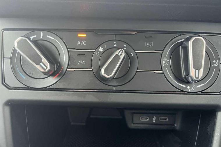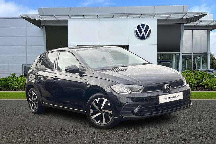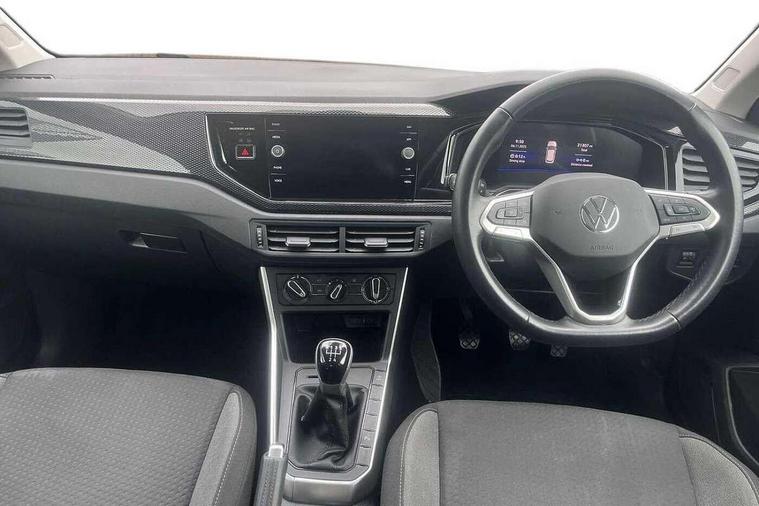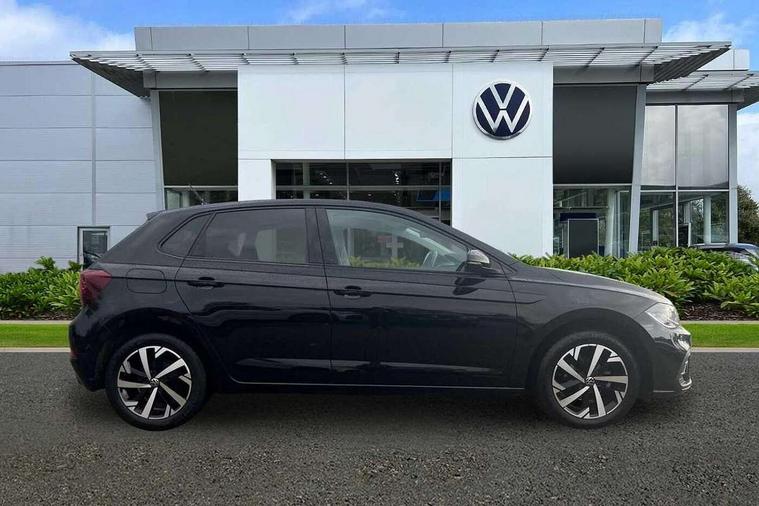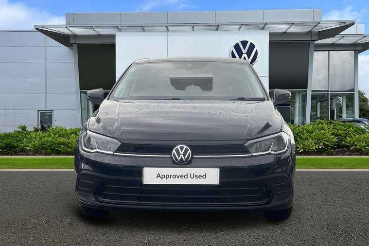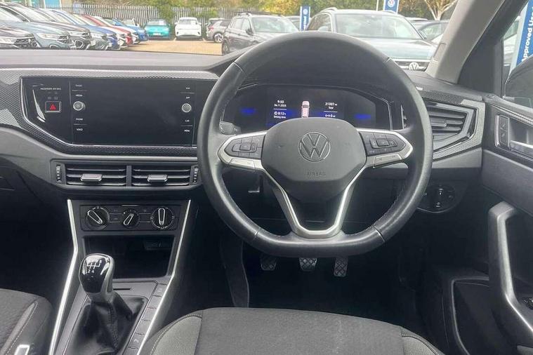 Adaptive cruise control without follow-to-stop and speed limiter, Bluetooth mobile phone interface, Driver alert system, Emergency call service, Front assist system, Power assisted speed sensitive steering, Preparation for We connect and We connect plus, Speedo and rev counter, electronic odometer, trip, service interval display and fuel gauge, Standard rear axle, Travel Assist - Lane keeping system and traffic jam assist, Travel assist including emergency assist, Trip computer, Warning signal and warning light for front and rear seatbelts not fastened, Washer fluid level indicator, Wireless app connect, Front wheel drive, Rear shock absorpion, Start-stop system with battery regeneration (recuperation - energy recovery during braking), DAB Digital radio, Diversity antenna for FM reception, Front and rear 6 speakers, Automatic dimming interior rear view mirror, Body colour bumpers, Body colour door handles, Body colour door mirrors, Electric front windows, Heat insulating darkened glass in side and rear windows, Heat insulating glass windscreen, Power folding adjustable/heated exterior mirrors and front passenger exterior mirror lowering function, Rain sensor, Rear electric windows, Rear fog light, Rear side wing doors, Rear windscreen washer and wiper with interval delay, Third brake light, 12V power socket in centre console, 2 front and 2 rear reading lights, 2 USB-C ports in the front, 2 USB-C charging sockets on the center console in the rear, 3 rear head restraints, 60/40 split folding rear seat and rear seat bench not split, Chrome plated radiator grille inserts, air vent surrounds and light switch surrounds, Door and side trim panel, Driver and front passenger seat height adjustment, Driver/passenger sunvisors with illuminated vanity mirrors, Front centre armrest, Front seat backrest storage pockets, Front standard seats, Handbrake lever handle in leather, Hartley/Thomas cloth upholstery, Headliner in recycled material, Isofix child seat preparation easy-fit (for two outer rear seats, and front passenger seat) compatible with I-size, Leather trimmed gear knob, Luggage compartment cover, Luggage compartment floor, Luggage compartment lighting, Multifunction steering wheel, Single front passenger seat, Standard pedal cluster, Light and vision pack - Polo, 3 point height adj front seatbelts + pretensioners, 3x3 point rear seatbelts, ABS, Driver and front passenger airbag with front passenger airbag deactivation, Drivers and front passengers safety optimised head restraints, ESC (Electronic stability control) + EDL (Electronic Differntial lock) and ASR (Traction control), Extended and predictive pedestrian/ cyclist protection, Front curtain and side airbags with center airbag, Front disc brakes, Hill hold control, Manual child lock in rear doors, Rear drum brakes, Single tone horn, Tyre pressure loss indicator, Alarm with interior protection, Anti-theft alarm system with interior monitoring, backup horn, and towing protection, Anti-theft wheel bolts, Electronic engine immobiliser, Lava stone black gloss/matt decorative inserts in dash and front door panels, Low rolling resistance tyres,