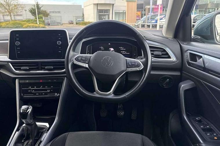 10.25" Digital cockpit pro, Bluetooth mobile phone interface, Driver alert system with fatigue detection, Driver tips and journey analysis, Emergency call service, Lane keeping system Lane Assist, Modified key software - reduce switch off time for key status change to Long no motion, Online services, Park assist including front and rear parking sensors, Service interval indicator, Tailgate/trunk lid release from outside, Think blue trainer driver tips and journey analysis, Warning sound and light for front seatbelts unfastened, Wireless app connect, Battery regeneration during braking, Start/stop function with battery regeneration, Diversity antenna for FM reception, Front and rear 6 speakers, Music playback - MP3, WMA and AAC files, Premium USB cable in choice of either Apple or Android smartphone compatibility, SD card slot, Simultaneous pairing of 2 compatible mobile devices, Title and cover art display, We Connect and We Connect Plus functionality, 3rd brake light, Auto dimming interior rear view mirror, Automatic hazard lights activation under emergency braking, Automatic headlight control with LED separate daytime running lights with coming/leaving home function, Body colour sports bumpers with silver metallic underbody fascia, Dynamic headlight range control with self adjusting whilst driving, Extended roof spoiler, Exterior mirrors aspherical on driver side, convex on front passenger side, External USB type C socket and charging sockets, Front windscreen wiper with intermittent wipe and 4 position delay, Heated rear window, LED Plus headlamps, LED rear combination lamps, LED rear number plate lights, LED tail lamp rear comination lamps, Light mode for poor weather, rain, fog or snow, Power windows with comfort operation and circuit breaker, Rain sensor, Rear exhaust tailpipe, Rear fog light on one side and reversing lights on both sides, Rear side wing doors, Rear wash/wipe with intermittent wipe setting, Remote electrically foldable door mirrors, puddle lights and reverse activated passenger's door mirror, 12V power socket in centre console, 3 rear head restraints, 3 seat bench in 2nd row, 4 load lashing points in luggage compartment, Air care climatronic air conditoning system with active combination filter and 2-zone temperature control, Chrome plated radiator grille inserts, air vent surrounds and light switch surrounds, Door and side trim panel with leatherette insert, Drawer under drivers seat, Front + rear carpet mats, Front centre armrest, Front comfort sports seats, Front cupholders x 2, Front footwell illumination, Instrument lighting, white adjustable panel illumination, Interior ambient lighting and surround lighting, Interior light delay, Isofix child seat preparation, Leather gearshift handle, LED interior light with switch off delay/dimmer and 2 front/rear LED reading lights, Load-through provision with cup holder when folded down ('Unsplit rear seat bench, split folding backrest, with centre armrest), Luggage compartment lighting, Non-folding front passenger seat backrest, Single front passenger seat, Storage compartment in left and right luggage area, Storage compartment in rear doors, Storage compartments in driver and front passenger doors, Sunvisors with illuminated vanity mirrors, Variable boot floor, height adjustable and removable, Driver assistance pack without proactive passenger protection - T-Roc, 3 point height adj front seatbelts + pretensioners, 3 point seatbelts in outer rear with ECE label, ABS, Child locks on rear doors, Driver and front passenger airbag with front passenger airbag deactivation, Driver and front passenger safety-optimised head restraints, Drivers seatbelt reminder, Electronic parking brake, Electronic Stability Control (ESC) inc EDL (Electronic Differential Lock) and ASR (Traction Control), Front and rear passengers curtain airbag system including front side airbags, Front assist with city emergency braking and pedestrian monitoring, Front seat side impact airbags, Predictive pedestrian protection, Rear disc brakes, Single tone horn, Tyre pressure loss indicator, Volkswagen roadside assistance, Alarm with interior protection, Anti-theft alarm system with interior monitoring, backup horn, and towing protection, Remote central locking with SAFELOCK, radio remote control with 2 remote control folding keys, Trims for alloy wheels,