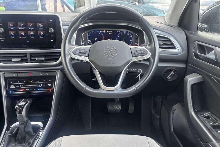 10.25" Digital cockpit pro, Bluetooth mobile phone interface, Driver alert system with fatigue detection, Driver tips and journey analysis, Emergency call service, Lane keeping system Lane Assist, Modified key software - reduce switch off time for key status change to Long no motion, Online services, Park assist including front and rear parking sensors, Service interval indicator, Tailgate/trunk lid release from outside, Think blue trainer driver tips and journey analysis, Warning sound and light for front seatbelts unfastened, Wireless app connect, Battery regeneration during braking, Start/stop function with battery regeneration, Diversity antenna for FM reception, Front and rear 6 speakers, Music playback - MP3, WMA and AAC files, Premium USB cable in choice of either Apple or Android smartphone compatibility, SD card slot, Simultaneous pairing of 2 compatible mobile devices, Title and cover art display, We Connect and We Connect Plus functionality, 3rd brake light, Auto dimming interior rear view mirror, Automatic hazard lights activation under emergency braking, Automatic headlight control with LED separate daytime running lights with coming/leaving home function, Body colour sports bumpers with silver metallic underbody fascia, Dynamic headlight range control with self adjusting whilst driving, Extended roof spoiler, Exterior mirrors aspherical on driver side, convex on front passenger side, External USB type C socket and charging sockets, Front windscreen wiper with intermittent wipe and 4 position delay, Heated rear window, LED Plus headlamps, LED rear combination lamps, LED rear number plate lights, LED tail lamp rear comination lamps, Light mode for poor weather, rain, fog or snow, Power windows with comfort operation and circuit breaker, Rain sensor, Rear exhaust tailpipe, Rear fog light on one side and reversing lights on both sides, Rear side wing doors, Rear wash/wipe with intermittent wipe setting, Remote electrically foldable door mirrors, puddle lights and reverse activated passenger's door mirror, 12V power socket in centre console, 3 rear head restraints, 3 seat bench in 2nd row, 4 load lashing points in luggage compartment, Air care climatronic air conditoning system with active combination filter and 2-zone temperature control, Chrome plated radiator grille inserts, air vent surrounds and light switch surrounds, Door and side trim panel with leatherette insert, Drawer under drivers seat, Front + rear carpet mats, Front centre armrest, Front comfort sports seats, Front cupholders x 2, Front footwell illumination, Instrument lighting, white adjustable panel illumination, Interior ambient lighting and surround lighting, Interior light delay, Isofix child seat preparation, Leather gearshift handle, LED interior light with switch off delay/dimmer and 2 front/rear LED reading lights, Load-through provision with cup holder when folded down ('Unsplit rear seat bench, split folding backrest, with centre armrest), Luggage compartment lighting, Non-folding front passenger seat backrest, Single front passenger seat, Storage compartment in left and right luggage area, Storage compartment in rear doors, Storage compartments in driver and front passenger doors, Sunvisors with illuminated vanity mirrors, Variable boot floor, height adjustable and removable, Driver assistance pack without proactive passenger protection - T-Roc, 3 point height adj front seatbelts + pretensioners, 3 point seatbelts in outer rear with ECE label, ABS, Child locks on rear doors, Driver and front passenger airbag with front passenger airbag deactivation, Driver and front passenger safety-optimised head restraints, Drivers seatbelt reminder, Electronic parking brake, Electronic Stability Control (ESC) inc EDL (Electronic Differential Lock) and ASR (Traction Control), Front and rear passengers curtain airbag system including front side airbags, Front assist with city emergency braking and pedestrian monitoring, Front seat side impact airbags, Predictive pedestrian protection, Rear disc brakes, Single tone horn, Tyre pressure loss indicator, Volkswagen roadside assistance, Alarm with interior protection, Anti-theft alarm system with interior monitoring, backup horn, and towing protection, Remote central locking with SAFELOCK, radio remote control with 2 remote control folding keys, Trims for alloy wheels,