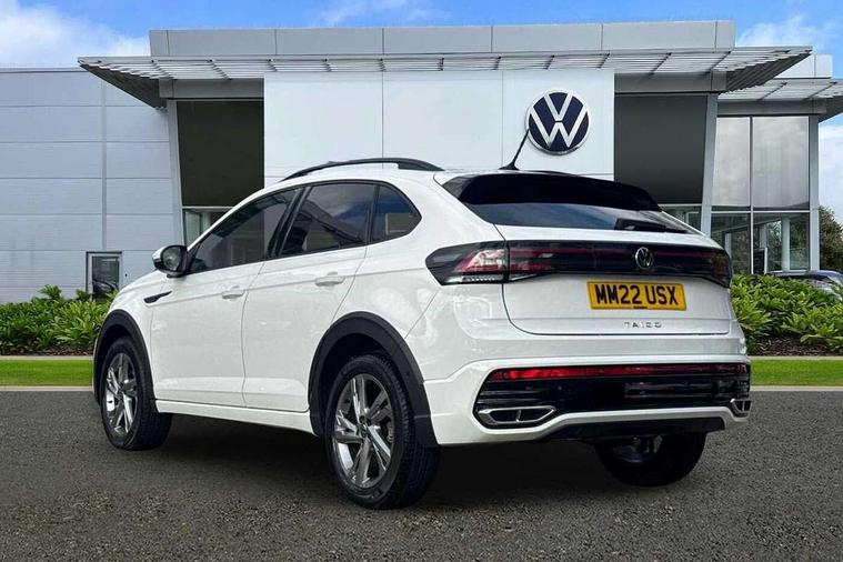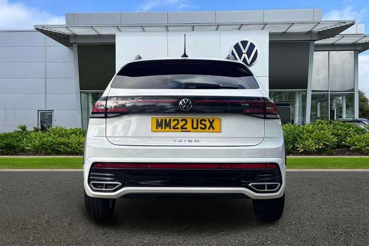 Adaptive cruise control, App-Connect including App-Connect Wireless, Digital cockpit pro - 10.25" high resolution TFT dash display screen with customizable menus and information, Driver alert system, Driving profile selection, e-Call (emergency call), Power Steering, Travel assist including emergency assist, Washer fluid level indicator, Wireless Charging including Bluetooth, Start-stop system with battery regeneration (recuperation - energy recovery during braking), XDS electronic differential lock for improved traction and handling, Digital radio reception (DAB+), Diversity antenna for FM reception, WeConnect plus, Ambient lighting with logo projection, Aspherical driver's exterior mirror, Auto headlights, Body coloured bumpers, Body coloured exterior mirror housings and door handles, Bumpers in R-Line style, Electric windows, External USB type C socket and charging sockets, Front fog lamps with cornering function, Front scuff plates with R-Line logo, Headlight range control, LED headlamps, LED rear combination lamp, LED third brake light, Left convex exterior mirror, Power folding adjustable/heated exterior mirrors and front passenger exterior mirror lowering function, Rear fog light on one side, reversing light on both sides, Rear side wing doors, Rear wash/wipe with intermittent wipe setting, 12V socket in centre console, 2 front reading lights, 3 rear head restraints, 3 seat bench in 2nd row, Air care climatronic air conditoning system with active combination filter and 2-zone temperature control, Black carpets, Black roof lining, Child seat anchor for child seat system i-Size, 2x top tether and child seat anchor in front on front passenger side, Chrome bezel for instrument cluster, vents, door handles + gear shift, Driver and front passenger seat height adjustment, Front + rear carpet mats, Front centre armrest, Front footwell illumination, Front sports comfort seats, Height and reach adjustable steering wheel, Interior ambient lighting and surround lighting, Karoso artvelours cloth upholstery, Leather trimmed gear knob, Leather wrapped multifunction steering wheel, Luggage compartment floor, Luggage compartment light, Lumbar support for driver's and front passengers seat, Seat covers in grey + titanium black, Single front passenger seat, Split folding backrest with centre armrest and unsplit rear seat bench, Stainless steel pedals, Storage compartment under front seats, Sun visors with illuminated vanity mirrors, Chrome Package - Taigo, Drivers assistance pack - Taigo, Light and Sight pack including High beam assist - Taigo, 2 x 3-point seatbelts/outer rear seats with ECE label, 3-point seat belts in front with pretensioner and height adjustment, 3-point seatbelt for centre rear seat, Driver and front passenger airbags with front passenger airbag de-activation, front side and curtain airbags, Driver and front passenger safety-optimised head restraints, Electronic stability control, Extended and predictive pedestrian/ cyclist protection, Front and rear disc brakes, Front curtain and side airbags with center airbag, Hill start assist, Manual rear child locks, Single tone horn, Tyre pressure loss indicator, Anti-theft alarm system with interior monitoring, backup horn, and towing protection, Anti-theft wheel bolts, Grey anodised matte decorative inserts in dash and front door panels, Low rolling resistance tyres,