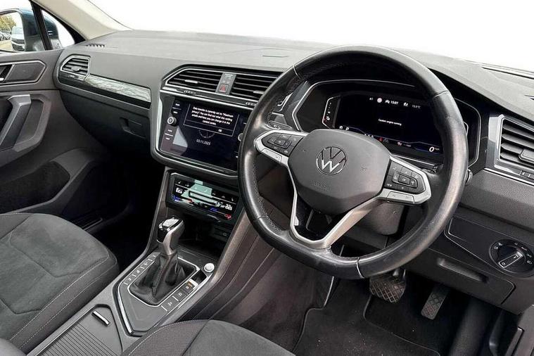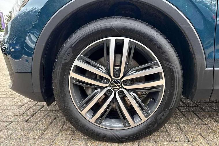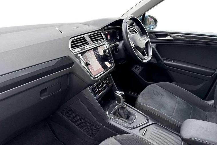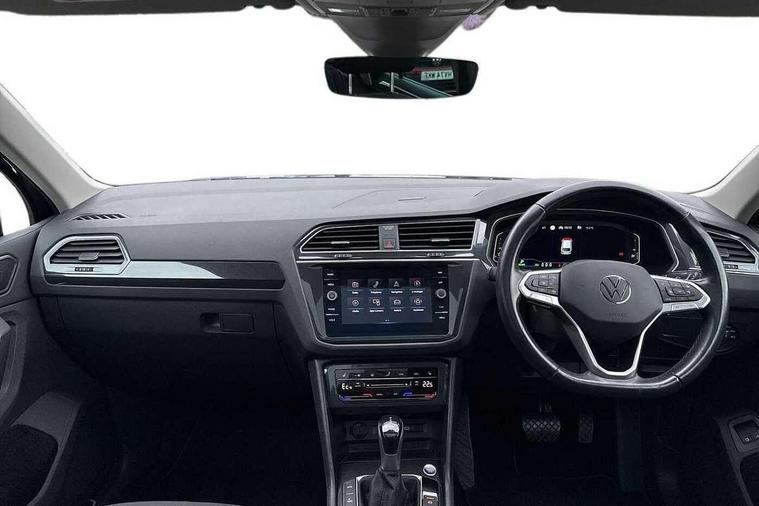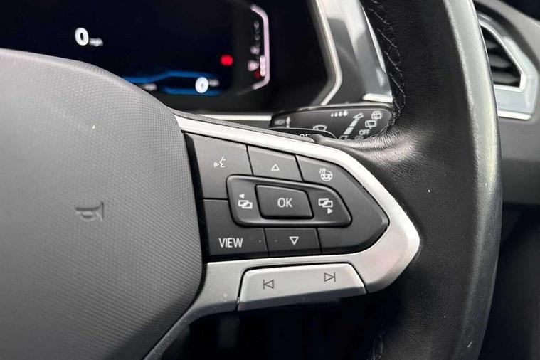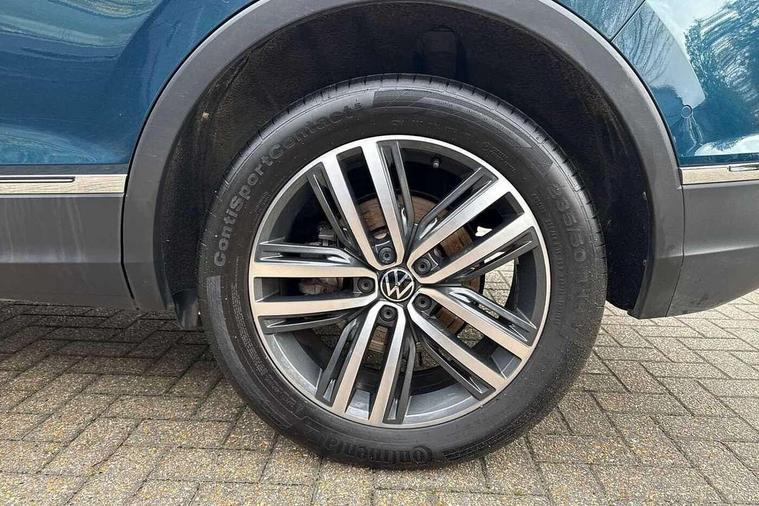 Adaptive cruise control ACC stop and go including speed limiter, App-Connect incl. App-Connect Wireless for Apple CarPlay and Android Auto, Bluetooth phone integration system, Distance control assist, Driver alert system, Driver profile selection, Dynamic road sign display, eCall emergency call system, Electromechanical speed sensitive power steering, Engine start/stop button, Lane keeping system Lane Assist, Lights on warning, Motorised electric tailgate operated via key fob, drivers door and foot movement under tailgate, Multifunction front facing camera, Outside temperature display, Premium multifunction display with multi colour display, Remote control boot opening, Rev counter, Revision / skills operating concept travel assistant, Service interval indicator, Speed limit display, Start/stop system with regenerative braking, Tailgate/trunk lid unlocking from outside, Trip computer, Warning sound and light for doors and tailgate open, Battery regeneration during braking, Charging cable Mode 3 Type 2 / 3 (16A), XDS electronic differential lock for improved traction and handling, 4 X 20 watt output, 8 Speakers, Diversity antenna for FM reception, Radio, SD card slot, Simultaneous pairing of 2 compatible mobile devices, SMS functionality - read, compose and send SMS messages using touch-screen display, Title and cover art display, USB C ports, Aluminium door sill protectors, Auto dimming interior rear view mirror, Automatic headlight control system, Body colour door handles, Body coloured bumpers, Body coloured door mirrors with integrated indicators, Coming/leaving home lighting function, Dynamic headlight range control, Front and rear electric windows, Heated rear window, High level 3rd brake light, IQ light-Adv high beam, Dynamic light assist for LED matrix headlamp+LED separate DRL+DCL, dark red rear LED tech, Poor weather light+ cornering light, Laminated safety glass windshield, heat and sound insulating, LED rear number plate lights, Privacy glass for rear side windows and rear window, Rain sensor windscreen wipers, Rear exhaust tailpipe, Rear fog lamp, Rear side wing doors, Rear windscreen washer and wiper with interval delay, Side and rear windows in heat insulating glass, Tilting and sliding panoramic sunroof with rear panoramic sunroof, Trailer Stability Programme, Windscreen wipers/ intermittent wipe + 4 position delay, 12V outlet in center console rear and in luggage compartment, 12V outlet in front and tray, 2 cup holders in front, 2 LED front reading lights, 2 LED rear reading lights, 3 bench rear seats in 2nd row, 3 rear headrests, 4 load lashing points, 40:20:40 split folding rear seats, Air Care Climatronic 3 zone automatic climate control with enhanced air filter and controls in the rear, Backrest release for left front seat, Climate control unit rear with touch function, Door and side trim panel in foam film and woven fabric, Front centre armrest, Front footwell illumination, Front seats head restraints (x-adjustment), Height adjustable front seats, Height/reach adjust steering wheel, Instrument lighting white adjustable panel illumination, Interior light with delay, Isofix Preparation 2 Rear child seats, Leather gear knob, Lockable cooled glovebox, Luggage compartment lighting, Luggage net, Rear bench seat asymetrically split folding, longitudinally movable and folding with load-through hatch and center armrest, Remote unlocking for rear seat backrest, Removable luggage cover, Removable rear headrests, Safety optimised front head restraints, Single front passenger seat, Sliding/reclining rear seats, Standard rear seat release, Storage compartment in driver's door, Storage compartment in passenger's door, Storage compartment in rear doors, Storage compartments in luggage area left and right, Storage tray on dashboard, Sun visors with illuminated vanity mirrors, Top front comfort seats, Variable boot floor, height adjustable and removable, Easy open and close pack with safelock - Tiguan, Park assist pack - Tiguan, 3 point seat belt for centre rear seats, 3 point seat belts with seat belt pretensioners for the outer rear seats, Active bonnet, Curtain airbags for front and rear passengers, Driver/Front Passenger airbags, Drivers knee airbag, Electronic parking brake with auto hold, Electronic Stability Control with driver steering recommendation, ABS, ASR, EDL, EDTC and trailer stabilization, Front assist with autonomous emergency braking (for Adaptive Cruise Control ACC up to 130 mph), Front disc brakes, Front passenger airbag deactivation, Front side airbags, Height adjustable front 3 point seatbelts + pretensioners, Hill hold control, Manual child proof rear door locks, Pedestrian monitoring system, Power assisted brakes, Proactive passenger protection system in combination with front assist, Rear disc brakes, Rigid safety cell with front and rear crumple zones, Two tone horn, Tyre pressure loss indicator, Warning sound and light for front seat belts if unfastened, Anti theft alarm system with interior monitoring, backup horn and towing protection, Anti theft wheel bolts, Central locking system with safelock radio remote control and 2 remote control folding keys, Electronic engine immobiliser, Tool kit, Tyre mobility kit Includes 12V compressor and tyre sealant,